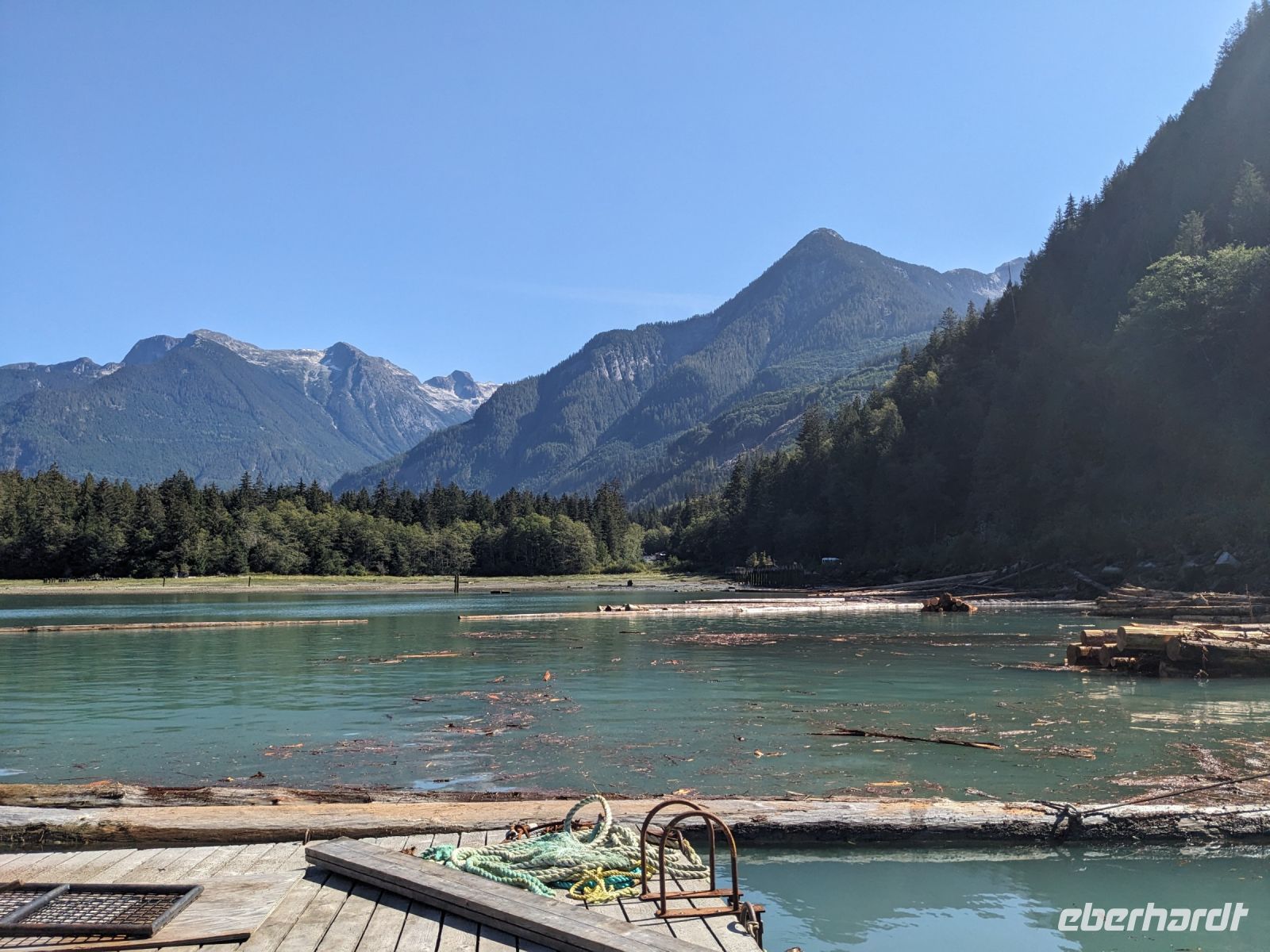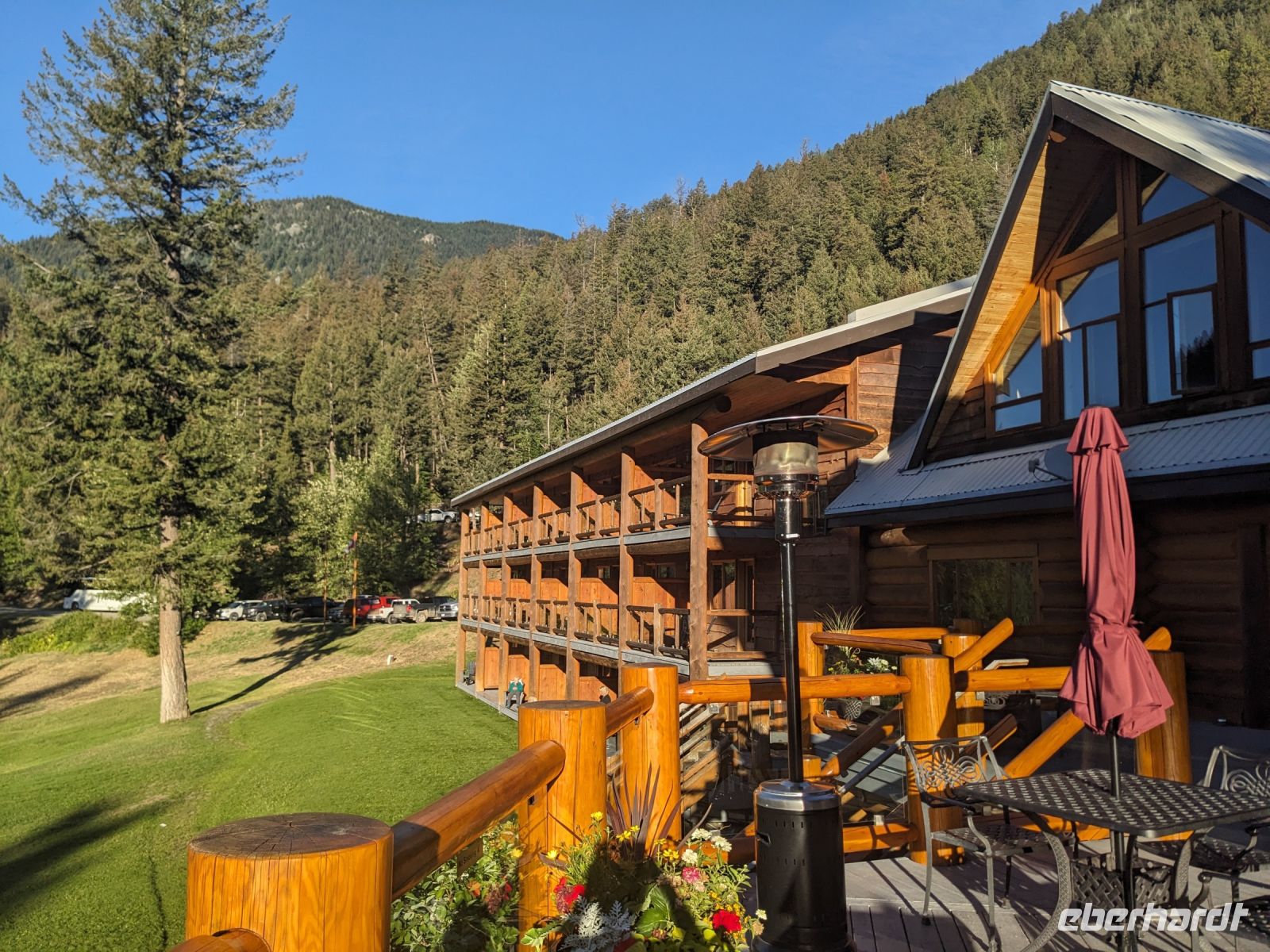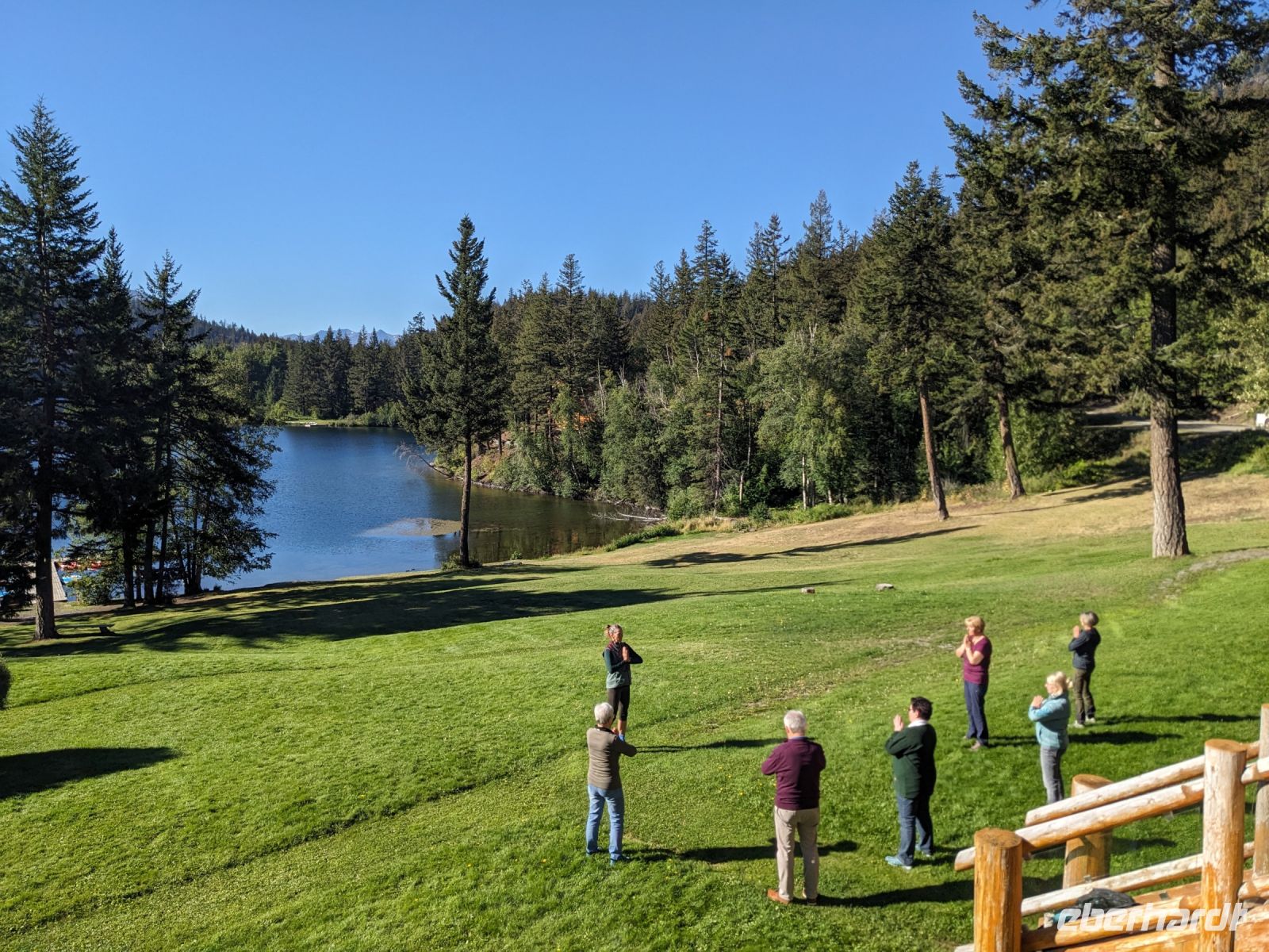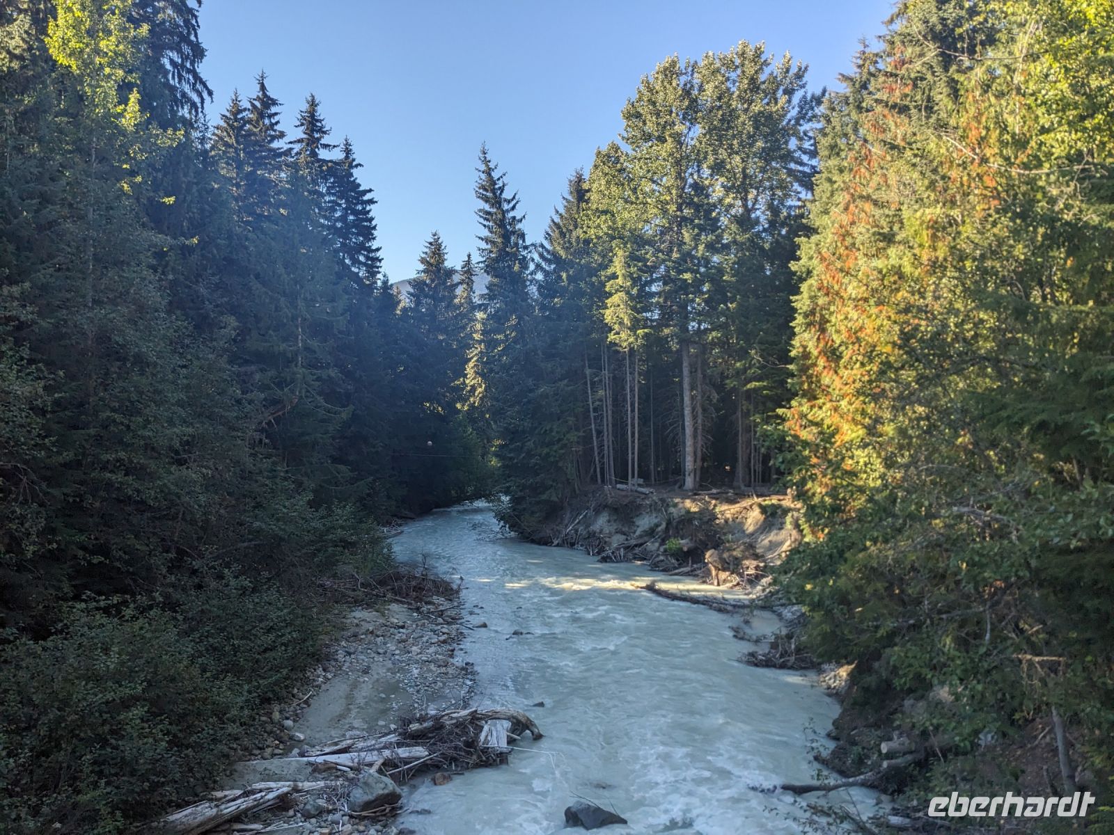 Leider mussten wir uns an diesem Morgen von unserer wunderschönen Tyax Lodge verabschieden und nahmen die Straße am Carpenter Lake zurück nach Lillooet. Auf dem Weg machten wir noch einen kurzen Stopp am Staudamm zum See. Bei der a.bun.dance Bäckerei in der Stadt gab es dann einen leckeren Snack und ein Getränk unserer Wahl. Das Picknick folgte kurze Zeit später an der Seton River Picknick Area. Einige von uns hatten hier sogar das Glück einen Bären zu sehen, welcher einfach gemütlich seiner Wege ging und uns Menschen nicht weiter beachtete. Entlang der Duffey Road gelangten wir schließlich zum malerischen Duffey Lake, in dem wir unsere Füße etwas erfrischen konnten. Von dort war es nun nicht mehr weit, bis wir in Whistler einfuhren. Wir nahmen eine etwas ausschweifende Runde mit dem Bus zum Hotel, sodass wir bereits einen ersten Eindruck von diesem typisch nordamerikanischen Wander-/Skiort bekommen konnten. Bei einem kleinen orientierenden Spaziergang, nach dem Check-In im Pinnacle Hotel, besuchten wir die Fußgängerpassage bis zum Olympischen Platz mit seinen ikonischen olympischen Ringen als beliebtes Fotomotiv. Hier trennten sich dann unsere Wege - einige zogen auf eigene Faust los, andere kamen mit Marion und mir noch auf einen ausgedehnteren Spaziergang durch Whistler. Später trafen wir uns dann alle zusammen wieder zum Abendessen. Aufgrund unserer geräuschintensiven Tischnachbarn waren wir dann zügig fertig und lauschten noch einem der regelmäßig stattfindenden kostenfreien Konzerte auf dem Olympischen Platz.
