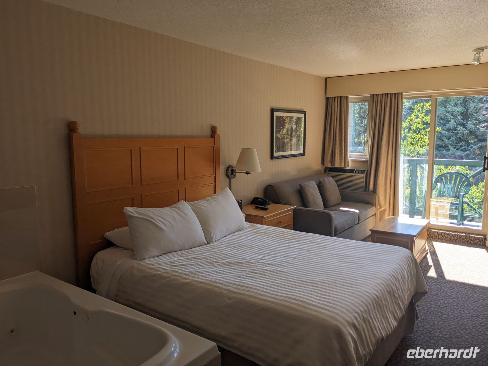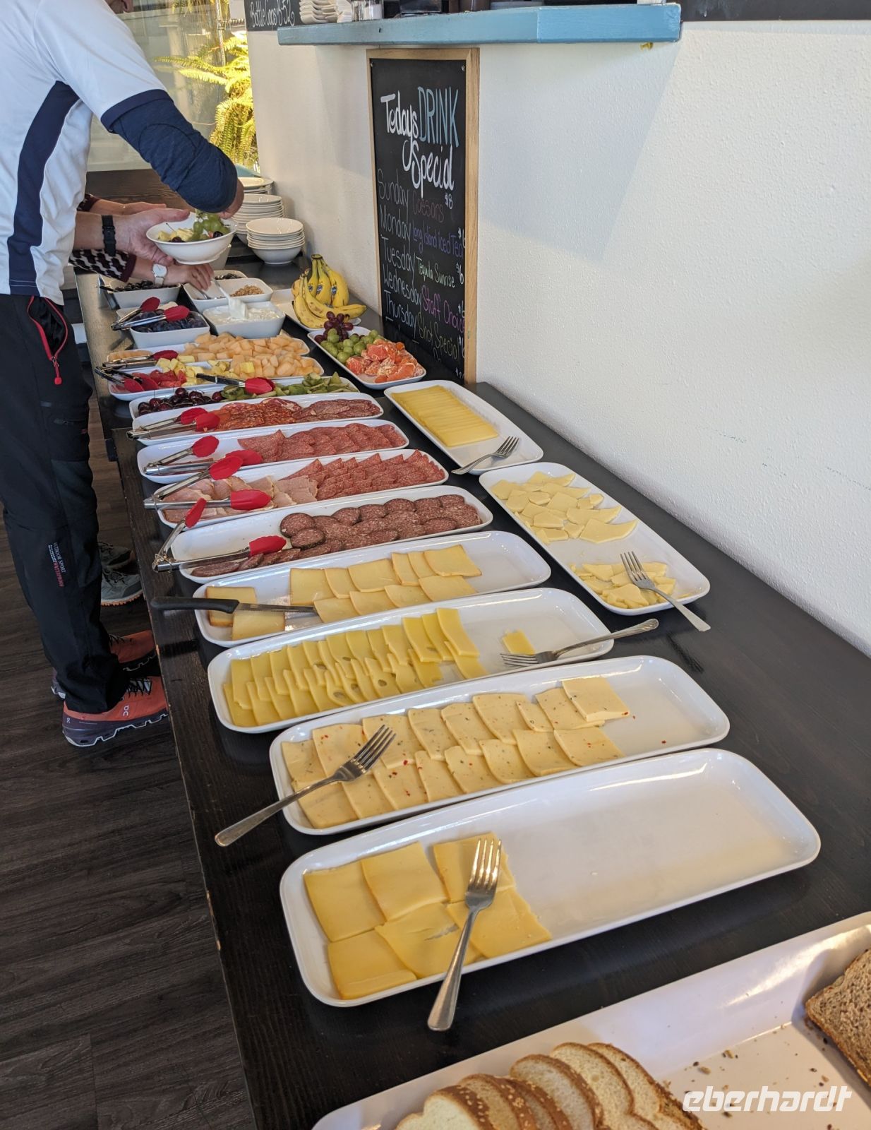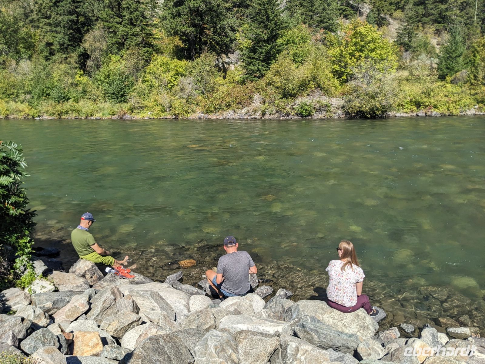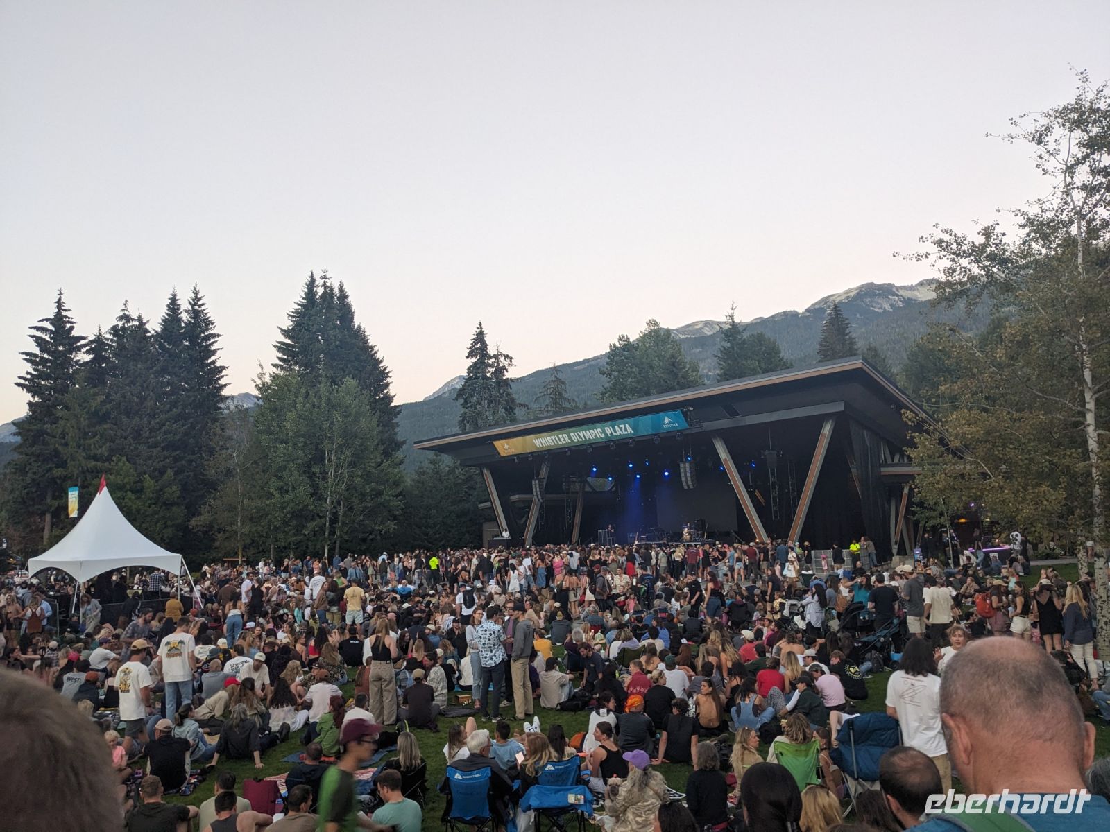 Leider mussten wir uns an diesem Morgen von unserer wunderschönen Tyax Lodge verabschieden und nahmen die Straße am Carpenter Lake zurück nach Lillooet. Auf dem Weg machten wir noch einen kurzen Stopp am Staudamm zum See. Bei der a.bun.dance Bäckerei in der Stadt gab es dann einen leckeren Snack und ein Getränk unserer Wahl. Das Picknick folgte kurze Zeit später an der Seton River Picknick Area. Einige von uns hatten hier sogar das Glück einen Bären zu sehen, welcher einfach gemütlich seiner Wege ging und uns Menschen nicht weiter beachtete. Entlang der Duffey Road gelangten wir schließlich zum malerischen Duffey Lake, in dem wir unsere Füße etwas erfrischen konnten. Von dort war es nun nicht mehr weit, bis wir in Whistler einfuhren. Wir nahmen eine etwas ausschweifende Runde mit dem Bus zum Hotel, sodass wir bereits einen ersten Eindruck von diesem typisch nordamerikanischen Wander-/Skiort bekommen konnten. Bei einem kleinen orientierenden Spaziergang, nach dem Check-In im Pinnacle Hotel, besuchten wir die Fußgängerpassage bis zum Olympischen Platz mit seinen ikonischen olympischen Ringen als beliebtes Fotomotiv. Hier trennten sich dann unsere Wege - einige zogen auf eigene Faust los, andere kamen mit Marion und mir noch auf einen ausgedehnteren Spaziergang durch Whistler. Später trafen wir uns dann alle zusammen wieder zum Abendessen. Aufgrund unserer geräuschintensiven Tischnachbarn waren wir dann zügig fertig und lauschten noch einem der regelmäßig stattfindenden kostenfreien Konzerte auf dem Olympischen Platz.