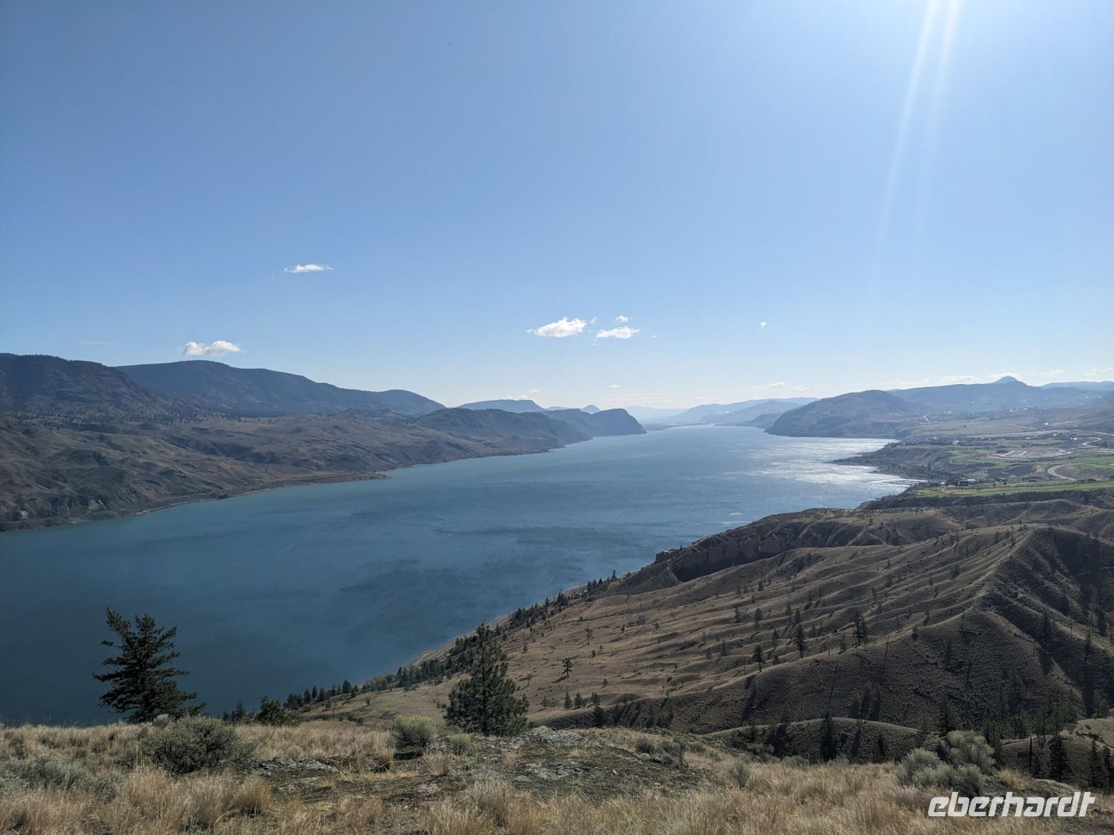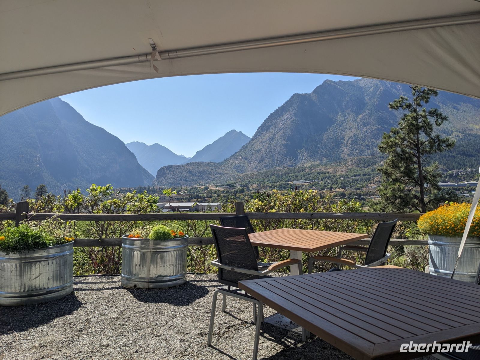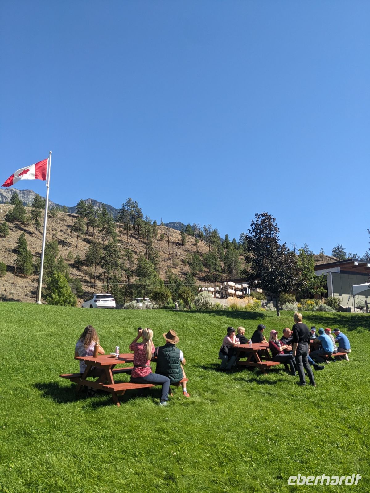 Wie kann man diesen Tag wohl am besten zusammenfassen? Tolle Landschaft? Historisch? Feuchtfröhlich? Panoramafahrten noch und nöcher? Aber beginnen wir mal von vorn: Erster Stopp war ein Aussichtspunkt auf den Kamloops Lake. Dieser war so atemberaubend, dass wir gern noch länger geblieben wären, doch wir hatten noch einen wichtigen Termin später! Die Zeit eilte! Doch nicht zu sehr, um nicht noch beim Farmers Market Horstings anzuhalten. Versorgt mit ein paar Snacks hieß es dann aber Beeilung und ab zur Hat Creek Ranch! Hier erwarteten uns schon die Guides in entsprechendem Gewand. Uns wurde die Schmiede und das alte Wohnhaus gezeigt. Von dem kleinem Saloon, bis zur Waschküche und den verschiedenen Schlafgemächern der damaligen Bewohner und Besucher gab es einiges zu entdecken. Weiter ging es zu einer kleinen Führung auf dem Gelände der First Nations, wo uns eine Ureinwohnerin verschiedene Fang-, Jagd- und Verarbeitungstechniken zeigte. Nach diesem Ausflug in die Geschichte nahm uns Don mit nach Lillooet in das Weingut Fort Berens, wo wir nach einem Picknick gemeinsam eine Weinprobe erlebten. Sechs Weine standen, bei wunderschöner Aussicht auf das umliegende Bergpanorama und die Weinreben, auf dem Prüfstand. Entlang des Carpenter Lakes setzten wir schließlich unsere Fahrt fort. Diese Panoramastrecke brachte uns etwas abseits von der Zivilisation zur Tyax Lodge. Ein Paradies am See, umgeben von Bergen und Wald und frei von großen Lichtquellen, sodass hier ein einmaliger Sternenhimmel zu sehen war.