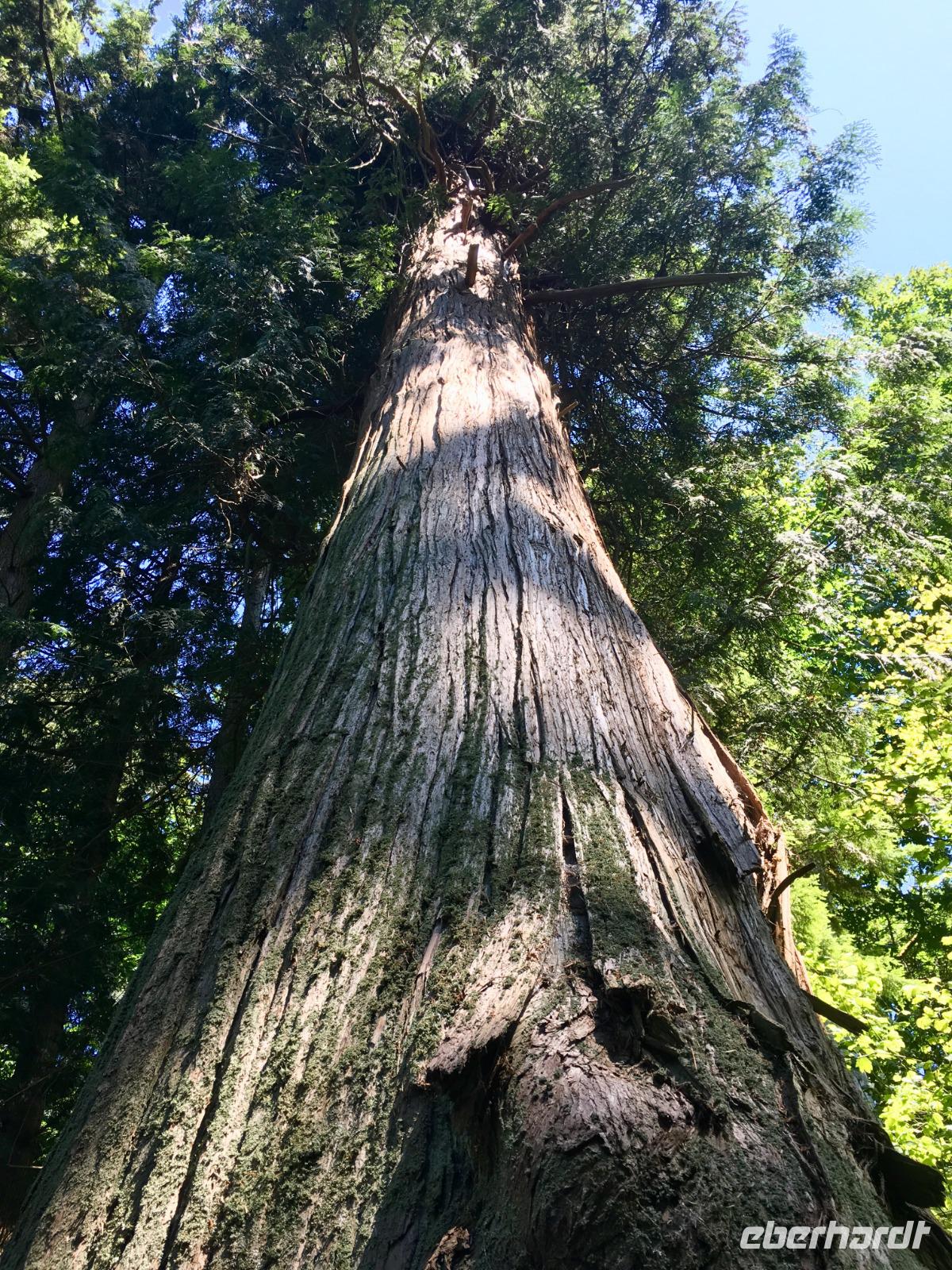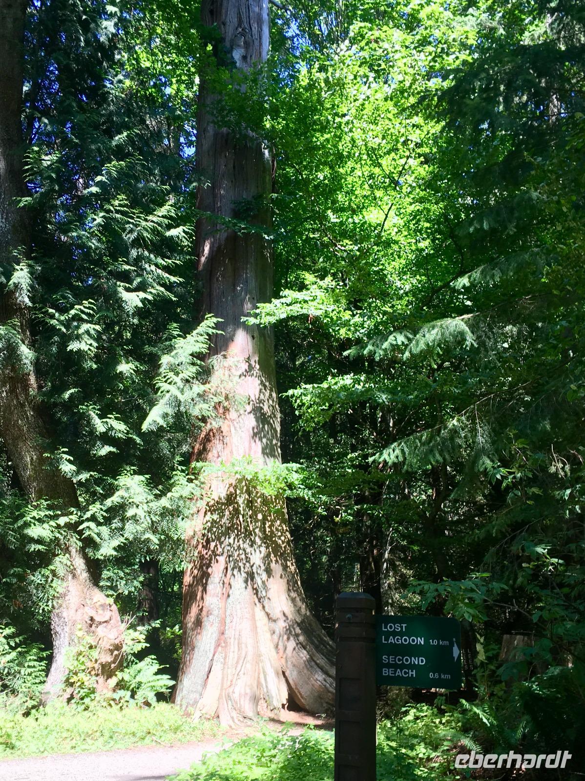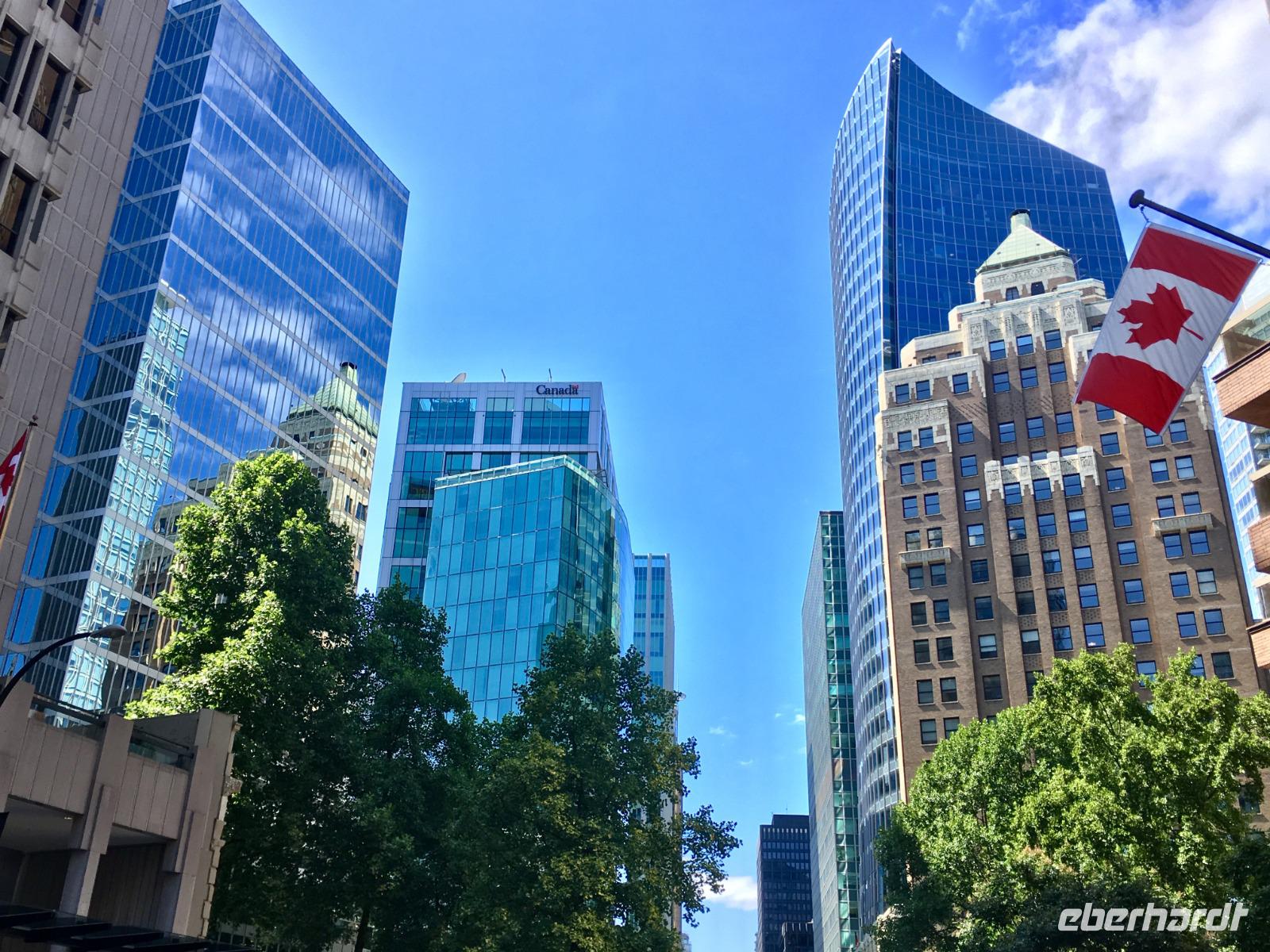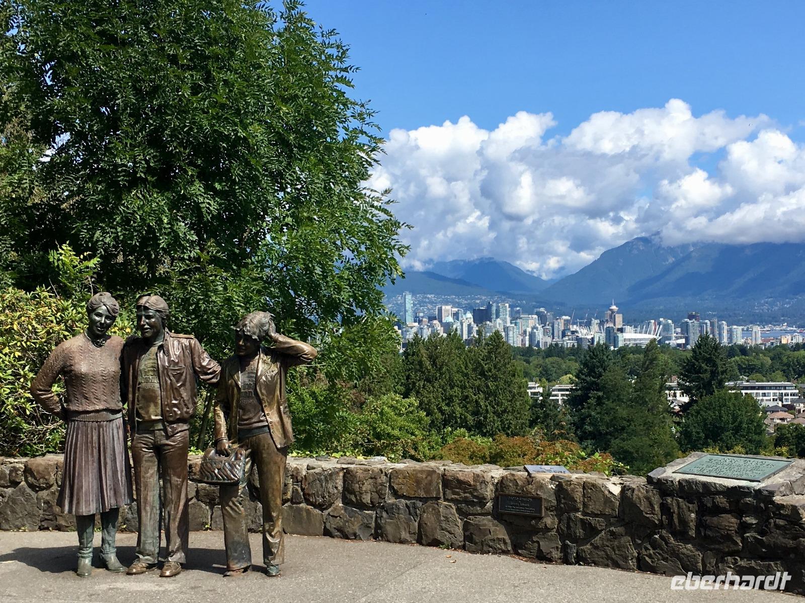Aufwachen in der groessten Stadt Britisch Kolumbiens ist etwas lauter als in Lake Louise am See, aber eindruecklich ist es alleweil. Nach dem Fruehstuecksbuffet treffen wir uns fuer die angekuendigte Stadtrundfahrt. Ein schicker, schwarzer Bus steht puenktlichst bereit und unserer heutige Chauffeur ist der charmante Brandon. Vorerst fahren wir in den Stanley Park. Bei den Totompfaehle halten wir an und horchen den vielen Indianergeschichten zu und staunen ueber die schoenen Geschichtserzaehlende Pfaehle der verschiedenen Indianerstaemme der Westkueste Kanadas. Die Aussicht auf die Stadt Vancouvers ist auch sehr eindruecklich. Bei so einem schoenen Wetter gelingen die Fotos perfekt. Nun fahren wir gemuetlich um die ganze Halbinsel, geniessen, halten, schauen und erreichen so Granville Island. Hier legen wir einen Halt ein und spazieren an Theater, Bars und Kunsthandwerker vorbei bis zur grossen Markthalle. So viel Obst, Gemuese, frische Teigwaren, Brote, Wurst und Fleischwaren werden hier feilgeboten. Es ist eine Pracht. Beim Fischhaendler erfahren wir auch den Unterschied von den verschiedenen geraeucherten Lachsen und welche fuer welchen Zweck verwendbar sind. Da muessen wir nochmals hin, denn im Moment wartet Brandon schon auf uns mit seinem schicken schwarzen Limousinen-Bus. Jetzt gehts zum Queen Elizabeth Park mit seinem schoenen Mini-Butcharts Garden und noch einer herrlichen Aussicht auf die Stadt hinunter. Auf gehts, weiter auf unserer Citytour nach Chinatown. Es ist das 3. groesste Chinatown ausserhalb Chinas. Wir spazieren durch den chinesischen Garten und danach auch durch die Hauptstrasse von Chinatown. Getrocknete und gesalzene Garnelen, schrumpfige Seegurken und andere Meeresfruechte und Nuesse jeder Art, sowie sonst uns unbekannte Speisen werden hier feilgeboten. Bloss Asiaten kaufen hier anscheinend ein, denn alles ist auf chinesisch beschrieben und wir verstehen bloss Bahnhof. Die Geschichte der Chinesen in Kanada wird hier so richtig lebendig. Danach fahren wir an der japanischen Markthalle vorbei, ehe wir in Gastown landen. Da steigen wir auch wieder aus um die Dampfuhr schlagen zu hoeren und sehen. Ein weiteres Erlebniss. Schliesslich haben wir morgen frei, und so wissen wir dann auch schon, ob wir hierher zurueck wollen oder nicht. Die vielen Souveniergeschaefte locken schon mit den lustigen Pijamas, Hockeyshirts, Nummernschilder, Anhaengsel und Mitbringsel. Die Fahrt geht weiter bis zum Canada Place wo auch unser Hotel ist. Den Nachmittag haben wir frei und wir treffen uns erst spaeter wieder zum Spaziergang zur Alberni Street, zum Keg Restaurant. Dies Restaurant mit den Staeks, Hummer und Riesengarnelen wird uns immer in Erinnerung bleiben.
