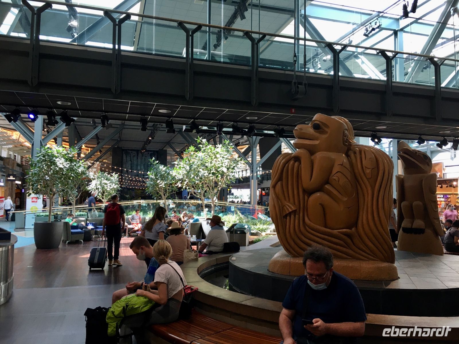 Es ist 9:45 und wir sind bereit fuer die letzte Busfahrt dieser wunderbaren Reise. Autsch, der Kopf ist so schwer ! Mit dem Riesenbus faehrt uns Gurpreet wieder auf die Faehre, danach aufs Festland und anschliessend direkt zum Flughafen von Vancouver. Wir checken mit anderen 600 Gaesten ein, sind jedoch schoen frueh dran und muessen daher nicht allzu lange anstehen. ?. Nun verabschieden wir uns vorerst von dem Paeaerchen, welches noch ein paar Tage hier in Vancouver bleiben wird ehe es eine Alaska Kreuzschiffreise unternimmt. und gehen weiter zur Kontrolle. Bald fliegen wir schon los, ueber die Rockies, Groenland und Schottland bis wir nicht puenktlich in FRA ankommen. Wir treffen uns wieder beim Kofferband, da alle mit der Bahn weiterreisen werden. Nun heisst es auch fuer uns Abschied nehmen. Diese schoene Reise in der Post-Covid-Zeit endet hier, aber die vielen tollen Erinnerungen bleiben lebendig.