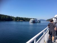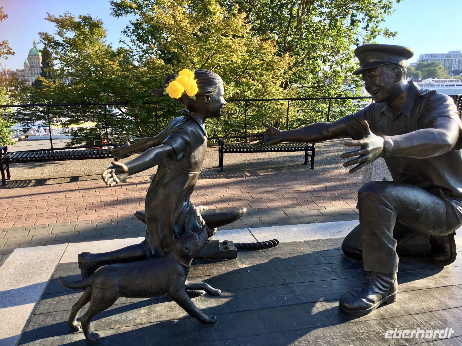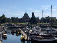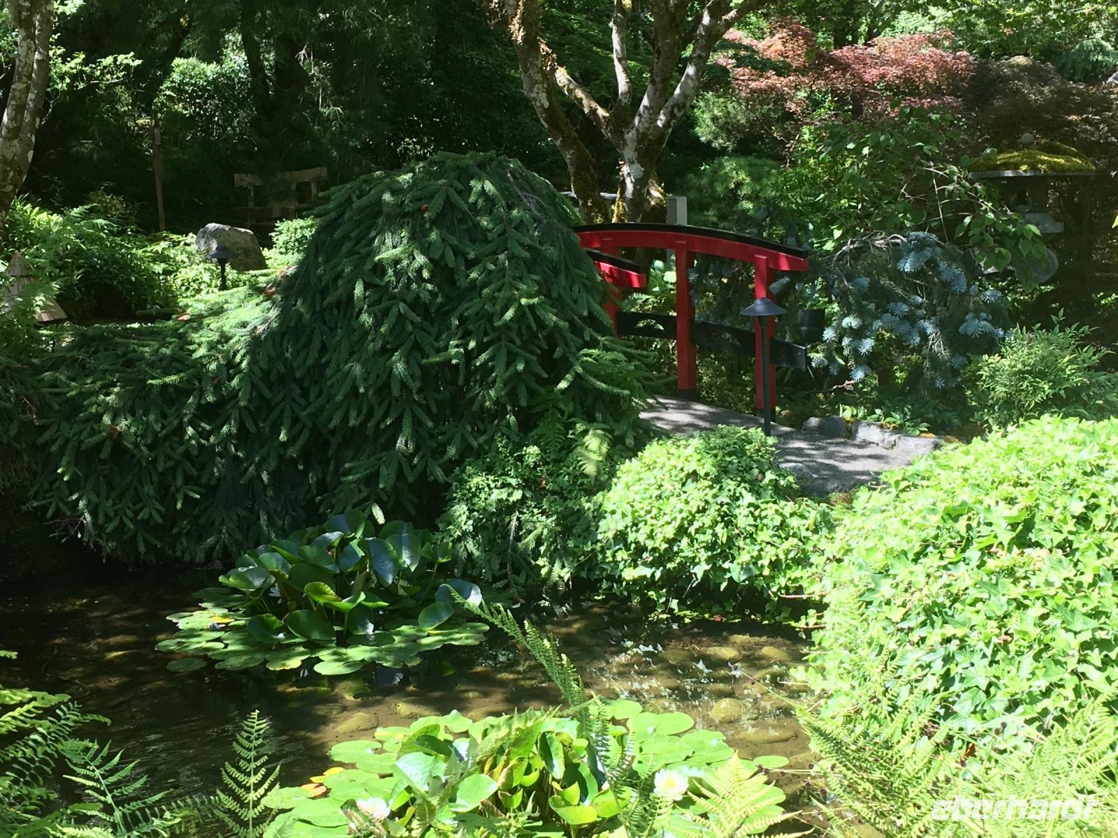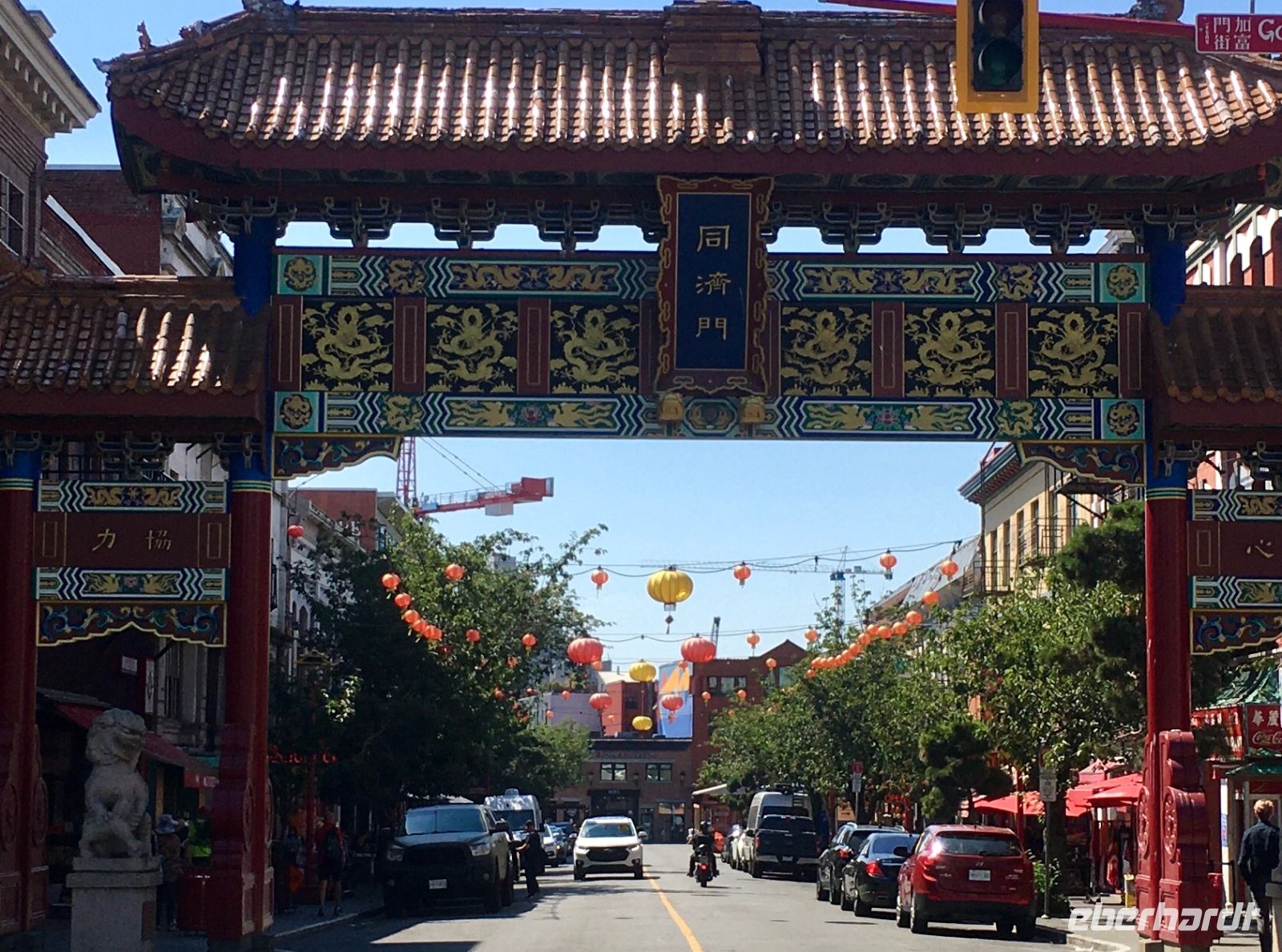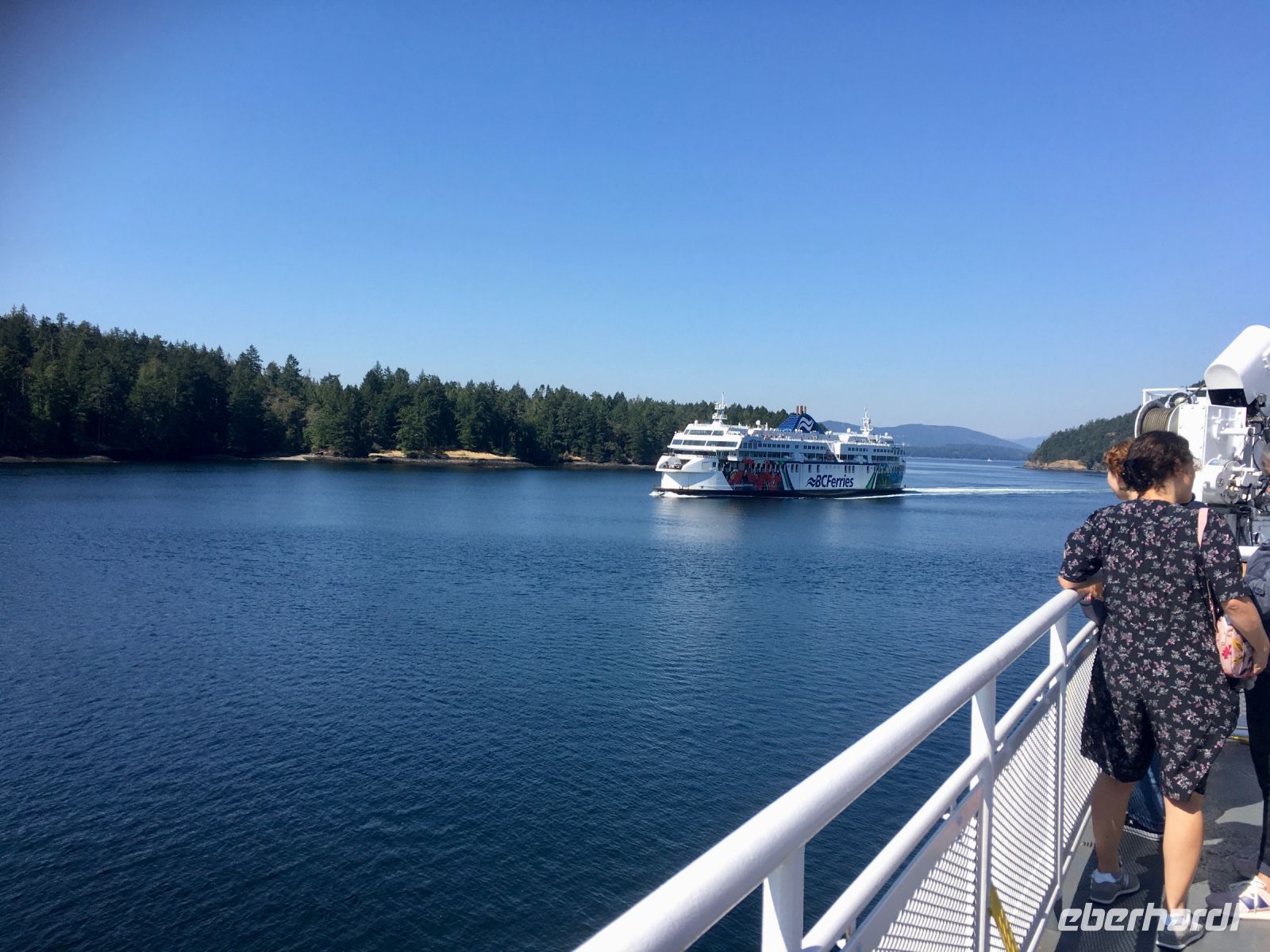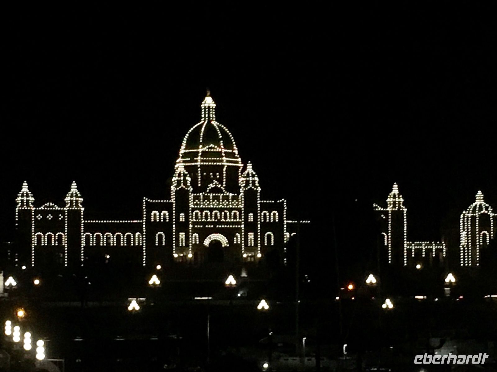 Heute fahren wir bereits um 8:30 Uhr ab, denn heute geht es auf die Insel von Vancouver. Unser Fahrer ist Gurpreet Lidhran. Auf der Fahrt zur Faehre erfahren wir nun vieles ueber das Leben in Kanada. Viele Fragen ueber das Gesundheitswesen, die Schulen, die Steuern usw werden beantwortet . Nun steht uns aber die schoene Faehreueberfahrt vor. Die Ueberfahrt auf die Insel dauert 1 Stunde und 35 Minuten. Auf der Insel angekommen fahren wir gleich zu den Butchart Gaerten. Schoen haben wir uns die Gaerten vorgestellt aber auf diese Pracht waren wir nicht vorbereitet. Nun verstehen wir aber, weshalb 1 Million Menschen diesen Ort jaehrlich aufsuchen. Die verschiedenen Gaerten sind echt toll. Der haengende Garten mit seinen riesen Begonien, der versunkene Garten mit der Ausgewogenheit und seinem Teich und Wasserspiel, der Farngarten, der Rosengarten mit seinen 250 Arten von Rosen und 2500 Pflanzen, der Japanische Garten der unser Leben bereichert, der franzoesische Garten mit seinem herrlichen Ausblick und der bezaubernde italiensiche Garten mit seinem perfekten Chaos, alle Gaerten sind so verschieden und so schoen angelegt man moechte einfach hier bleiben. Wir haben jedoch noch was vor, also essen wir noch eine Kleinigkeit hier im Garten ehe wir wieder in unseren Bus einsteigen. Wir fahren in die Hauptstadt British Columbias nach Victoria. Dort steigen wir in Chinatown aus und machen einen Stadtrundgang zu Fuss. Gurpreet freut sich sehr ueber das ueppige Trinkgeld und bringt unterdessen unsere Koffer und Taschen gewissenhaft und professionel ins Hotel. Chinatown ist sehr interessant und die Gassen hier sind sehr eng. Auch hier gibt es wieder nette Geschichten und Anekdoten ueber das Leben hier in Victoria unter dem Joch des Haengerichters Sir Mathiew Bailly Begbie. Die bunten Haeuser von Victoria lassen uns staunen; wo man wohl solche Farben kaufen kann ? Unser Stadtrundgang geht weiter und fuehrt uns beim Gerichtshof vorbei auf die Government Street die uns runter ans Meer zum Hafen bringt. Das Parlament und das Empress Hotel dominieren den Hafen. Die Boote, Schiffe, Jachten, Faehren und Flugzeuge bereichern die Szene. Nun horchen wir noch der lustigen und tragischen Agatha Christy Geschichte von Romeo und Juliette zu, welche zur Jahrhundertwende in Victoria gespielt hat. Es ist das Leben und Sterben des grossen Architekten Francis Rattenburry auch liebevoll Ratzibutzi genannt. Jetzt ist es aber Zeit, dass wir in unser Hotel gehen. Die Koffer haben ihren Weg in die Lobby bereits gefunden und die Schluessel zu unseren Zimmern bekommen wir auch bald. Victoria ist abends wunderschoen, wenn auch eigenartig beleuchtet und Gaukler, Kuenstler und Artisten beleben die Stadt, aus den Pubs und Restaurants ertoent Musik man weiss gar nicht, wo man einkehren soll nach dem Abendessen im schoenen Eisenbahnhotel.