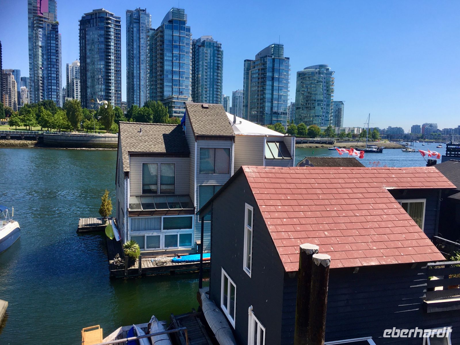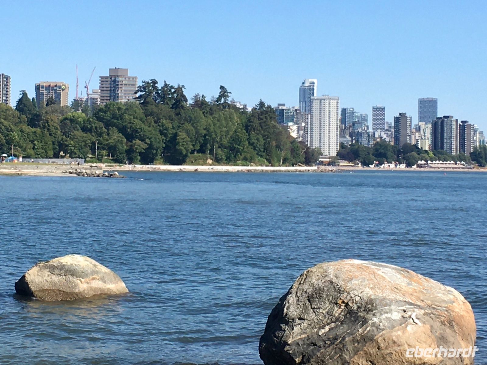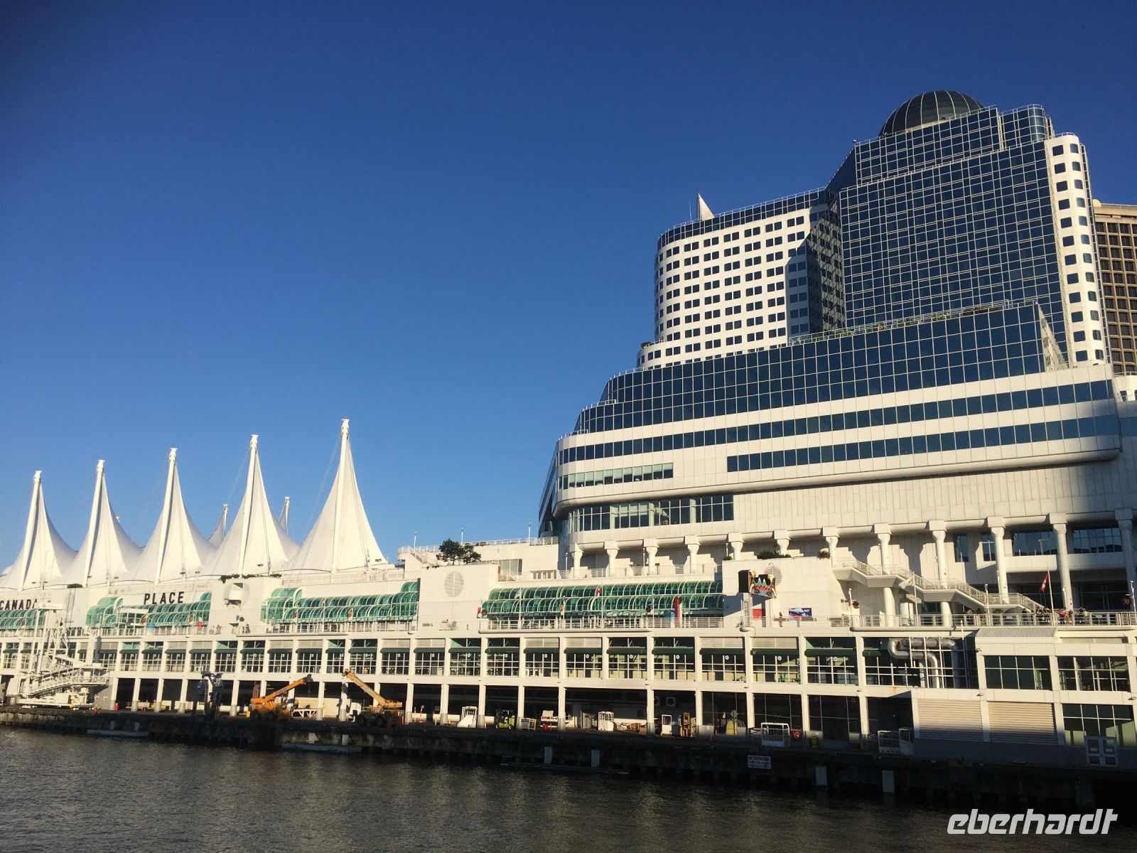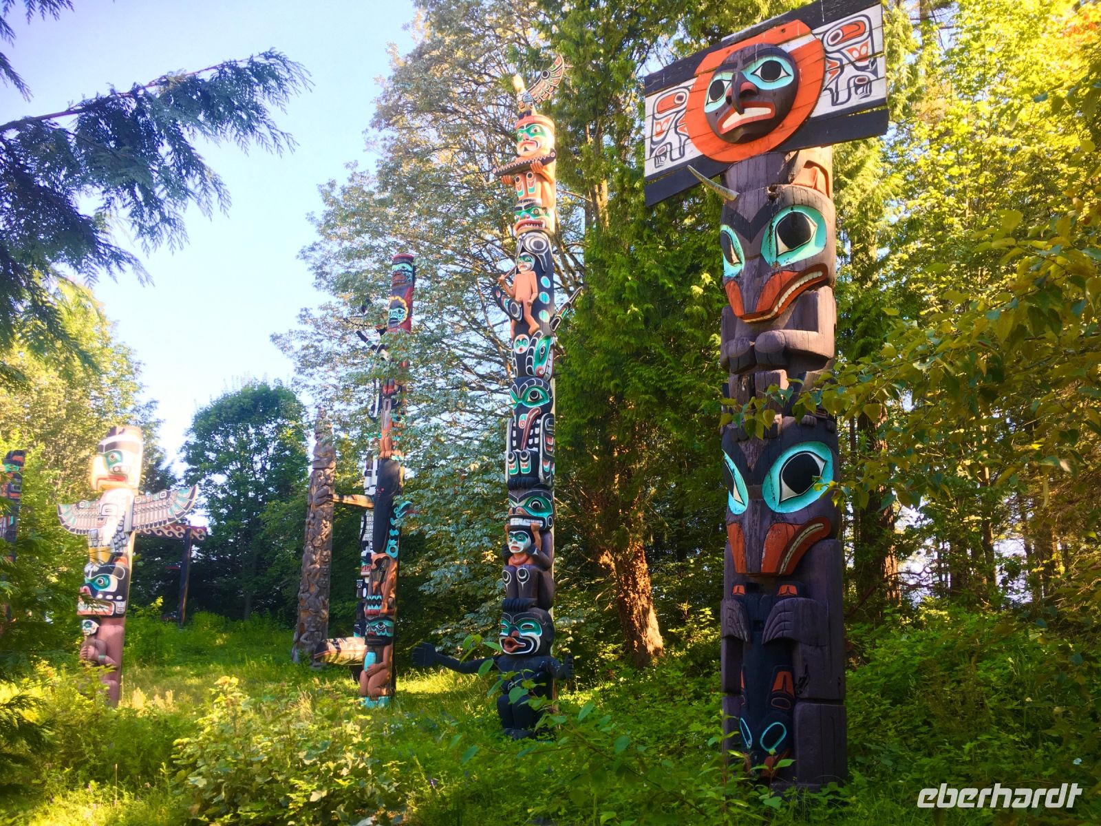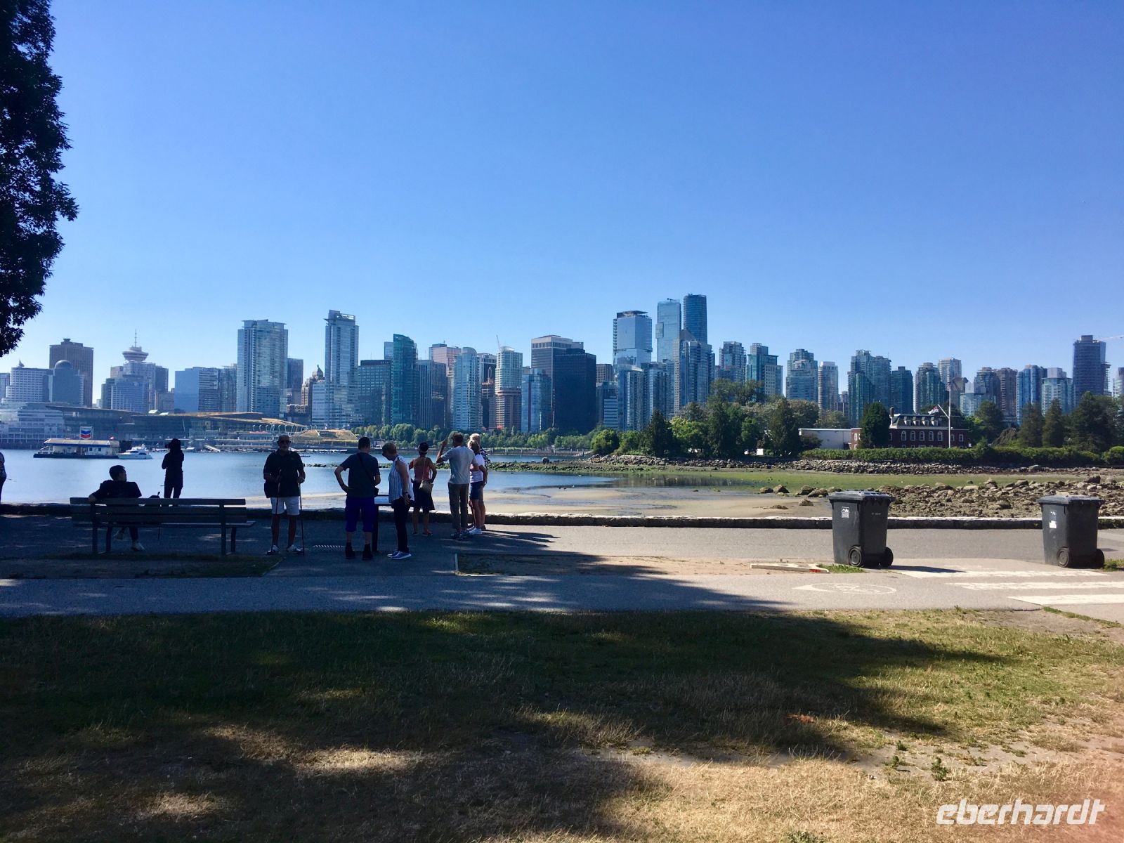 Ahhhh, aufwachen in der groessten Stadt British Columbias. Es ist etwas lauter hier als in Lake Louise am See, aber sehr modern, stylisiert, sauber und wunderschoen zeigt sich heute die Perle des Pazifiks. Nach dem Fruehstuecksbuffet treffen wir uns fuer die angekuendigte Stadtrundfahrt. Ein schicker, weisser Bus steht puenktlichst bereit und unserer heutige Chauffeur ist der charmante Mohlsen. Vorerst fahren wir nach Chinatown. Es ist das 3. groesste Chinatown ausserhalb Chinas. Wir spazieren beim chinesischen Garten und dem Gemeinschaftshaus vorbei und begeben uns auf die Hauptstrasse von Chinatown. Getrocknete und gesalzene Garnelen, schrumpfige Seegurken und andere Meeresfruechte und Nuesse jeder Art, sowie sonst uns unbekannte Speisen werden hier feilgeboten. Bloss Asiaten kaufen hier anscheinend ein, denn alles ist auf chinesisch beschrieben und wir verstehen bloss Bahnhof. Die Geschichte der Chinesen in Kanada wird hier so richtig lebendig. Weniger lebendig schauen jedoch die Sandler hier aus. Nun gehts mit Mohlsen weiter in den aeltesten Teil Vancouvers, nach Gastown. Schoen sind hier die Backsteinhaeuser, die tollen Blumenampeln und die vielen Souveniergeschaefte, Bars und Kaffeehaeuser. Es gibt hier alles, Hockeyshirts, Nummernschilder, Anhaengsel und Mitbringsel. Gastown ist nicht weit entfernt von unserem Hotel, also koennen wir morgen zum shoppen nochmals hierher kommen. Aber die Dampfuhr, die macht es aus, die begeistert. Es ist nun 11:01 und sie pfeifft genau bei unserer Ankunft. Auf den 4 Zifferblaetter steht jedoch 15:15 !!! Was ist bloss los mit den Schweizer, die diese Dampfuhr vor Jahren modernisiert und geregelt haben…stolpern die alle als Bergfexe in den Rockies herum ? Viele Fotos spaeter geht unsere Stadtrundfahrt weiter durch das Herz Vancouvers in den beruehmten Stanley Park. Bei den Totompfaehlen halten wir an und horchen den vielen Indianergeschichten zu und staunen ueber die schoenen Geschichtserzaehlende Pfaehle der verschiedenen Indianerstaemme der Westkueste Kanadas. Die Aussicht auf die Skyline der Stadt Vancouvers ist bei diesem fantastischen Wetter wunderschoen. So ist es auch ein einfaches fuer die Fotografen, das Bild gelingt einfach. Nun fahren wir gemuetlich um die ganze Halbinsel herum, geniessen, halten, schauen und erreichen so Granville Island. Hier legen wir einen Halt ein und spazieren an Theater, Bars und Kunsthandwerker vorbei bis zur grossen Markthalle. So viel Obst, Gemuese, frische Teigwaren, Brote, Wurst und Fleischwaren werden hier feilgeboten. Es ist eine Pracht. Beim Fischhaendler erfahren wir auch den Unterschied von den verschiedenen geraeucherten Lachsen und welche fuer welchen Zweck verwendbar sind. Auch hierhin muessen wir nochmals, denn im Moment wartet Mohlsen bereits auf uns um uns zurueck ins Hotel zu fahren. Den Nachmittag haben wir frei und wir treffen uns erst spaeter wieder. Der Spaziergang zum heutigen Abendessen ist nicht weit. Dieses Restaurant mit seinen riesengrossen und sehr schmackhaften Staeks und dem gigantischem Kuchen zum Abschluss wird uns in Erinnerung bleiben. So kugeln wir spaeter wieder zurueck zu unserem Hotel fuer einen Absacker. Wir muessen ja auch in diesem Hotel die 50 CAD regelrecht “versaufen”. Wir haben diesen Bonus ergattert, da auch hier wieder, Covid-bedingt, die Gaestezimmer nicht taeglich gereinigt werden sondern bloss jeden 2. Tag. So haben wir eine schoene Entschaedigung. Die Nacht ist gut und auch so lange jeder moechte.