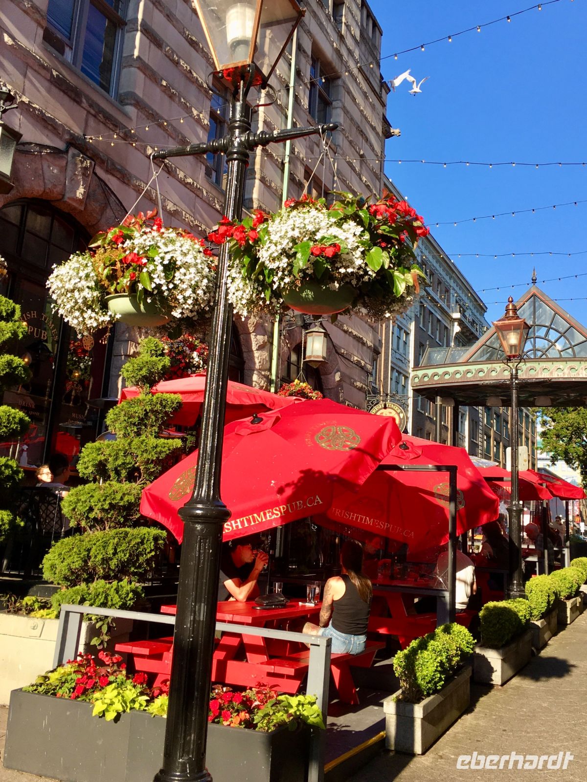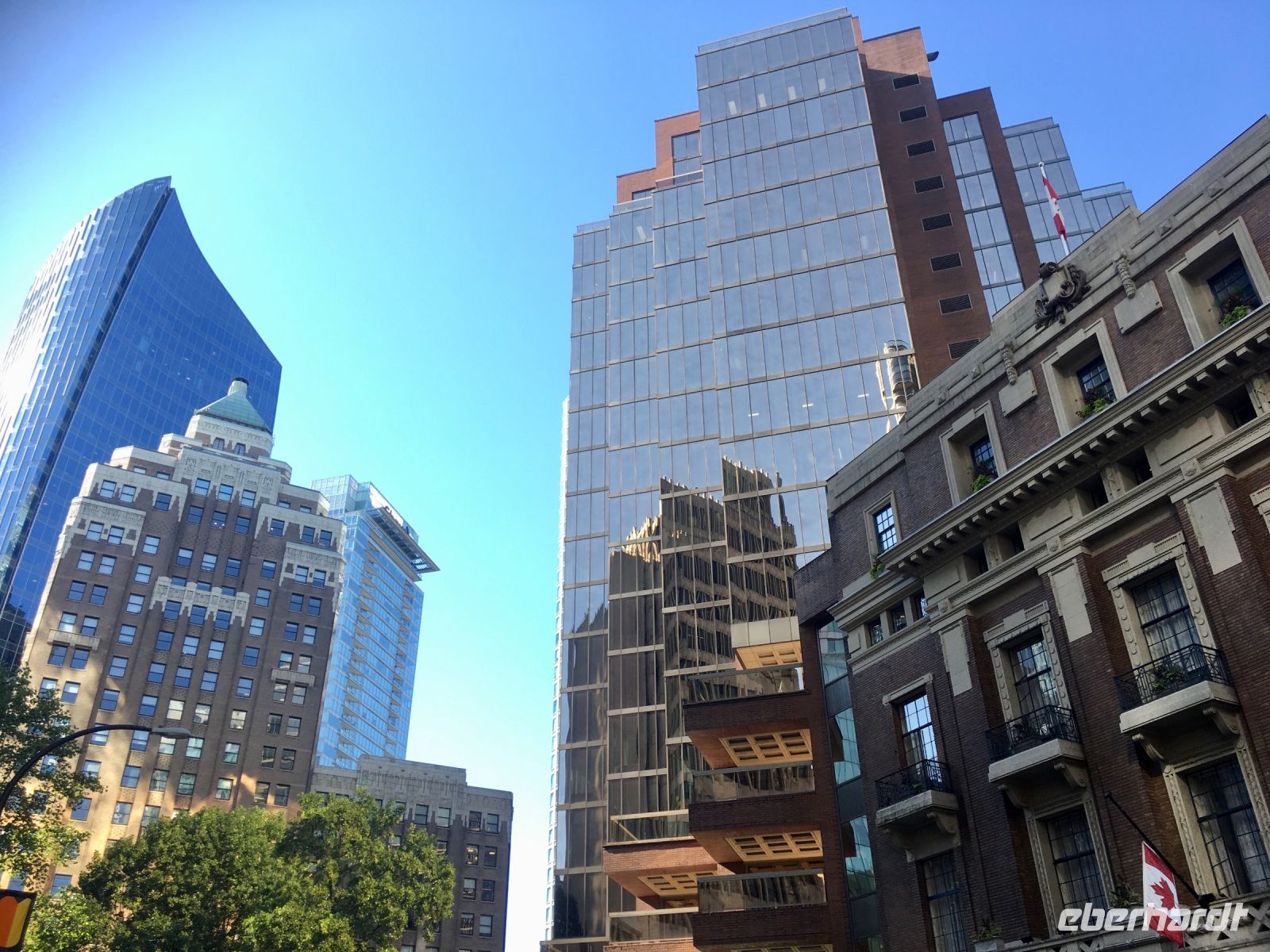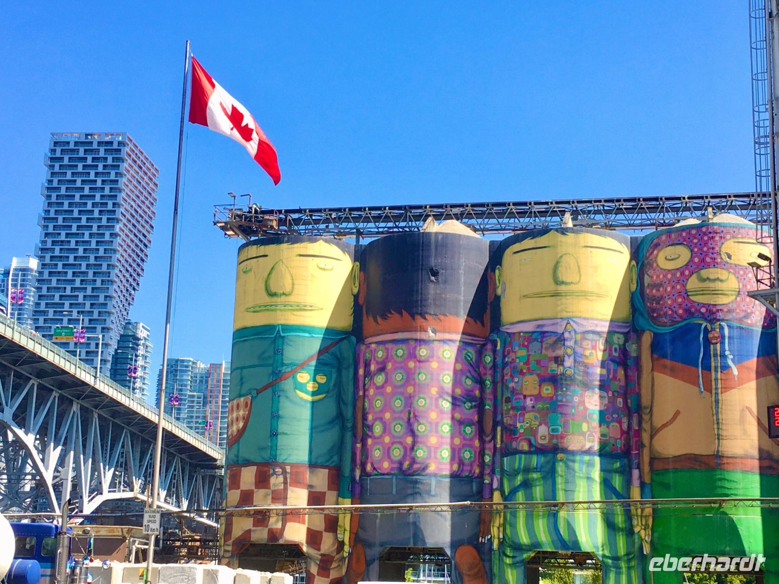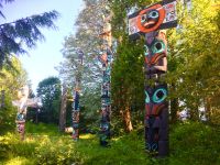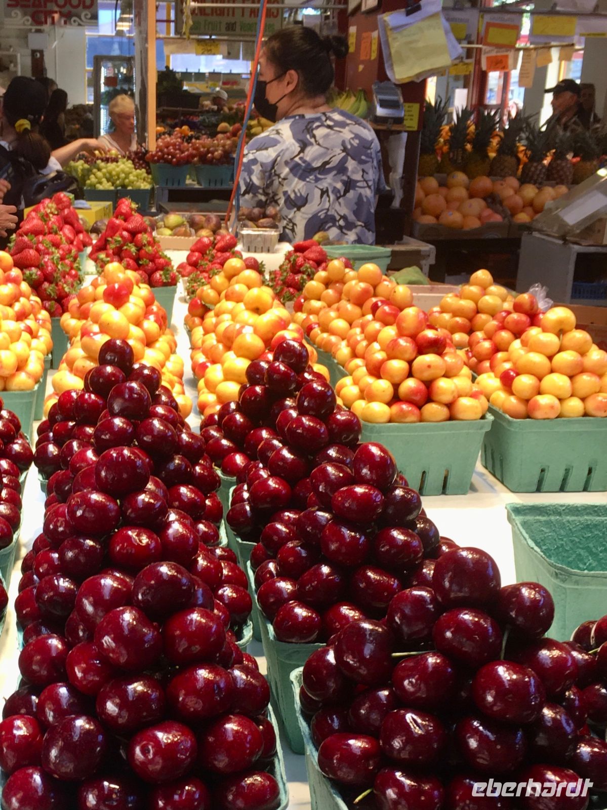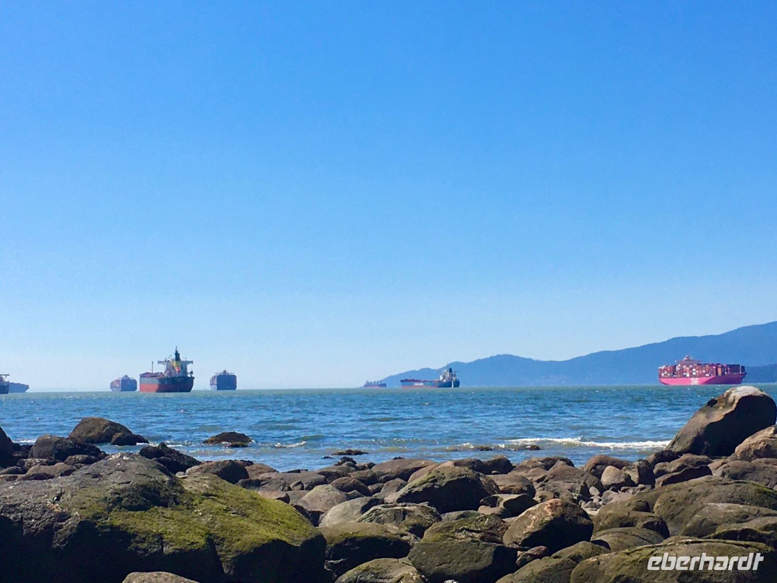 Ahhhh, aufwachen in der groessten Stadt British Columbias. Es ist etwas lauter hier als in Lake Louise am See, aber sehr modern, stylisiert, sauber und wunderschoen zeigt sich heute die Perle des Pazifiks. Nach dem Fruehstuecksbuffet treffen wir uns fuer die angekuendigte Stadtrundfahrt. Ein schicker, weisser Bus steht puenktlichst bereit und unserer heutige Chauffeur ist der charmante Mohlsen. Vorerst fahren wir nach Chinatown. Es ist das 3. groesste Chinatown ausserhalb Chinas. Wir spazieren beim chinesischen Garten und dem Gemeinschaftshaus vorbei und begeben uns auf die Hauptstrasse von Chinatown. Getrocknete und gesalzene Garnelen, schrumpfige Seegurken und andere Meeresfruechte und Nuesse jeder Art, sowie sonst uns unbekannte Speisen werden hier feilgeboten. Bloss Asiaten kaufen hier anscheinend ein, denn alles ist auf chinesisch beschrieben und wir verstehen bloss Bahnhof. Die Geschichte der Chinesen in Kanada wird hier so richtig lebendig. Weniger lebendig schauen jedoch die Sandler hier aus. Nun gehts mit Mohlsen weiter in den aeltesten Teil Vancouvers, nach Gastown. Schoen sind hier die Backsteinhaeuser, die tollen Blumenampeln und die vielen Souveniergeschaefte, Bars und Kaffeehaeuser. Es gibt hier alles, Hockeyshirts, Nummernschilder, Anhaengsel und Mitbringsel. Gastown ist nicht weit entfernt von unserem Hotel, also koennen wir morgen zum shoppen nochmals hierher kommen. Aber die Dampfuhr, die macht es aus, die begeistert. Es ist nun 11:01 und sie pfeifft genau bei unserer Ankunft. Auf den 4 Zifferblaetter steht jedoch 15:15 !!! Was ist bloss los mit den Schweizer, die diese Dampfuhr vor Jahren modernisiert und geregelt haben…stolpern die alle als Bergfexe in den Rockies herum ? Viele Fotos spaeter geht unsere Stadtrundfahrt weiter durch das Herz Vancouvers in den beruehmten Stanley Park. Bei den Totompfaehlen halten wir an und horchen den vielen Indianergeschichten zu und staunen ueber die schoenen Geschichtserzaehlende Pfaehle der verschiedenen Indianerstaemme der Westkueste Kanadas. Die Aussicht auf die Skyline der Stadt Vancouvers ist bei diesem fantastischen Wetter wunderschoen. So ist es auch ein einfaches fuer die Fotografen, das Bild gelingt einfach. Nun fahren wir gemuetlich um die ganze Halbinsel herum, geniessen, halten, schauen und erreichen so Granville Island. Hier legen wir einen Halt ein und spazieren an Theater, Bars und Kunsthandwerker vorbei bis zur grossen Markthalle. So viel Obst, Gemuese, frische Teigwaren, Brote, Wurst und Fleischwaren werden hier feilgeboten. Es ist eine Pracht. Beim Fischhaendler erfahren wir auch den Unterschied von den verschiedenen geraeucherten Lachsen und welche fuer welchen Zweck verwendbar sind. Auch hierhin muessen wir nochmals, denn im Moment wartet Mohlsen bereits auf uns um uns zurueck ins Hotel zu fahren. Den Nachmittag haben wir frei und wir treffen uns erst spaeter wieder. Der Spaziergang zum heutigen Abendessen ist nicht weit. Dieses Restaurant mit seinen riesengrossen und sehr schmackhaften Staeks und dem gigantischem Kuchen zum Abschluss wird uns in Erinnerung bleiben. So kugeln wir spaeter wieder zurueck zu unserem Hotel fuer einen Absacker. Wir muessen ja auch in diesem Hotel die 50 CAD regelrecht “versaufen”. Wir haben diesen Bonus ergattert, da auch hier wieder, Covid-bedingt, die Gaestezimmer nicht taeglich gereinigt werden sondern bloss jeden 2. Tag. So haben wir eine schoene Entschaedigung. Die Nacht ist gut und auch so lange jeder moechte.