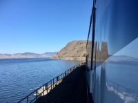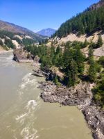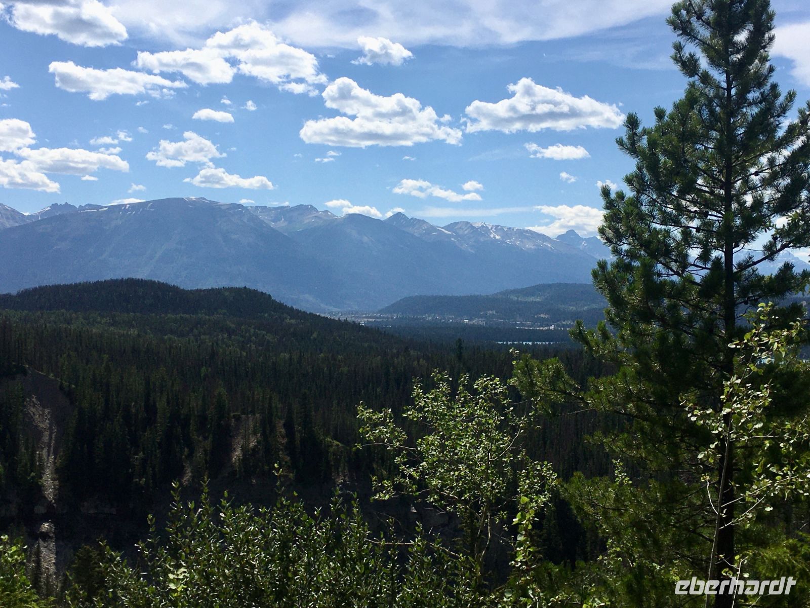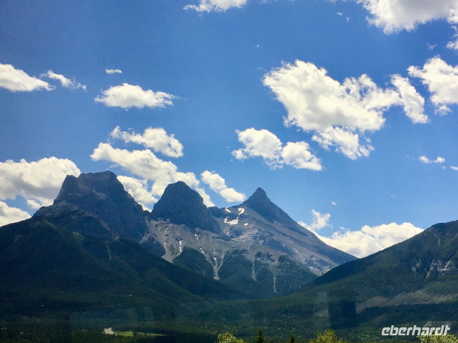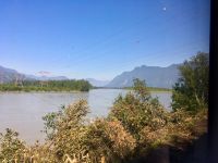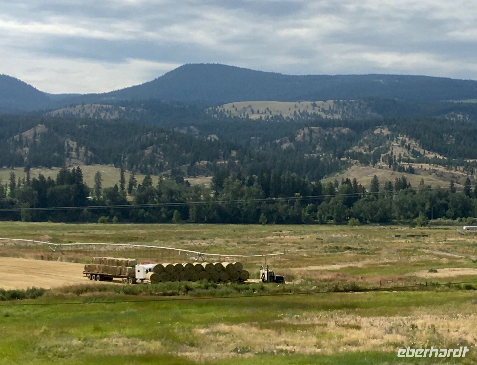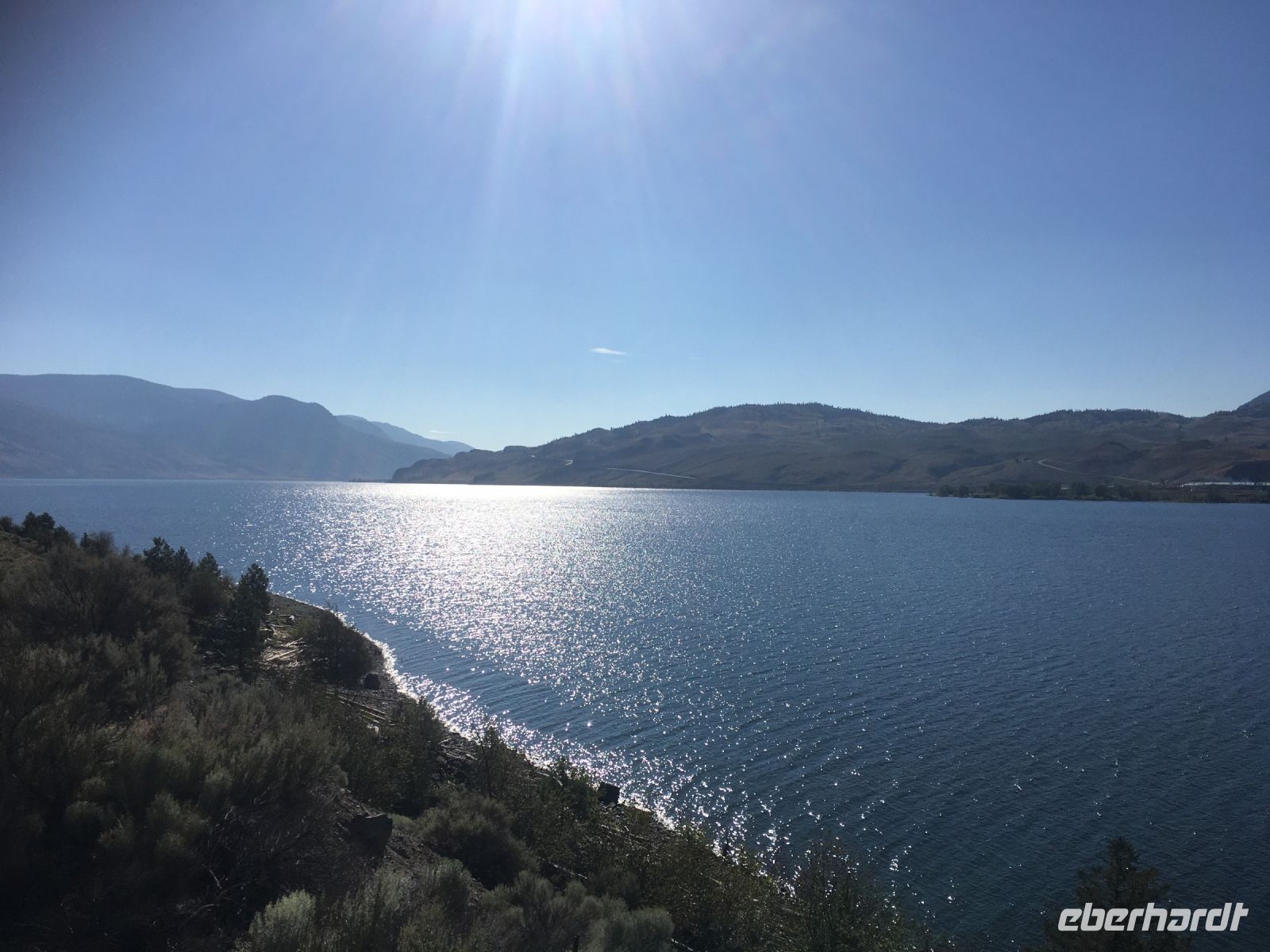 Die Sonne lacht, keine Wolke ist zu sehen, kein Ton zu hoeren. Halb verschlafen, stellen wir zu aller hergotts Frueh die Koffer vor die “Cabin” und richten uns so langsam her fuer den ersten der zwei Bahnfahrts-tage. Wir treffen uns wie abgemacht in der Lobby und aus unerfindlichen Gruenden, muessen wir lange warten bis der Bus der uns zum Bahnhof faehrt…..nicht kommt. Elisabeth organisiert einen Hoteltransport und so steigen wir 10 Minuten spaeter in den beruehmten Rocky Mountaineer Zug ein. Heute beginnt ein ganz besonderer Teil unserer Reise. Denn fuer die naechsten 2 Tage fahren wir mit dem Luxuszug von Jasper nach Vancouver. Diese Bahnfahrt fuehrt uns heute aus den Rocky Mountains hinaus. Erst fahren wir, in einem Domwagen mit bequemen Sitzen, umhegt und vorzueglich betreut, ueber die Wasserscheide des amerikanischen Kontinents auf die westseite Kanadas. Vorbei an Bieberbauten verlassen wir nun Alberta und gelangen sang und klanglos nach British Columbia. Alles geht sehr gemuetlich die einzige Aufregung ist das umstellen der Uhren. Der heutige Tag hat naemlich 25 Stunden, wir sind gerade wieder juenger geworden und haben eine Stunde mehr Spielzeit. Gelangen wir wieder in den Kindergarten wenn wir nun jahrelang gen Westen fahren ? Buegeln sich da alle Falten wieder glatt ? Item, der hoechste Berg British Columbias mit seinen 3954 Meter Hoehe ist Mount Robson und heute zur Gaenze zu sehen. Dies ist sehr selten, da er ein Tal abschliesst und die warme Luft die da nun steigen muss ihm immer eine dicke weisse Kappe auflegt. Von nun an werden die Berge immer niedriger, die Landschaft gruener und ueppiger. Der Fraser Fluss entspringt hier und biegt aber auch bald einmal gen Westen ab, wobei wir suedlich fahren. Hier begegnen wir dem North Thompson Fluss der uns durch die Columbia Bergkette bis nach Kamloops begleitet. An Bord des Zuges werden wir verwoehnt wie Gott in Frankreich. Auf bequemen Sesseln sitzen wir in einem Panoramawagen. Draussen zieht die maechtige Natur vorbei wobei die chramanten, jungen Fahrtbegleiterinnen aus dieser Zugreise ein Erlebnis gestalten. Kulinarisch hochstehende Speisen schauen wie Bilder aus und werden begleitet von besten BC Weinen, Gaumenfreude und Augenweide. Wir erfahren auch allerhand ueber Land und Leute dieses nun 150 Jahre alten Landes und warten immer mal wieder bis ein Gleis fuer die Weiterfahrt frei wird. Alle Gueterzuege der Canadien Pacific Railway haben Vorrang und sie fahren nicht nach einem Zeitplan. Wir sind bloss Gaeste auf diesen Schienen und so weiss man auch nie wann man genau ankommt. Zeit wird auf einmal unwichtig wir koennen so richtig loslassen und das Erlebnis dieser Zugreise einfach geniessen. In Kamloops beziehen wir unsere Zimmer in einem Hotel wo unsere Koffer bereits in den Zimmern stehen und einige gehen auch gleich zum Thompson Fluss hinunter. Schwimmen im Thompson River ist wegen Hochwasser nicht moeglich. Jedoch gibt es ein Konzert im Park und flanieren auf der Seepromenade von Kamloops tut auch sehr gut. Ein Bierchen spaeter, fahren wir wieder zurueck zu unserem Hotel wo unsere Koffer bereits geduldig in unseren Zimmer auf uns warten.
