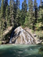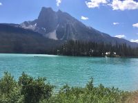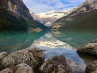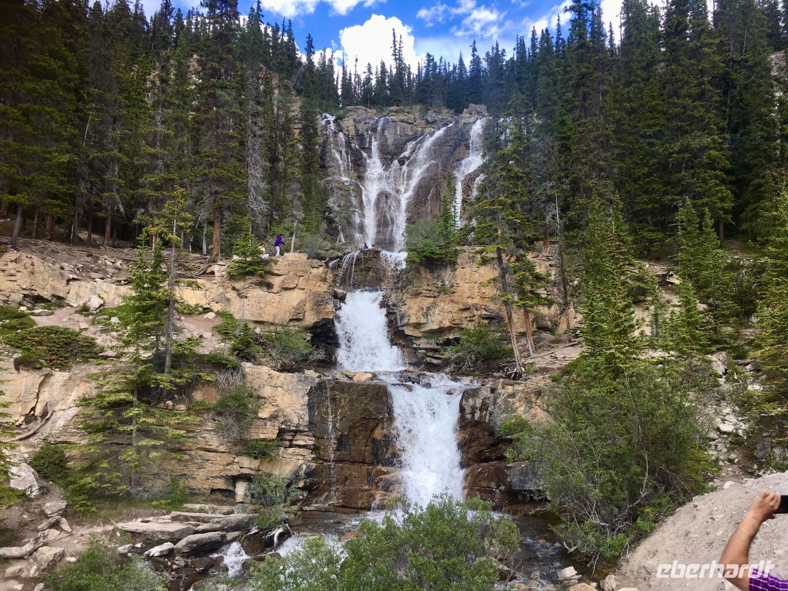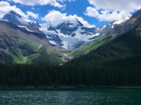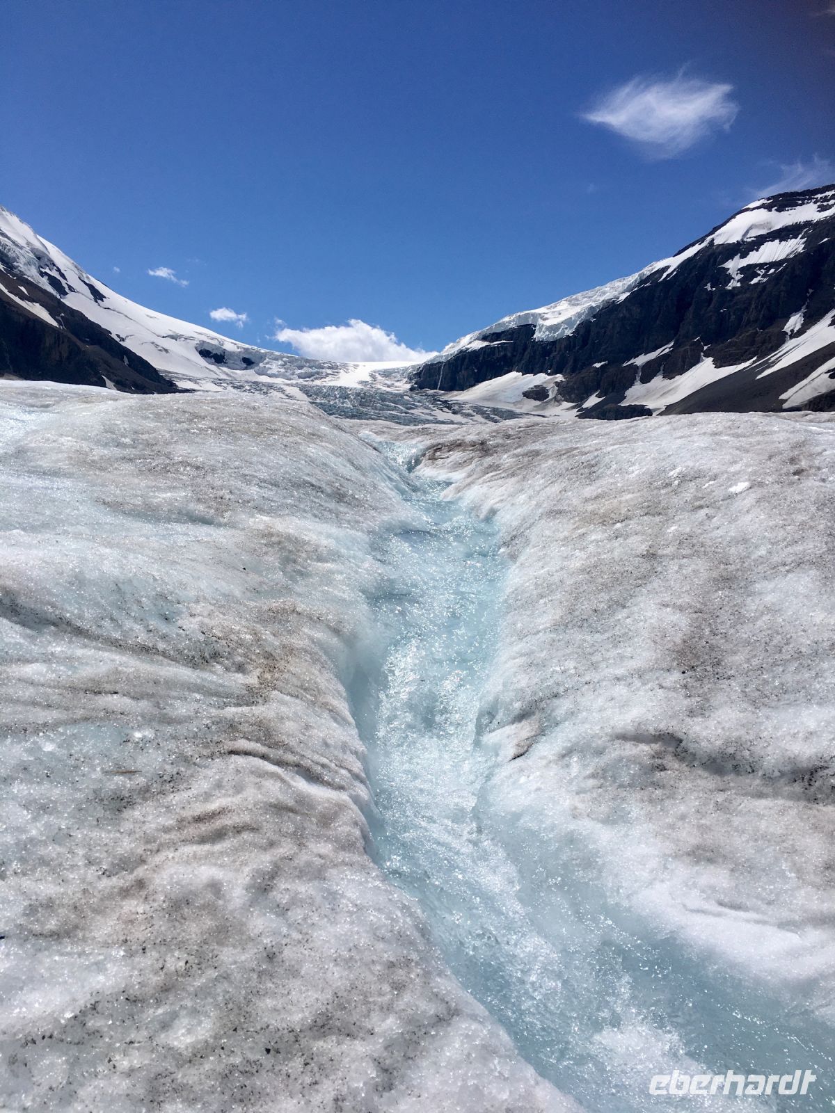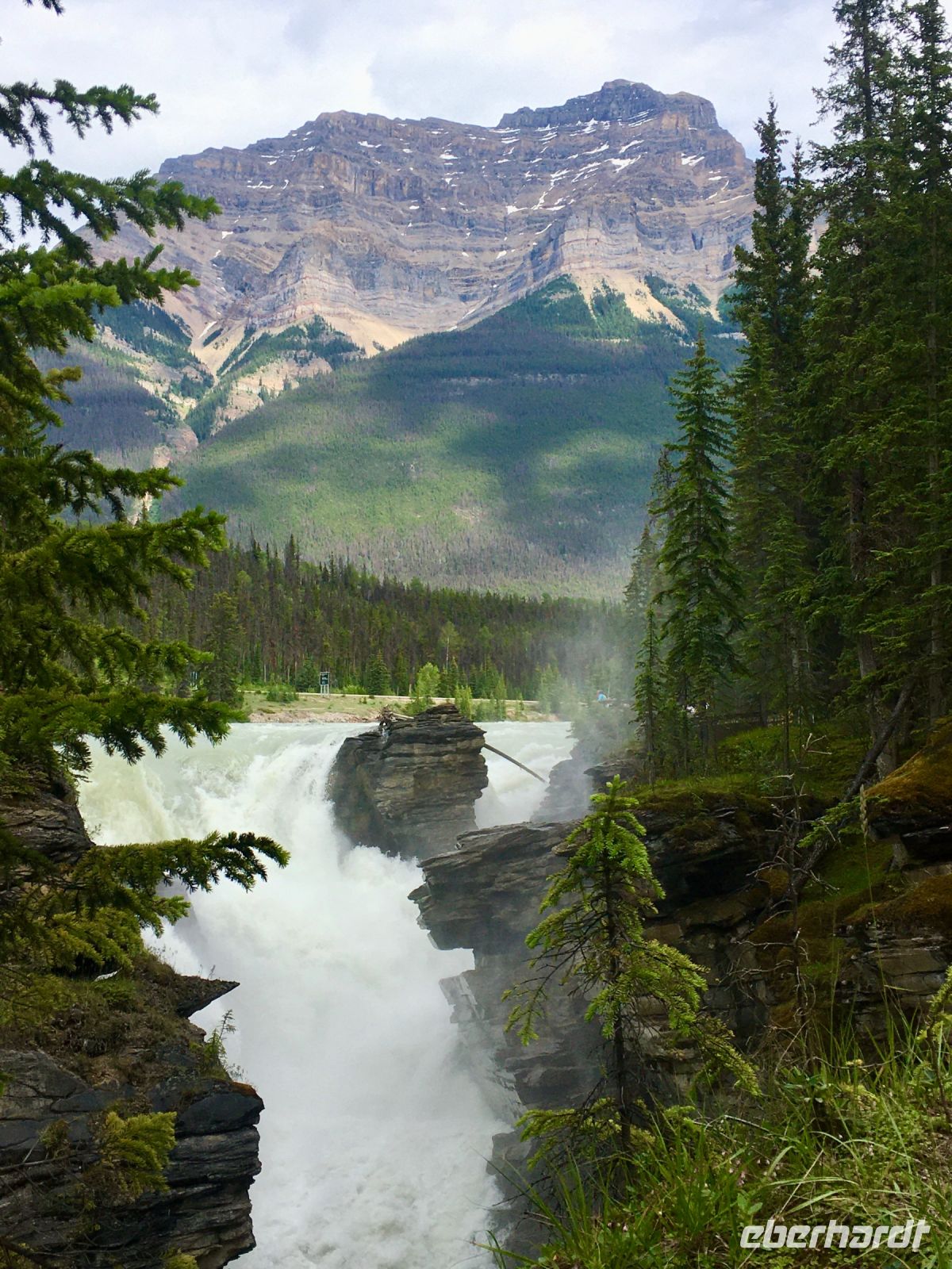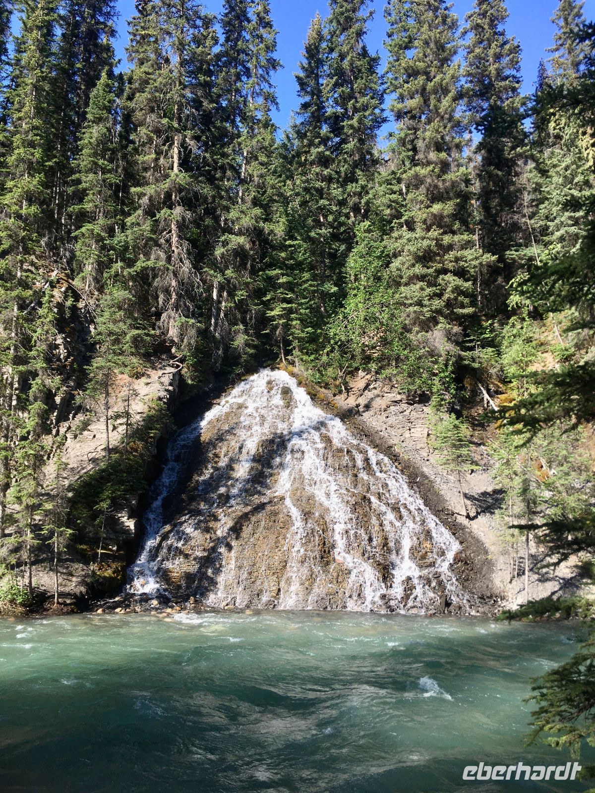 Nichts Schoeneres als aufwachen, in die Berge schauen und blauen Himmel sehen. Die meisten sind bereits um 6 Uhr in der Frueh unterwegs, um Fotos von dem rosafarbenen Victoria Gletscher zu erhaschen. Der See liegt ganz ruhig und die Spiegelung ist perfekt. Das Fruehstuecksbuffet ist wieder wunderbar, indemselben Restaurant Lago wie gestern abend das Abendessen. Heute fahren wir bei praechtigstem Sonnnschein auf die beruehmte Icefield Parkway. Diese Strasse gehoert zu den schoensten Strassen der Welt und wir geniessen die maechtigen Berge die sich hier aneinander reihen. Tuerkisblaue Seen liegen still im Walde und glitzernde Gletscher schauen auf uns herunter. Heute hoeren wir einiges ueber die Kultur der Ersten Nationen, ueber Gletscher und Schneefelder und ueber Baeren. Ploetzlich haelt Amy den Bus an, wir stehen schon vor unserem ersten Gletscher. Der Kraehenfuss-Gletscher zeigt sich sehr fotogen besonders mit der Kraehe im Vordergrund die anscheinend hier immer auf Fototermine wartet. Gleich danach wollen wir zum Bow Lake runterfahren. Uups, der Parkplatz ist vollgestopft mit Autos und wir sitzen da fest. Gekonnt faehrt Amy rueckwaerts wieder zur Strasse hoch und laesst uns oben aussteigen. Kein Leichtes mit diesem Riesenbus. Danke Amy. Die Photos von diesem See mit seinem Bow Gletscher dahinter und der schoenen Spiegelung sind gut gelungen. Geht auf die Bildergalerie, ihr werdet staunen. Bald muessen wir jedoch wieder weiter, denn der Weg zum Columbia Icefeld ist noch eine atemberaubende Stunde entfernt. Vorerst gibts jedoch noch einen Halt, denn der Peto Lake will mit seiner Farbe alle anderen Seen uebertrumpfen. Ja, es gelingt ihm heute ganz deutlich. Wir koennen unser Glueck kaum fassen, denn das Wetter spielt so herrlich mit, dass wir einfach begeistert sind von den tollen Ansichten. Der Hoehepunkt des heutigen Tages kommt nahe. Uns erwartet eine Fahrt mit dem Icecoach auf dem Athabasca Gletscher des Columbia Eisfeldes. Es ist ein wunderbares Erlebnis hier oben auf dem ewigen Eis zu stehen. Die Flaeschen werden nun mit dem Ewig-jung-Wasser gefuellt ehe es wieder Zeit wird mit dem Cruiser zum Parkplatz zu fahren wo Amy bereits auf uns wartet. Sie faehrt uns nun zum Skywalk. Auf einer glaesernen Terrasse, welche hoch ueber einem Tal gelegen ist, wird unser Mut getestet. Bestanden, nun aber zurueck zum Ausgangspunkt und weiter geht es bis zu einem schmucken Wasserfall. Die Athabasca Faelle sind sehr imposant und den kurzen Besuch wert. Bald danach gelangen wir in unsere Jasper Park Lodge. Ein wahrlich schmuckes 5 Sterne-Hotel, aus vielen Bungalows bestehend, mit seinem eigenen Bergsee und einer wunderbaren Sicht auf die Bergwelt der Rockies. Dieses Hotel ist bereits ueber 100 Jahre alt und die “Cabins” auch Bungalow genannt sind teilweise ein wenig veraltert aber das macht vielleicht auch den Charm dieses bezauberndes Ortes aus. Das Abendessen schmeckt heute auch ganz vorzueglich und wir bleiben gerne 10 Tage .........ah, so sorry, 2 Naechte hier.
