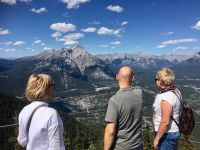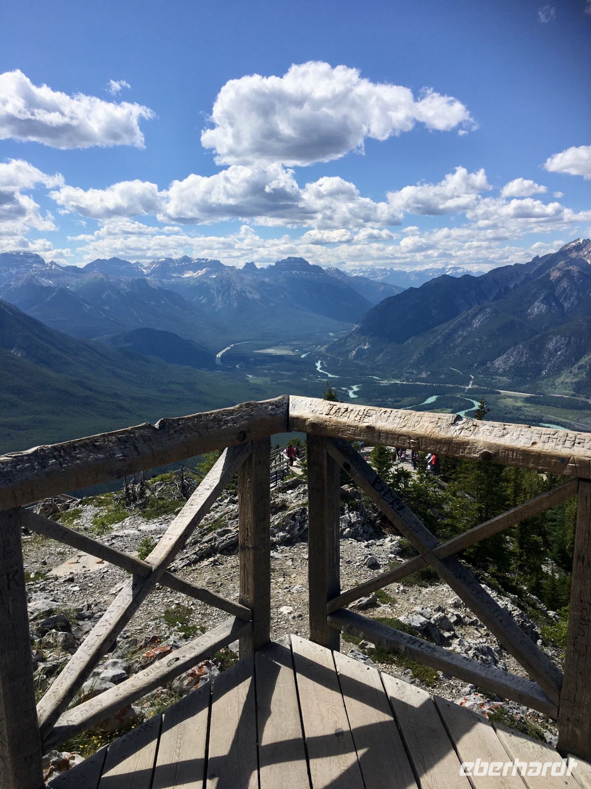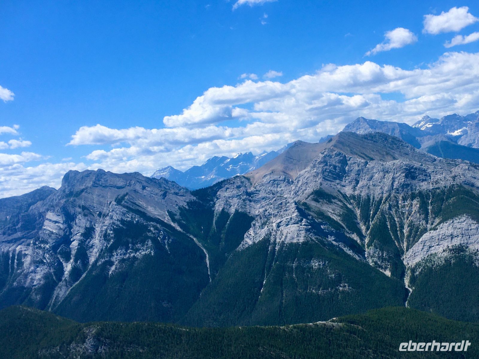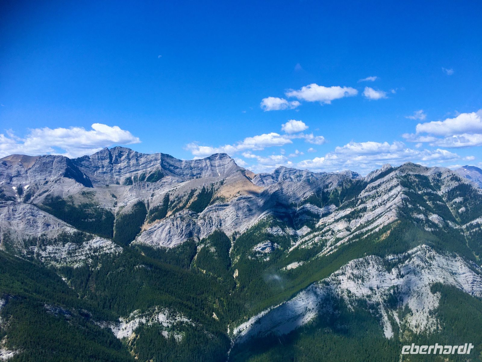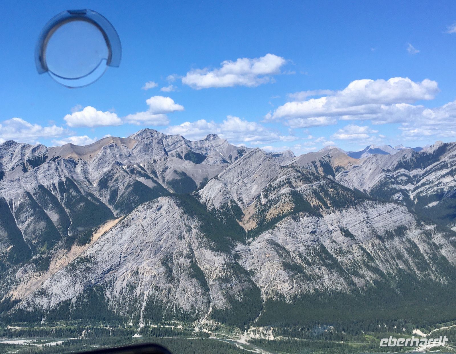 Yupee ! Wir sind wie Neu. Die Nacht war gut und der Jetlag wurde ueberlistet. Naja, sozusagen, denn die meisten waren doch ab 4 Uhr in der Frueh immer mal wieder putzmunter. Gemuetlich um 9:30 Uhr, erscheint auch schon Bill mit seinem riesen Bus. Mit ihm fahren wir aus Calgary hinaus, beim Olympia Park vorbei. Wir sehen die 5 Sprungschanzen, die Sessellifte und die Bob/Rodel/Skeleton-Bahn. Auch Eddy the Eagle und das Jamaica Bobteam sehen wir in unseren Gedanken. Unsere Katharina Witt stand hier auf dem Siegerpodium. Nun aber weiter, denn der naechste Stopp ist bereits der erste Highlight dieses Urlaubs, der Helikopterflug ! Alles ist vorbereitet und shwupdibup sitzen wir auch schon in den Maschinen und erleben 20 einmalige Minuten. Atemberaubende Sicht bietet sich hier auf die Rocky Mountains und das Bow Tal. Leuchtende Seen lachen uns zu. Schroffe Felswaende warnen. Die Sonne scheint, ein paar weisse Woelkchen zieren, es ist perfekt. Waren die kleinen weissen Punkte auf der Felswand Bergziegen ? Gluecklich, geht die Busfahrt nun weiter nach Banff, wo wir uns das tolle Banff Springs Hotel anschauen und danach in dem Dorf eine Stunde Mittagspause machen. Nun wartet bereits unser naechster Ausflug. Mit der Gondel, ohne Skier, schweben wir auf den Sulphure Mountain, wo wir einen kleinen Spaziergang zu Sansons Peak unternehmen. Viele Fotos werden von der herrlichen Aussicht geknipst, ehe wir wieder mit der Gondel hinunterschweben. Unser Hotel heute abend ist ganz in der Naehe der Gondel und der heissen Quellen. Also checken wir ein in die riesigen Ziemmer mit atemberaufender Aussicht auf Mount Rundle und treffen uns alsobald in der Lobby um die heissen Quellen auszuprobieren. Oh wie toll, dies warme Schwefelwasser ist total relaxing und nach einer viertel Stunde sind die Fingerspitzen schon ganz verrunzelt..also spazieren wir wieder zurueck zum Hotel um uns zum Abendessen umzuziehen. Das Essen ist nicht bloss sehr schoen es schmeckt auch sehr lecker. Die Aussicht ist einfach toll. Jetzt noch einen Absacker dann gehts in die riesen Zimmer fuer die Nachtruhe. Der Helikopterflug, er will den Traum nicht verlassen….