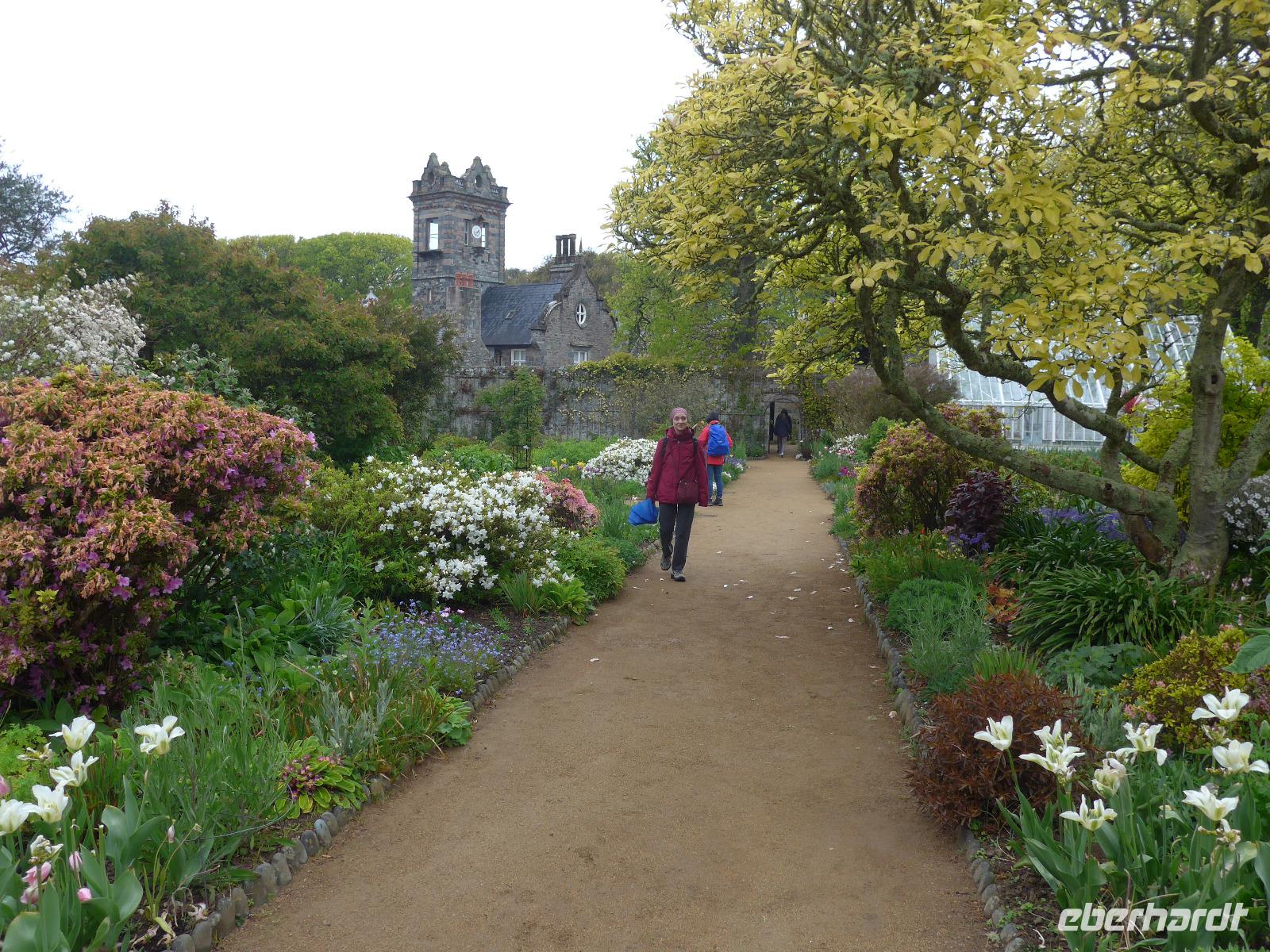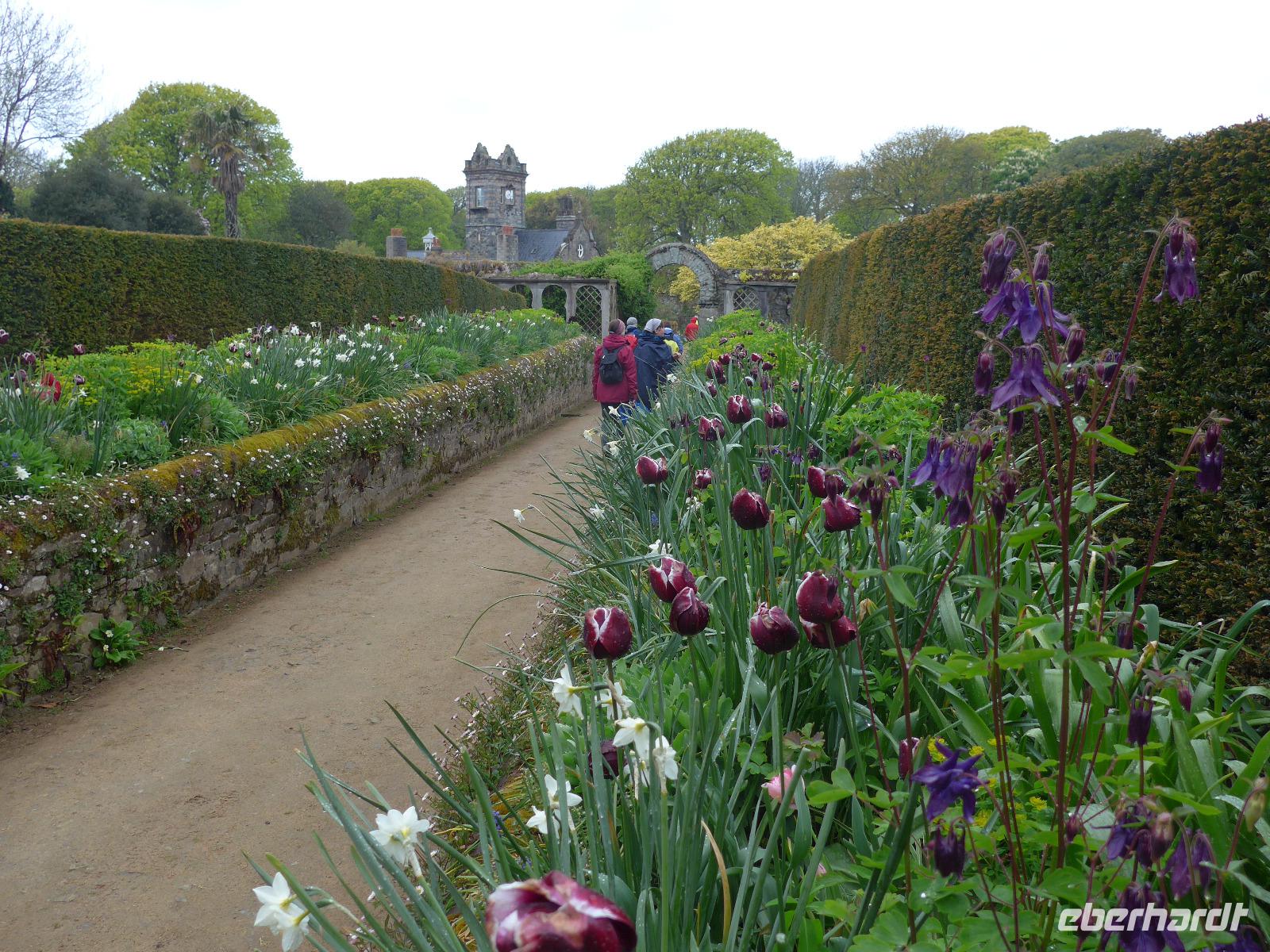 Unser letzter Ausflug mit Heidi begann wieder 9.30 Uhr und wir besuchten ganz in der Nähe von St. Aubin 2 private Gärten. Zunächst ging es zu Mrs. Lea, die mit 87 Jahren noch vieles in ihrem Garten allein bewältigt. Sie führte uns auch selbst durch ihr "Gartenreich" und wir waren begeistert vom guten Zustand des Gartens und der geschmackvollen Gestaltung. Selbst ein benachbarter ehemaliger Tennisplatz wurde sehr schön umgestaltet. Die WC Pause machten wir unten in St. Aubin und dann fuhren wir zum Garten von Mr. Skipper. Hier führte uns Heidi durch die einzelnen Gartenteile, die wie abgeschlossene Zimmer wirkten. Auch dieser Garten war sehr gepflegt und es blühten viele verschiedene Kamelien und sogar eine gelbe Magnolie.