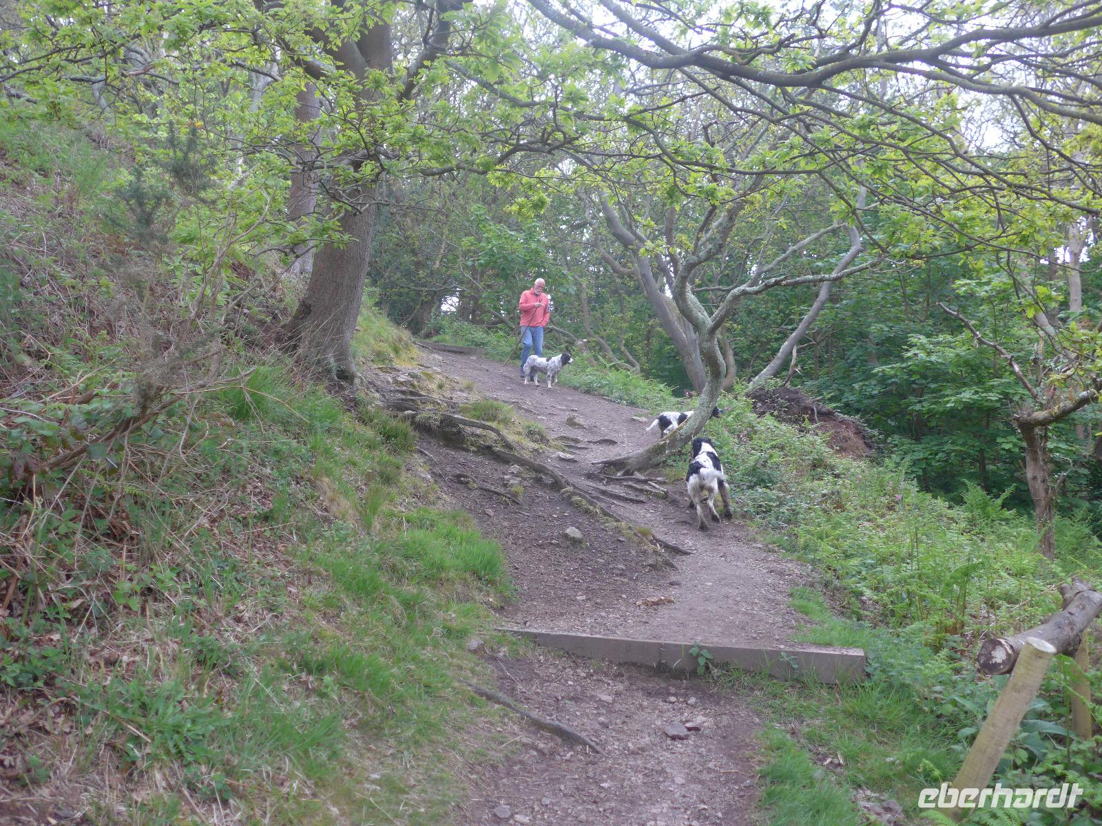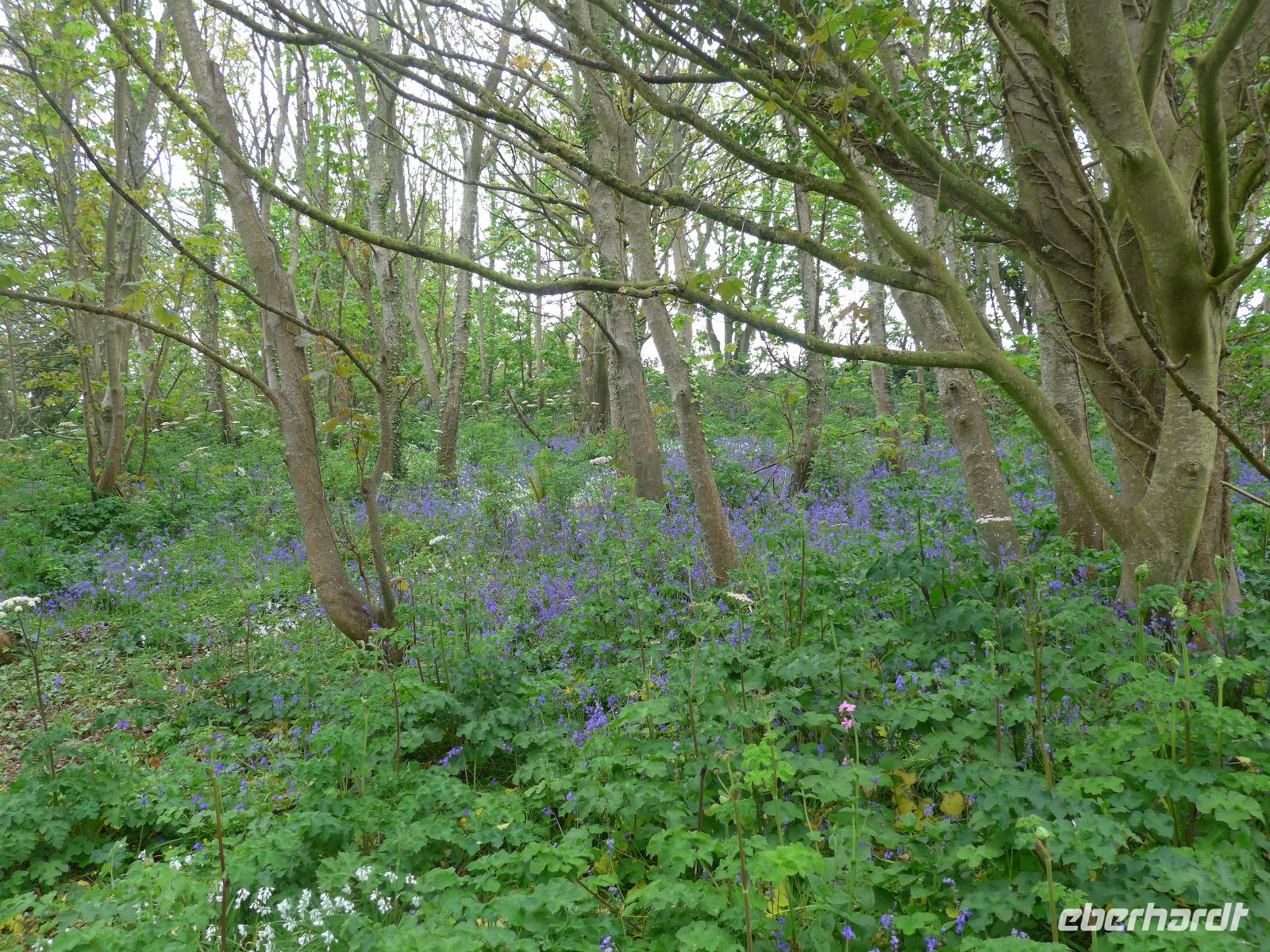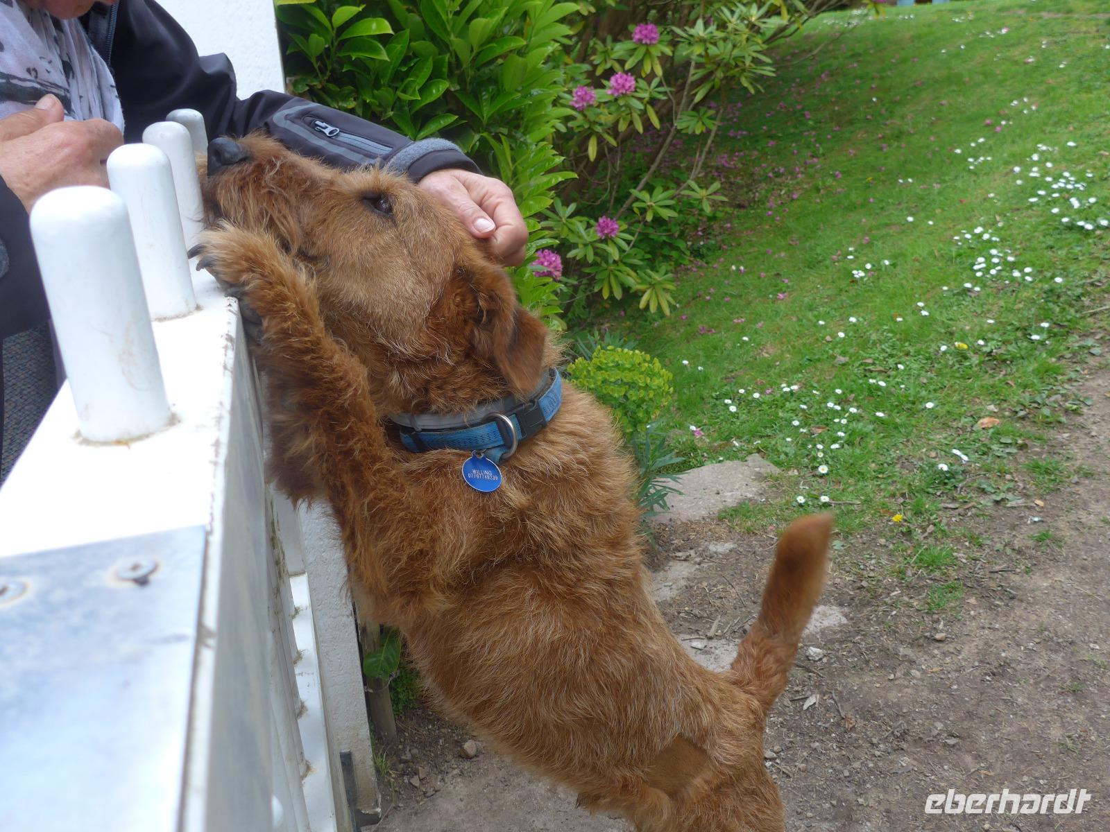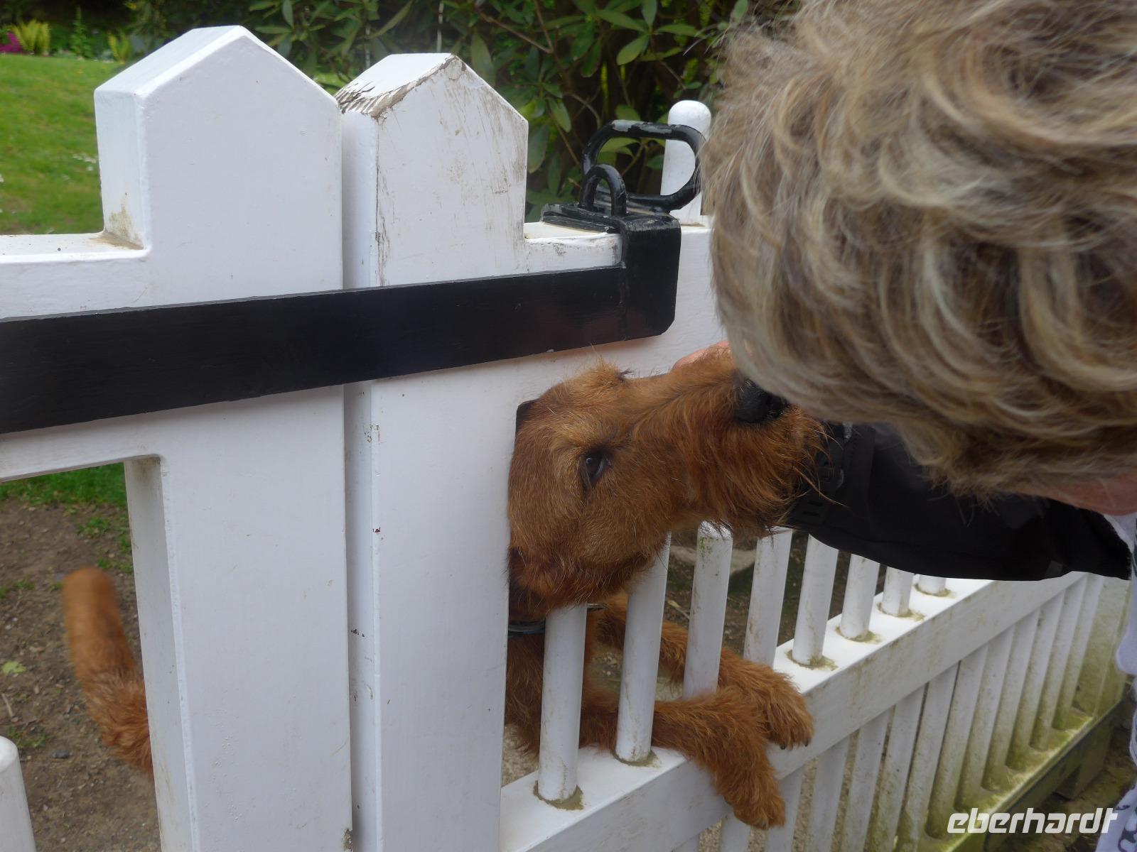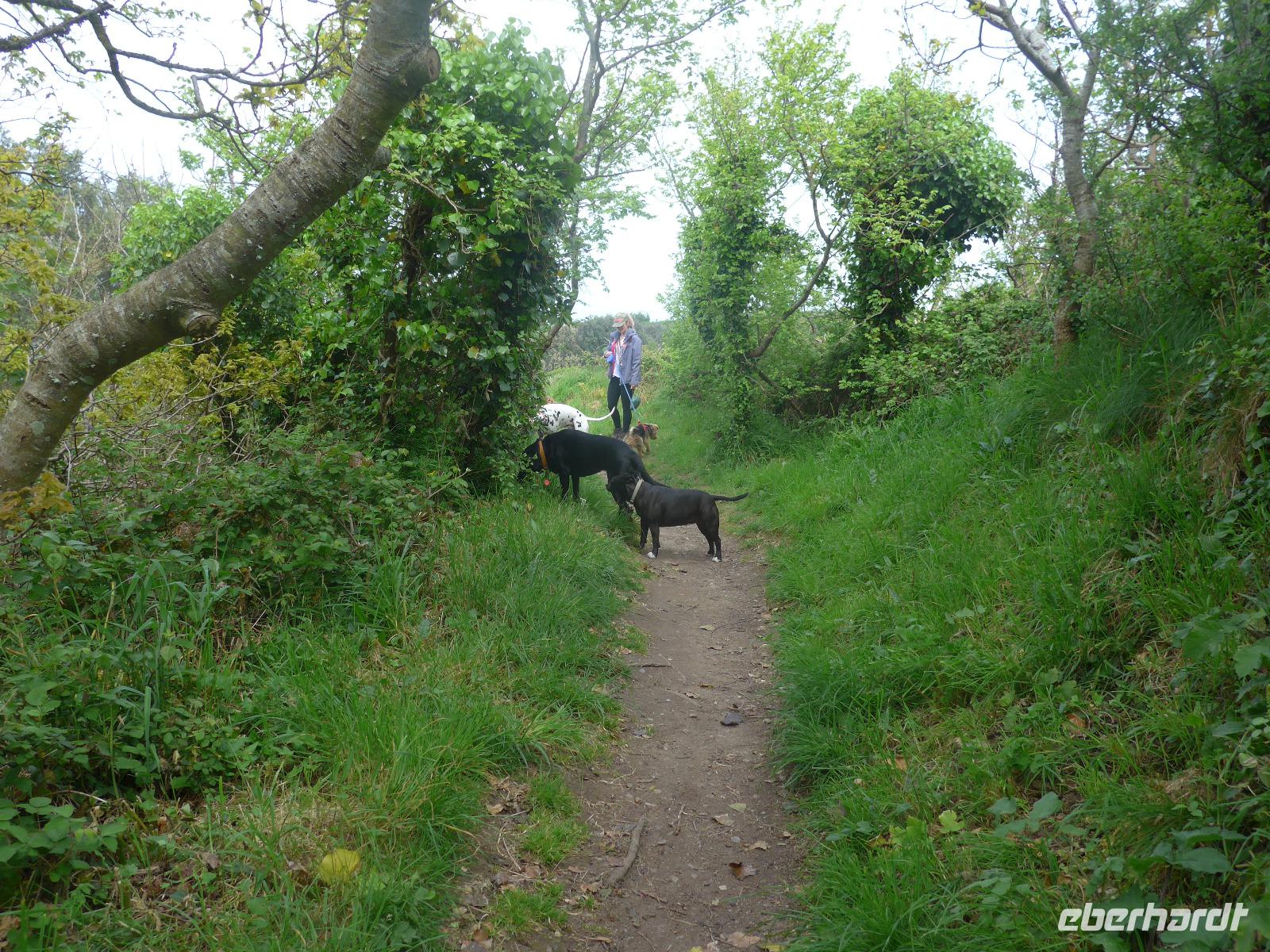 Die Wanderung vom Vortag hatte Spuren hinterlassen und so entschieden sich 3 Damen nicht mit zu wandern sondern mit Ernst eine Inlandfahrt mit dem Kleinbus auf Jersey zu machen. Wir nahmen die 3 mit bis zur Steam Clock, wo sie umstiegen. Alle anderen fuhren mit Heidi gen Norden. Unsere Wanderung begann kurz hinter der Bonne Nuit Bay und folgten dem Küstenweg bis zur Bouley Bay. Unterwegs trafen wir mehrere "Hundesitter", die mit bis zu 8 Tieren ebenfalls auf dem Küstenpfad waren. Das Wetter war anfangs trüb, besserte sich aber zum Nachmittag hin. Unser Weg war schon anspruchsvoll und ging ständig auf und ab. Im Norden war es rauher und deshalb blühte auch noch nicht soviel wie am Vortag. Zu Mittag erreichten wir die Bouley Bay und kehrten ein bei Mad Marry und im schwarzen Hund. Gut gestärkt und ausgeruht nahmen wir den zweiten Abschnitt in Angriff. Es ging anfangs wieder über viele Stufen steil bergan. Auf einem Felsplateau gönnten wir uns eine längere Pause in der Sonne und genossen den herrlichen Ausblick. In der Rozel Bay waren wir wieder früher als geplant und so stand dem Besuch im Cafe nichts im Wege. Heidi holte uns ab und den restlichen Nachmittag gingen wir wieder an den Strand gleich bei unserem Hotel.