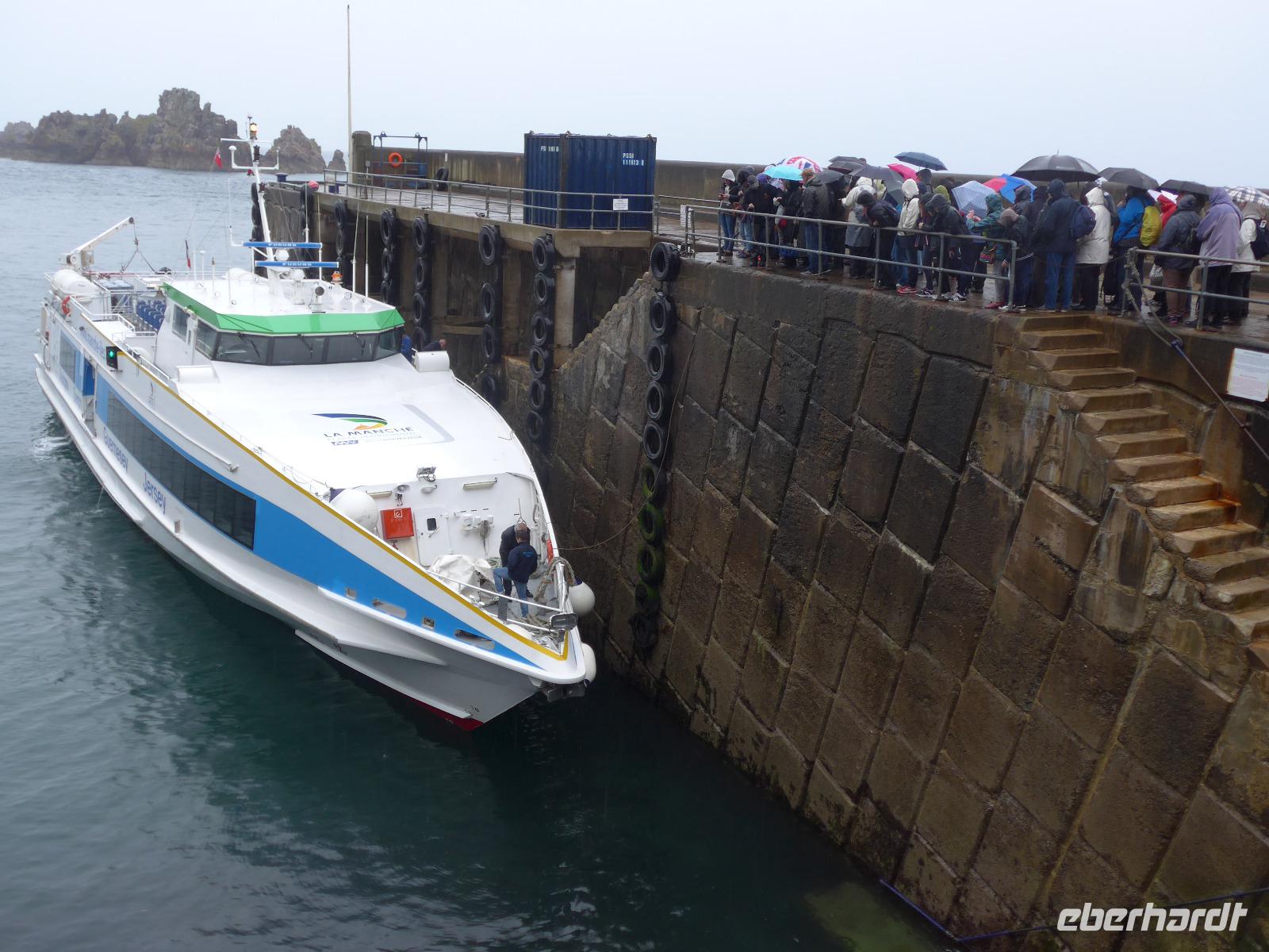 Heute begleitete uns Heidi mit dem Kleinbus zum Hafen und von dort mit der Fähre nach Sark.