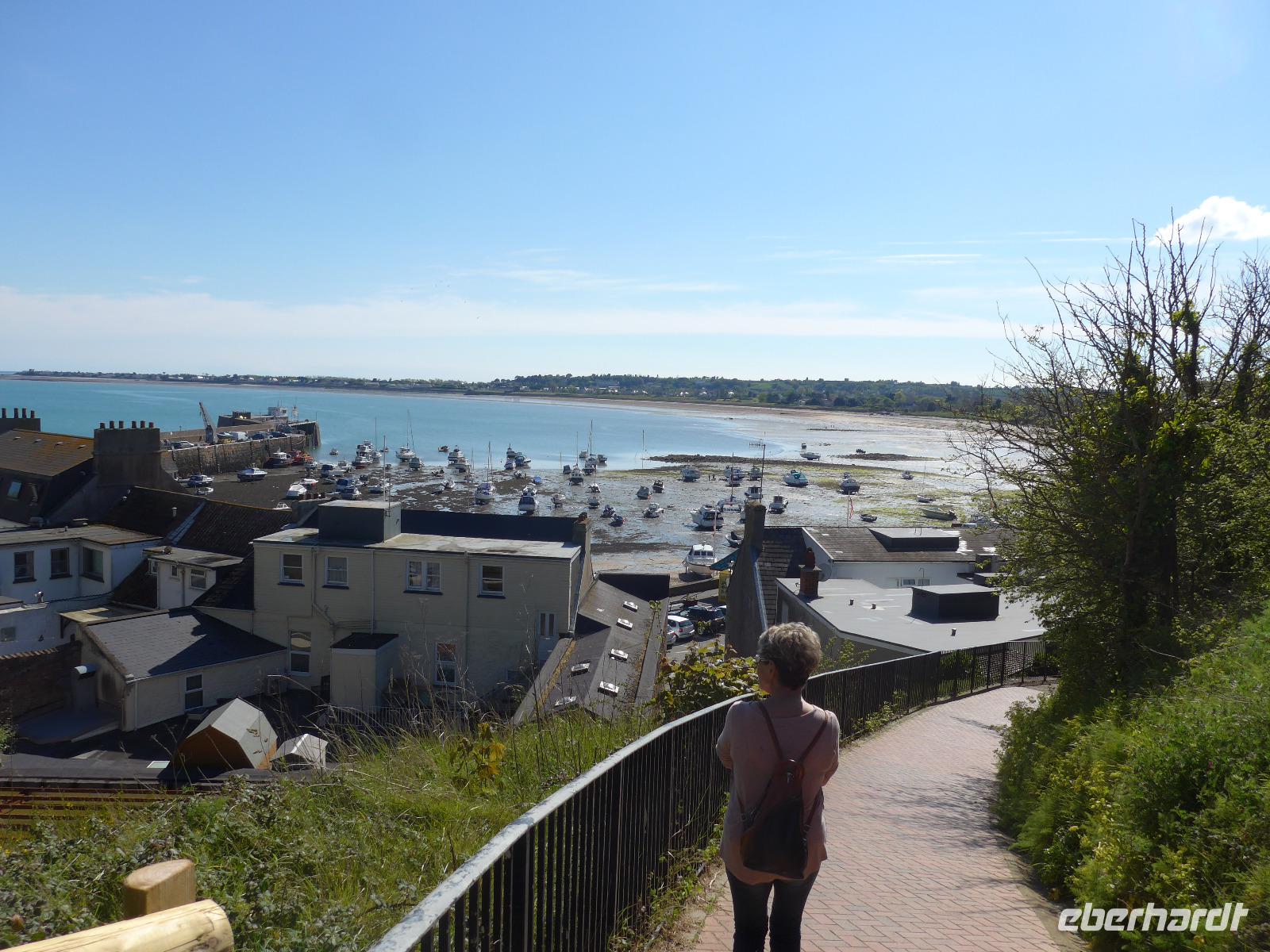 Auf die Fähre zurück mußten wir lange warten und dann viele Stufen hinunter gehen, weil Ebbe war und die Fähre tief unten anlegte. Ein einmaliges Erlebnis !