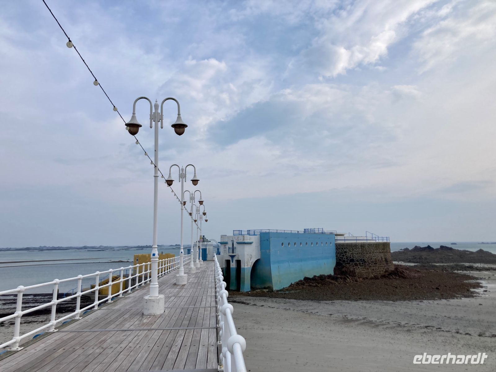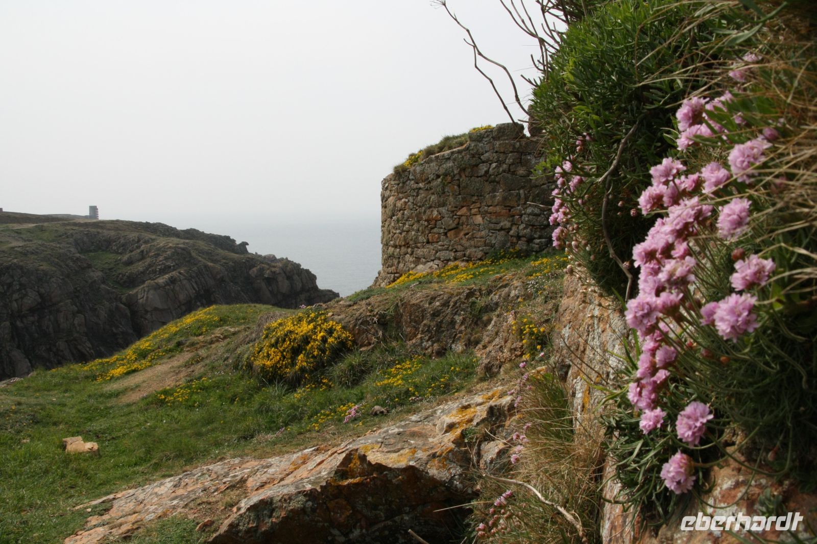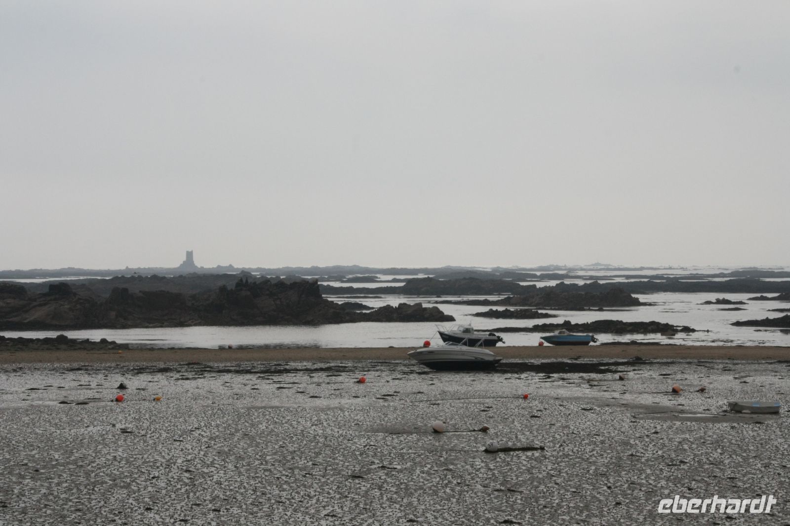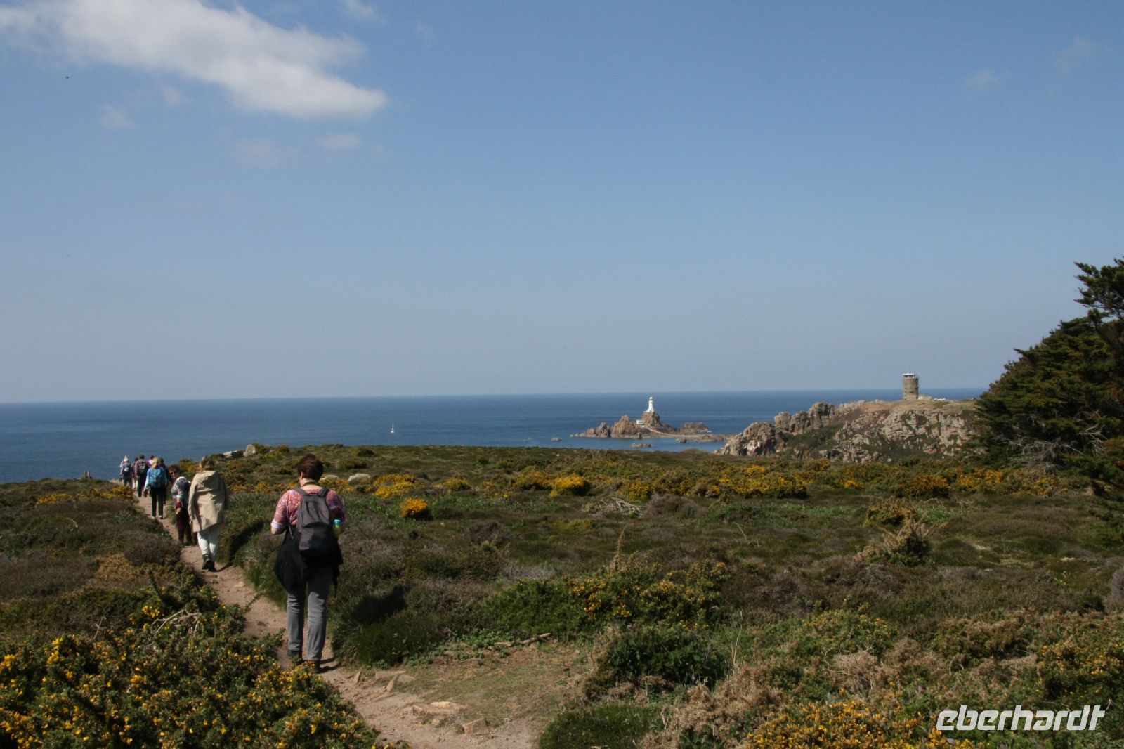 Tag 3 begann recht ungewöhnlich schon mit gellenden Sirenenton. Man sprang schnell auf im Negligé, zu retten sich samt Portmonnaie - jedoch - kein Unheil war gescheh‘n - man konnt’ noch mal zu Bett geh’n. Doch dann tagsüber ging’s mit flotten Schritten bergauf, bergab von St. Brelade am Küstenrand, bis jeder vor dem Leuchtturm stand. Etwas vor uns kam die Flut - na gut …!