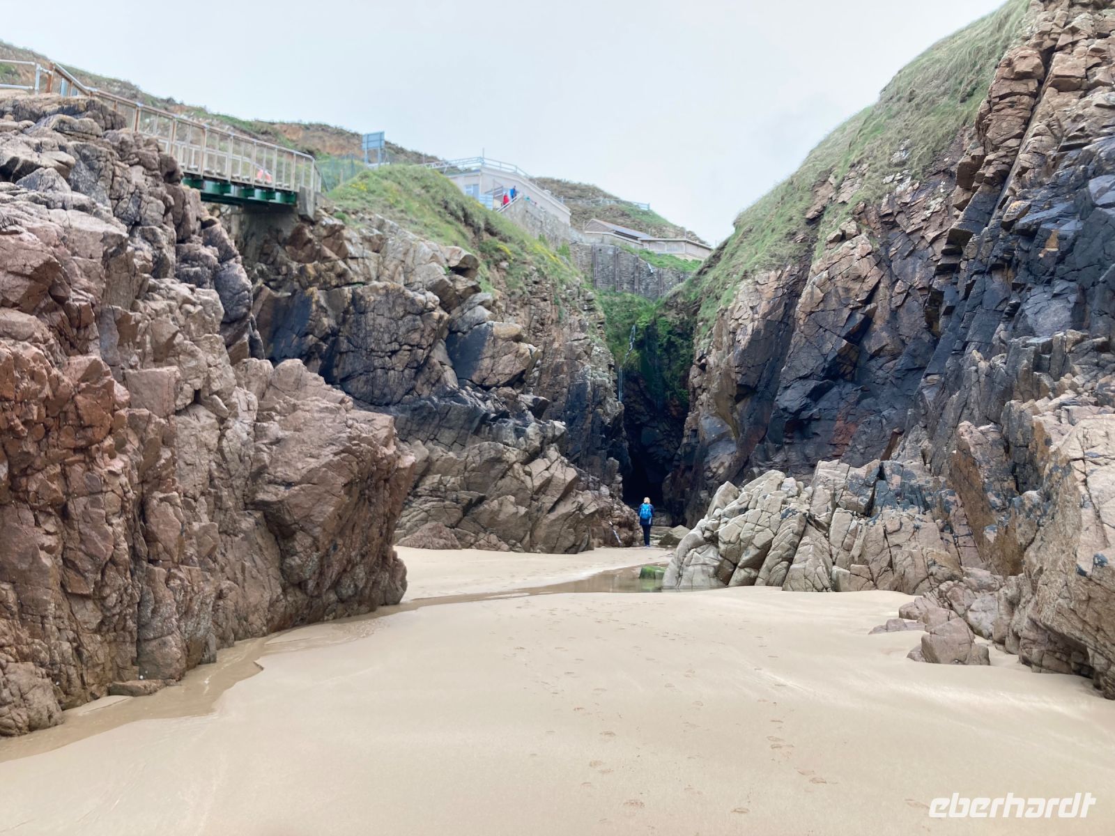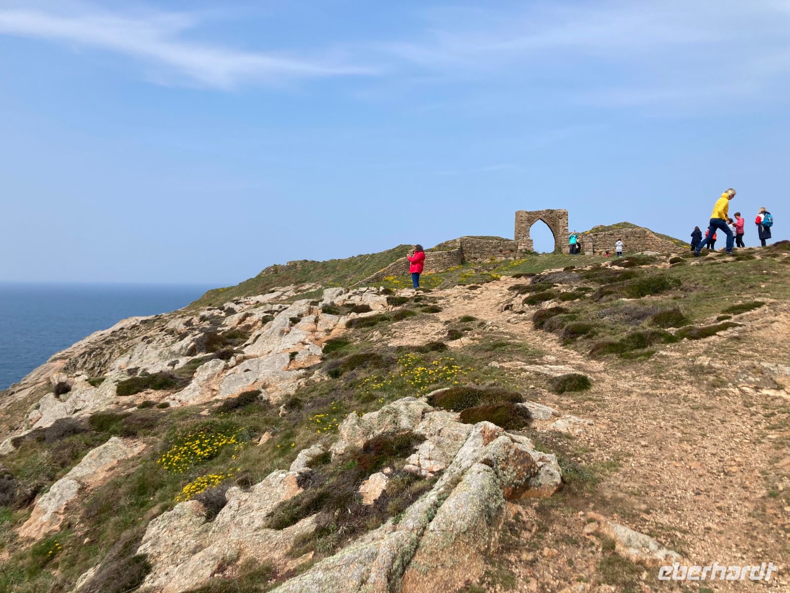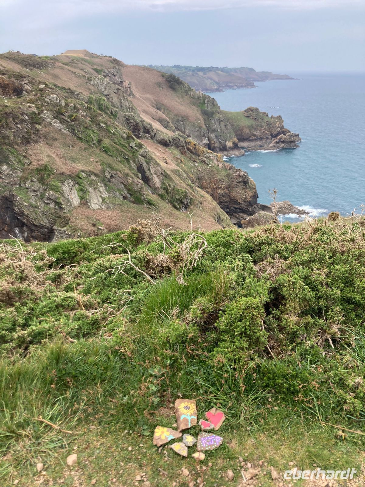 Als wir in Guernsey ankommen herrscht wieder bestes Wetter und wir starten gut gelaunt zu unserer Insel-Rundfahrt. Ein erster Stopp ist bei der Little Chapel. Diese kleine Kapelle ist reich mit Keramikmosaiken verziert und innen wunderschön ausgeleuchtet. Wir können einmal durch die Kapelle hindurchgehen und viele Fotos schießen. Anschließend reisen wir weiter an die Küste, wo wir einen Spaziergang entlang der Steilküste unternehmen.
