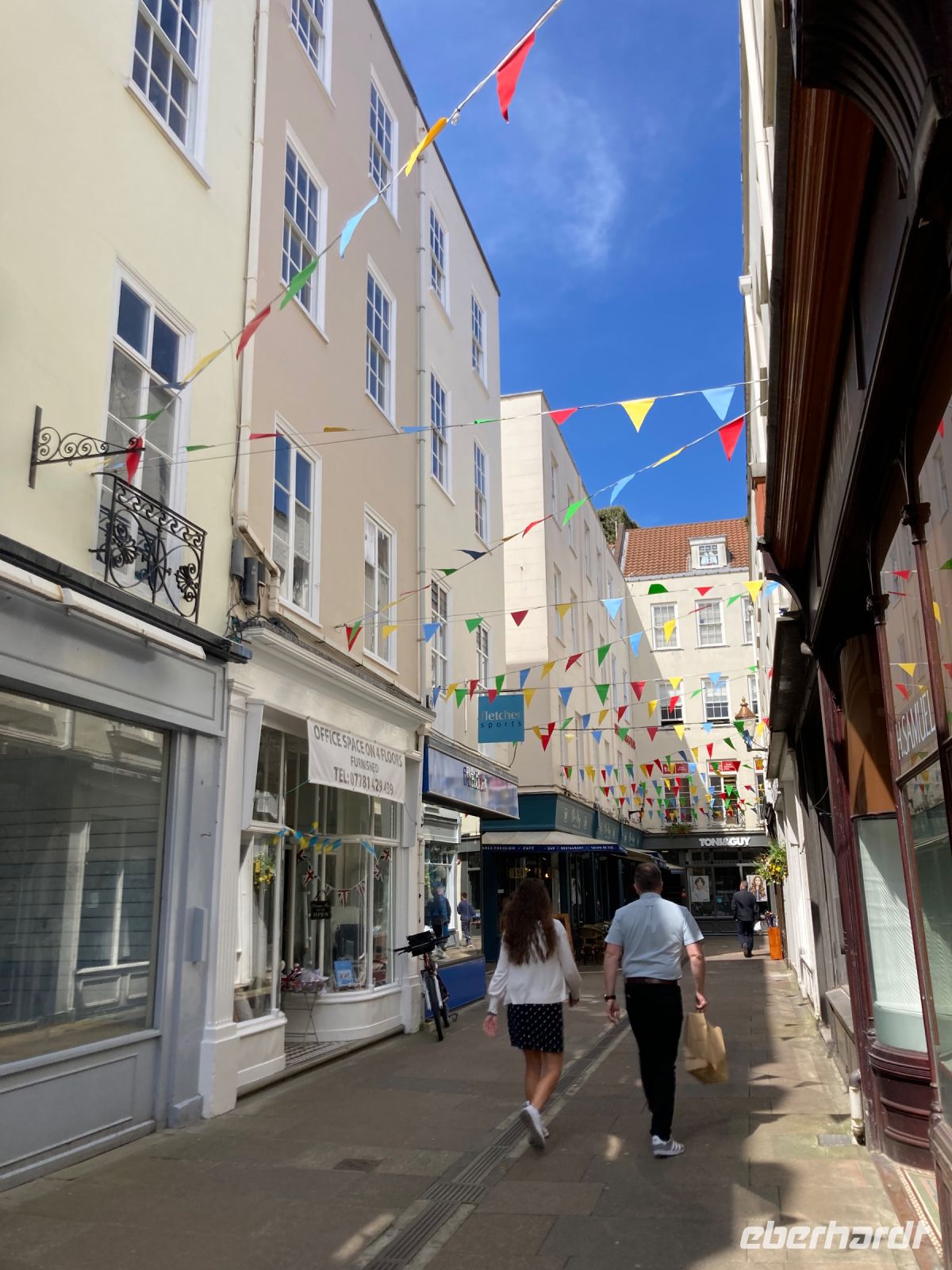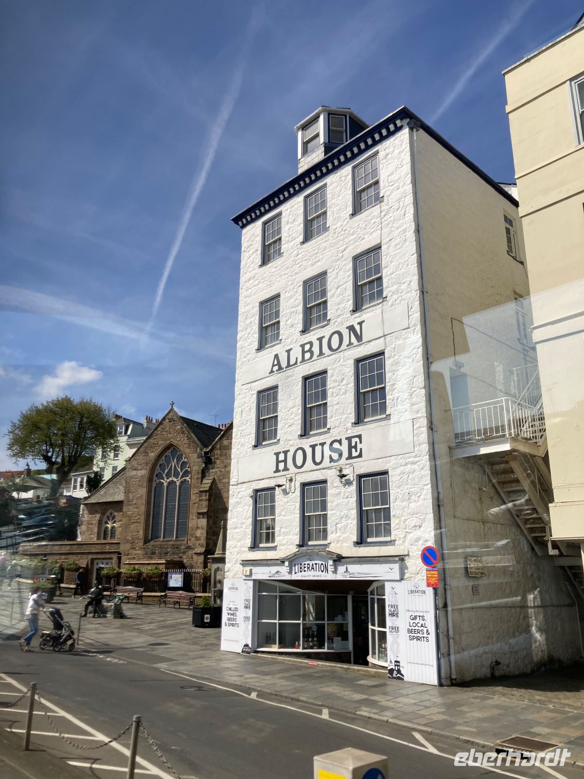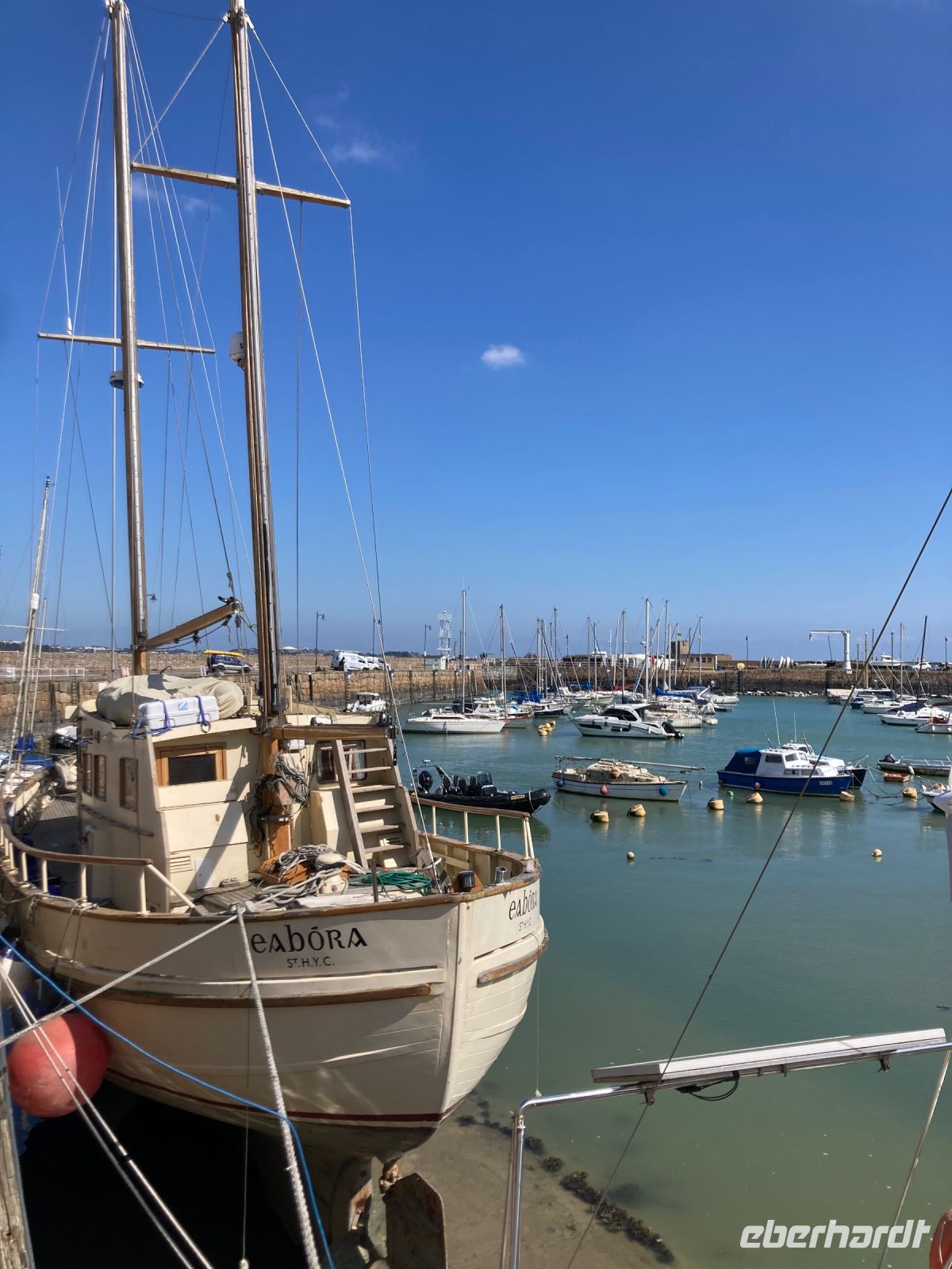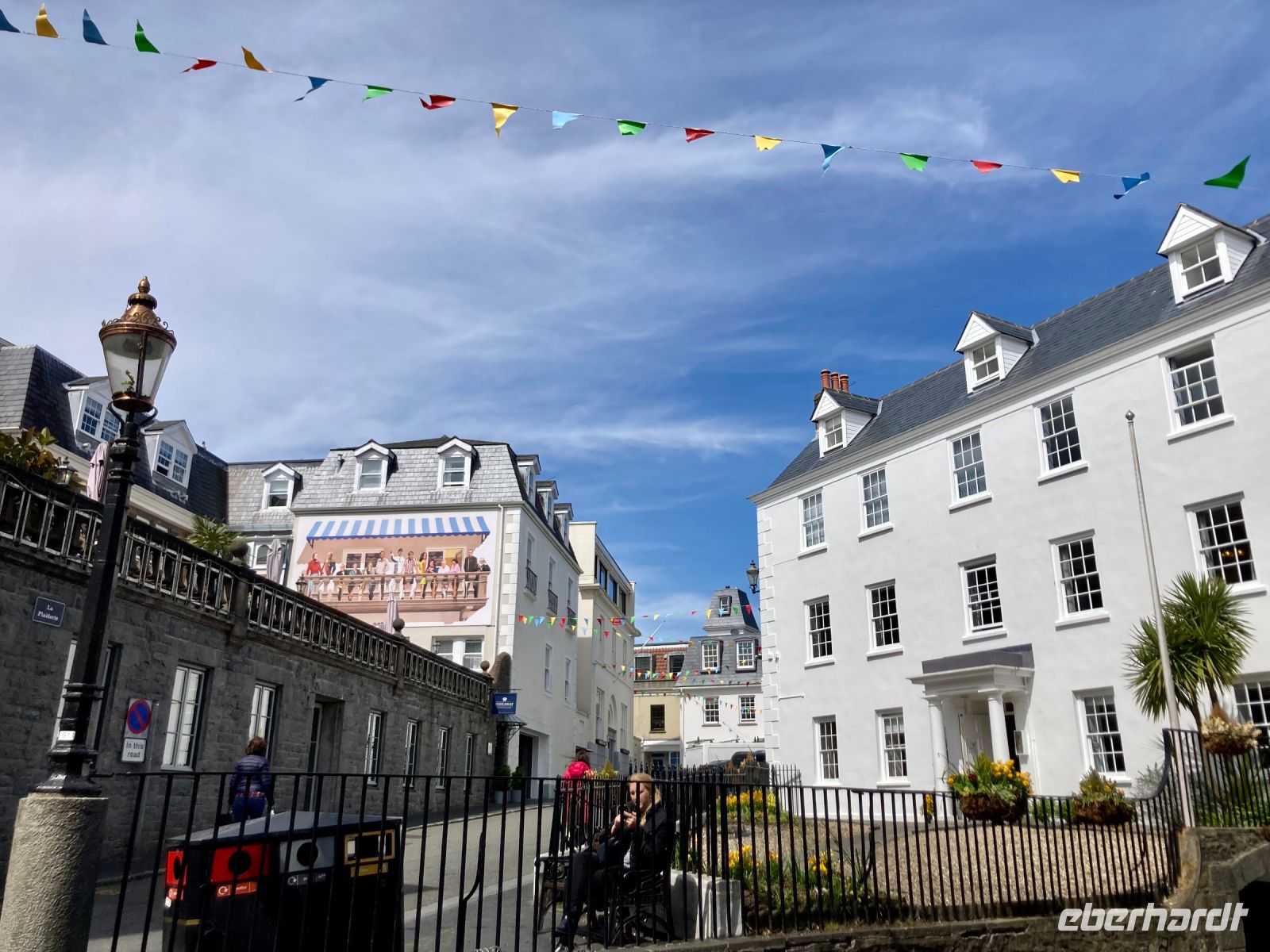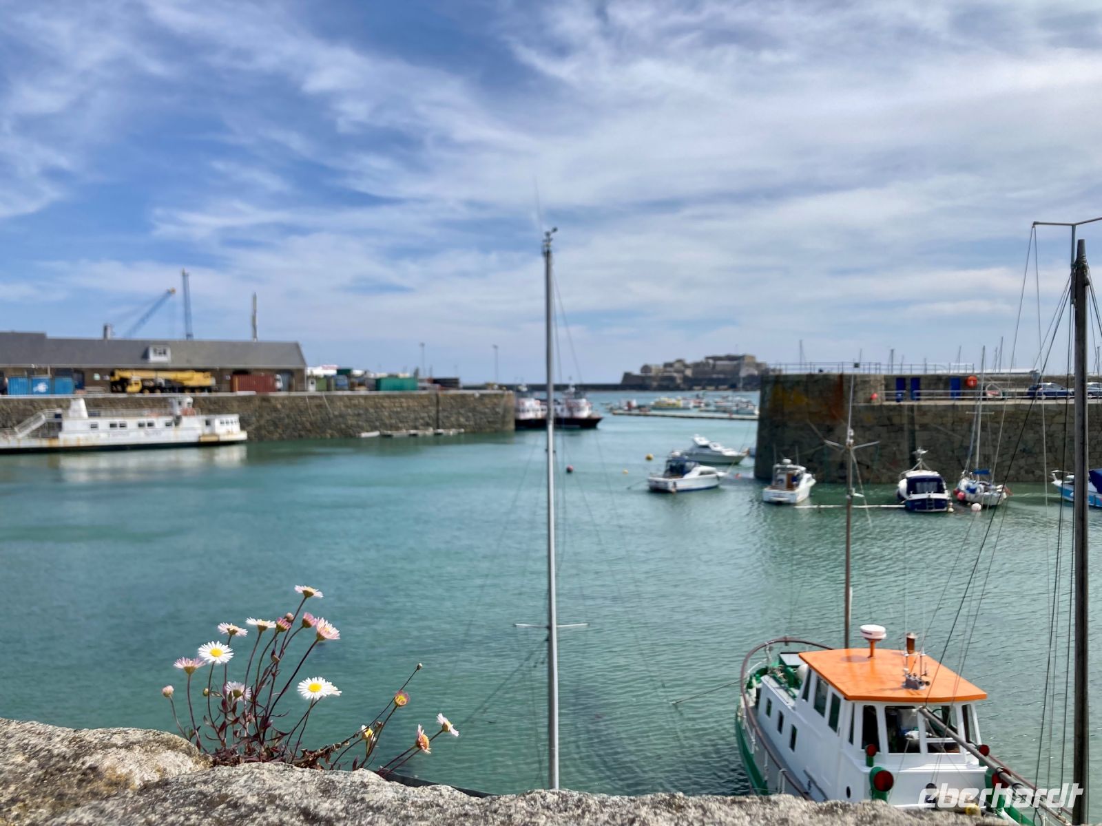 Wir fahren weiter an die Nordküste, wo wir eine kleine Kaffeepause einlegen. Am Nachmittag bleibt ca. eine Stunde Zeit in St. Peter Port, um durch die Fußgängerzone zu bummeln. Bei der Rückfahrt müssen wieder unsere Reisepässe vorgelegt werden und es dauert eine halbe Stunde bis unsere Namen mit Ein-Finger-Suchsystem eingegeben worden (und dies obwohl, eine komplette Liste vorab eingereicht wurde). Aber wir schaffen die Fähre noch und kommen gegen 16 Uhr wieder in Jersey an.