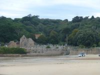 Der Strand von St. Brelade hat eine Promenade oberhalb des Strandes und ist ein echtes Strandbad. Auf dem Weg ins Hotel steigen noch einige in St. Helier aus und haben noch die Kraft für einen Stadtbummel. Gerade ist Ebbe und der breite Sandstrand vor dem Hotel lädt ein, die Schuhe auszuziehen und zum Wasser zu laufen.