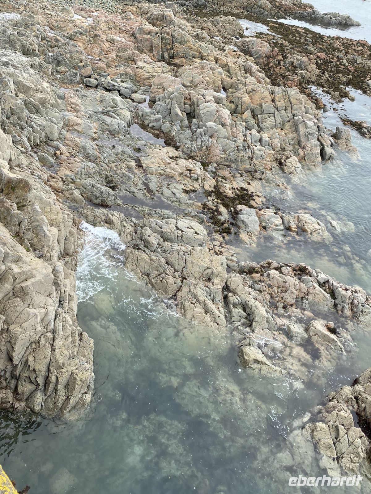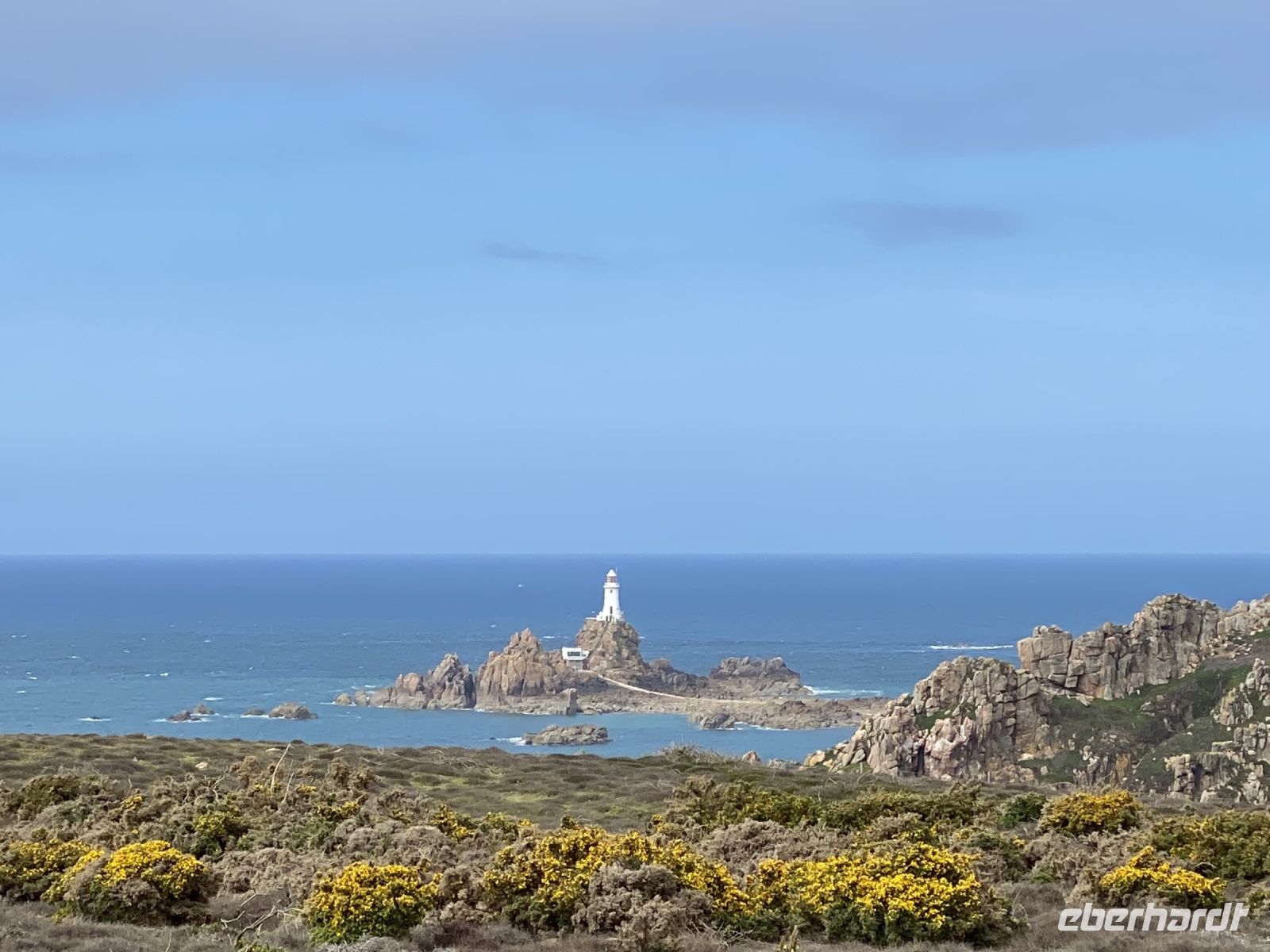 Kaum angekommen stach uns neben dem bekannten Leuchtturm und der einzigartigen Landschaft ein Eiswagen mit selbst gemachten Eis ins Auge. Natürlich konnten wir hier nicht einfach vorbei laufen. Bei Ebbe kann man den Leuchtturm La Cobiere auch per Fuß erreichen, hierzu sollte man aber dringend die Gezeiten im Auge behalten, denn auf Jersey herrschen die wahrscheinlich größten Tidenhube der Welt, mit bis zu 12 Metern Wasserstandunterschied zwischen Ebbe und Flut.
