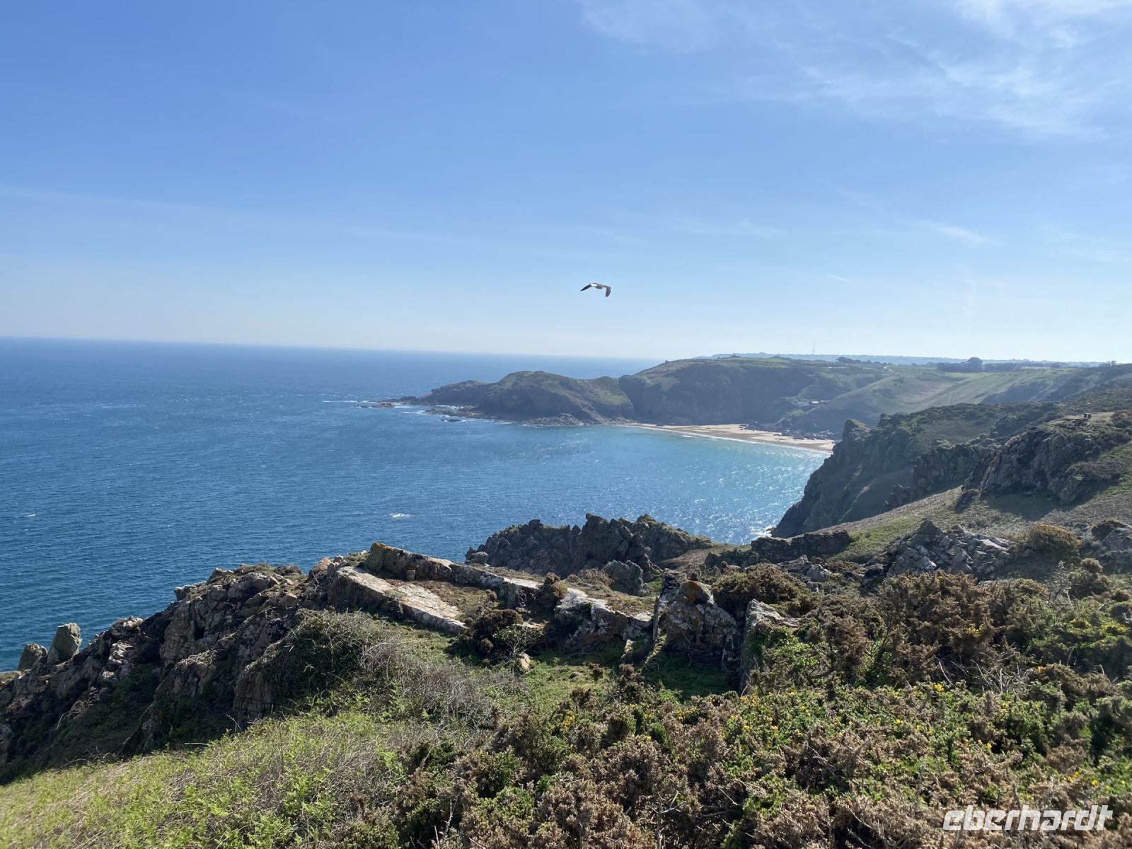 Mit der Sonne im Gepäck liefen wir entlang des Klippenpfades L’Etacq in Richtung Plemont Bay.