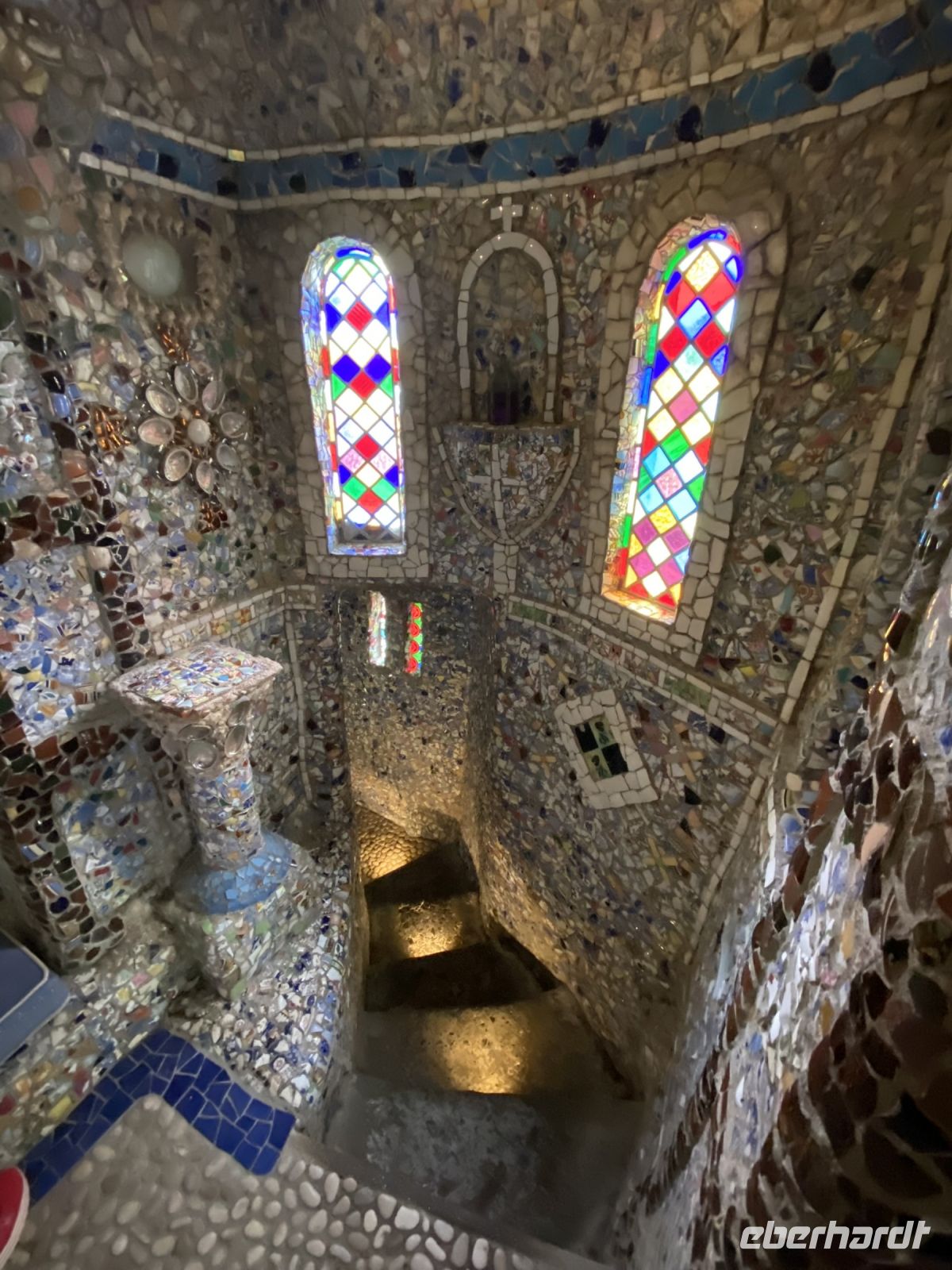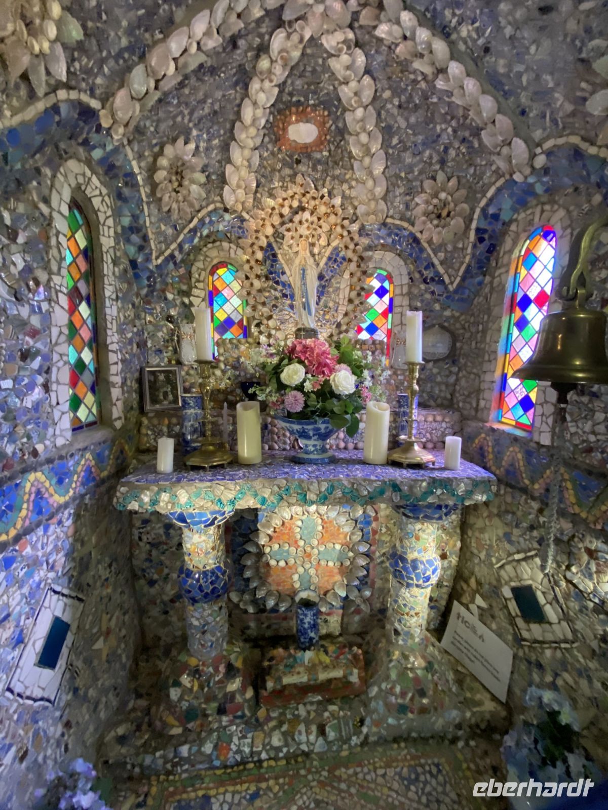 Ordensbruder Deodat verzierte die Kirche innen und außen liebevoll mit Porzellan- und Glasscherben sowie Muscheln - beeindruckend, wenn auch vielleicht etwas kitschig.