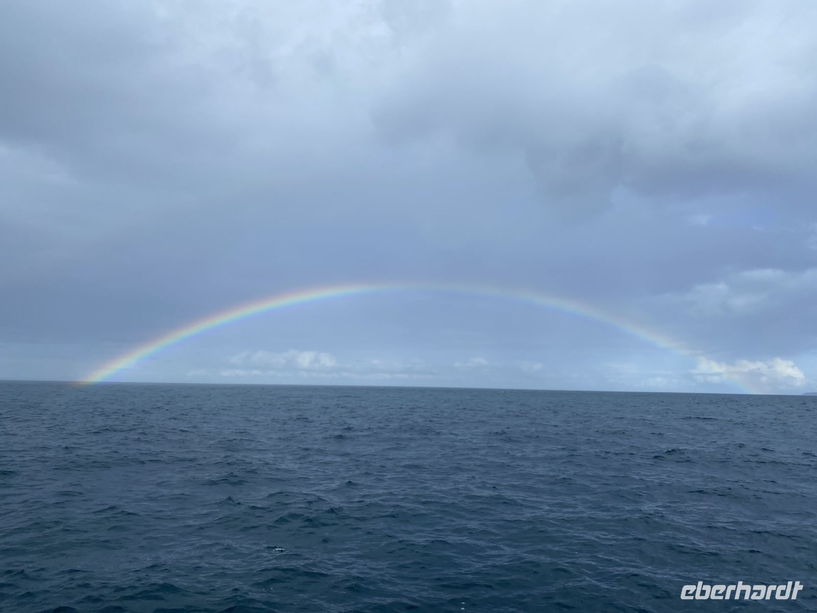 Die Rückfahrt auf der Fähre war ein wenig turbulent, da das Wetter umgeschlagen hat. Es regnete kurzzeitig und man konnte deutlich den Wellengang spüren. Nach dem sich die Sonne wieder zeigte, konnten wir sogar einen Regenbogen am Horizont erblicken.
