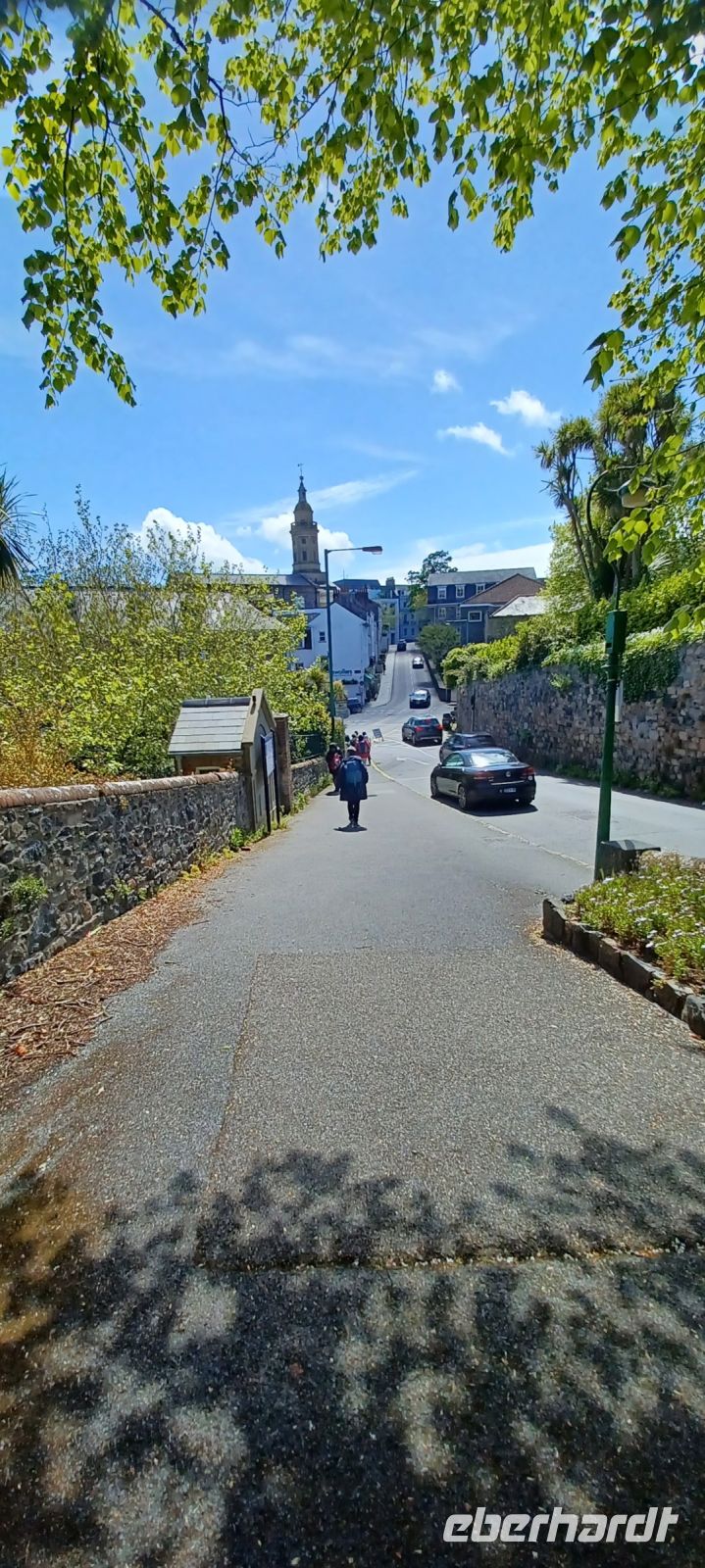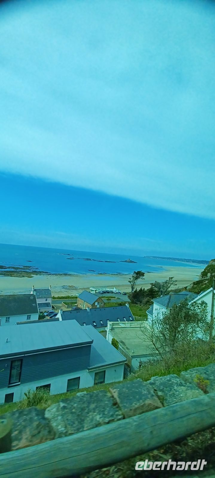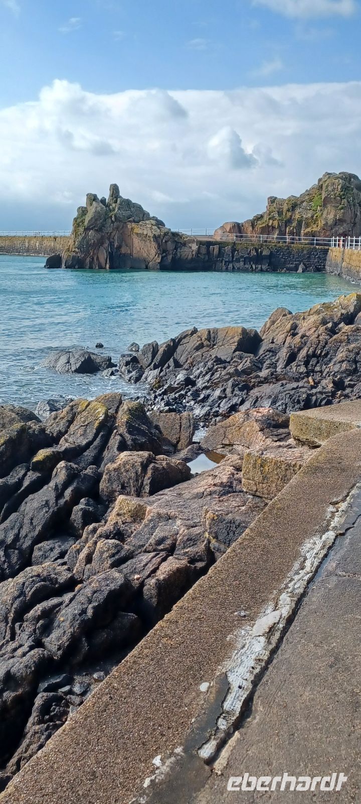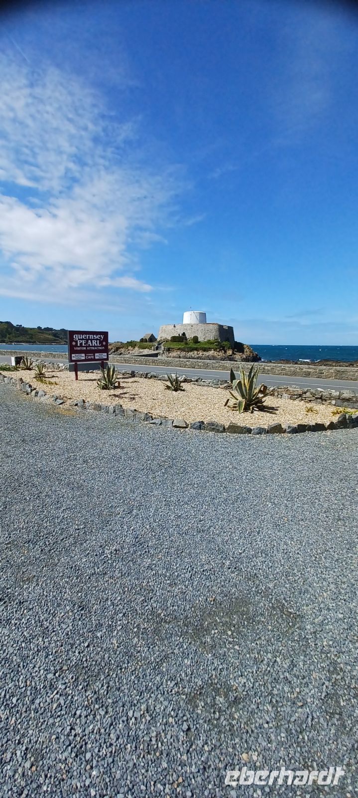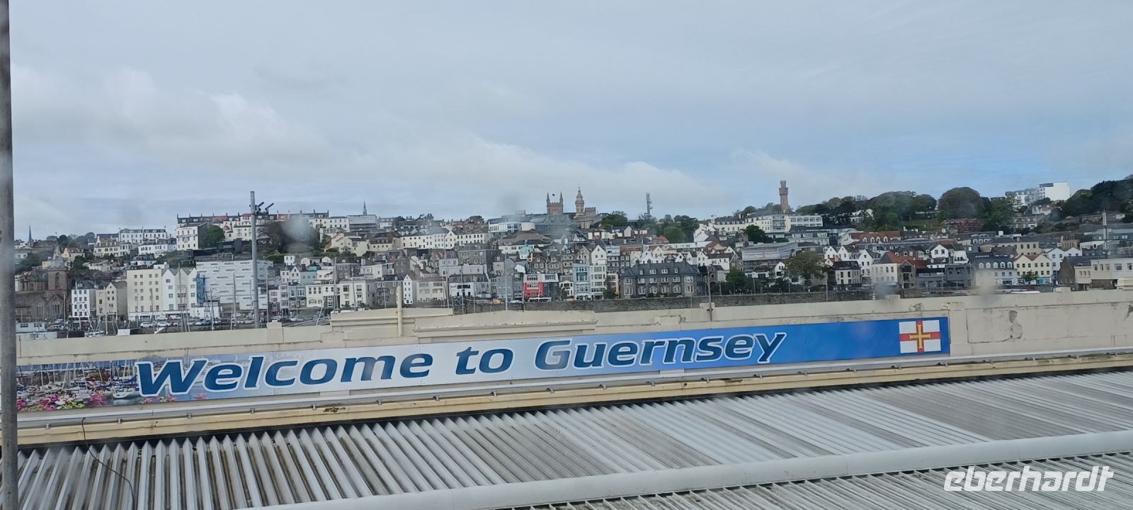 Früh am Morgen lässt sich die Sonne endlich wieder blicken, aber es ist ziemlich windig als Jane uns zum Tagesausflug nach Guernsey abholt. Gemeinsam mit uns nehmen viele Menschen die Fähre zur zweitgrößten Kanalinsel. Leichte Wellen verursachen ein Schaukeln des Schiffes, sodass manche Gäste zur Reling gehen, um frische Luft zu schnappen. In Guernsey angekommen, wartet Gaby bei strahlendem Sonnenschein auf uns. Magnus wird den Bus fahren, während Gaby die Schönheiten der Insel zeigt und erklärt. Fotostopps ermöglichen wiederum zahlreiche Fotoaufnahmen. Die Insel erscheint uns ganz anders als Jersey. Jedoch können wir nicht sagen, welche uns besser gefällt. Jede hat ihren Reiz. Wir besuchen Little Chapel und bestaunen das kleine Kunstwerk, das ein Mann aus vielen kleinen bunten Ton-und Glasscherben erbaut hat. Die kleine Kirche finden alle Gäste beeindruckend. Viele kurze Fotostopps bieten tolle Ausblicke auf das Meer und die wunderschöne Küste. Wir machen einen kleinen Spaziergang durch den Park, der nach Victor Hugo benannt ist. Der Schriftsteller lebte auf Jersey und Guernsey im Exil. Die geführte Tour endet im Stadtzentrum von St. Peter Port. Hier hat jeder noch Zeit für einen kleinen Einkaufsbummel oder eine Rast in einem der hübschen Restaurants. Zurück im Hafengebiet verabschieden wir uns von der örtlichen Reiseleiterin und nehmen wieder die Fähre zurück nach Jersey. Hier erwartet uns schon wieder Jane, die uns zurück zum Hotel fährt. Heute werden wir nicht im Hotel essen, sondern laufen zum nahegelegenen Pub „White Horse“. Am Vorabend haben wir bereits unsere Speisebestellung aufgegeben, sodass wir gar nicht lange auf diese warten müssen. Wir genießen das schmackhafte Essen, trinken dazu Bier oder Wein und lachen sehr viel. Ein wunderschöner Tag liegt hinter uns.