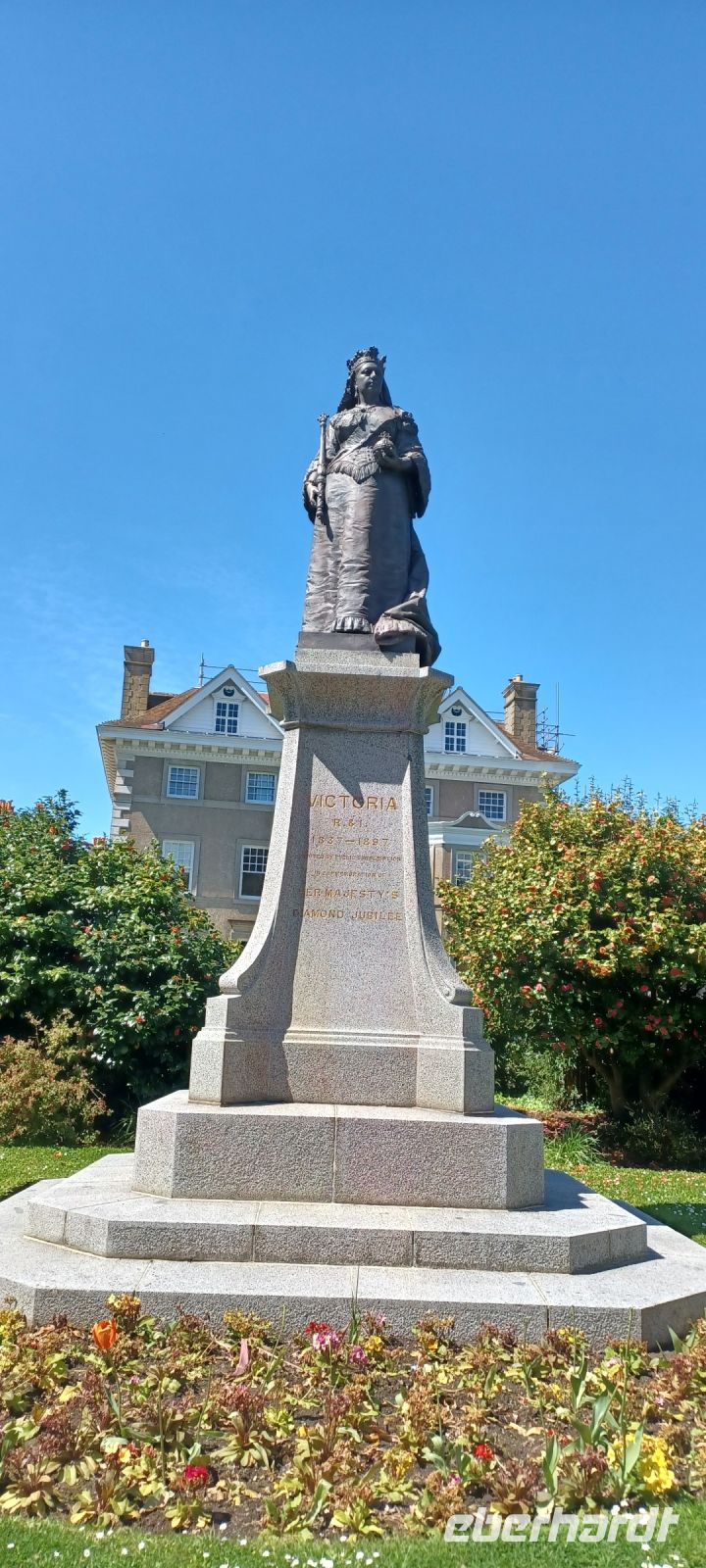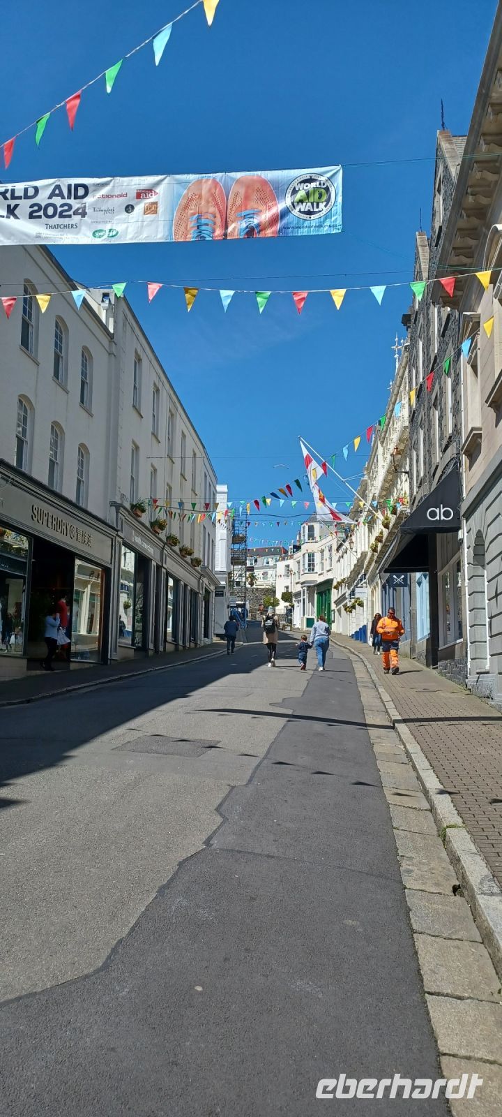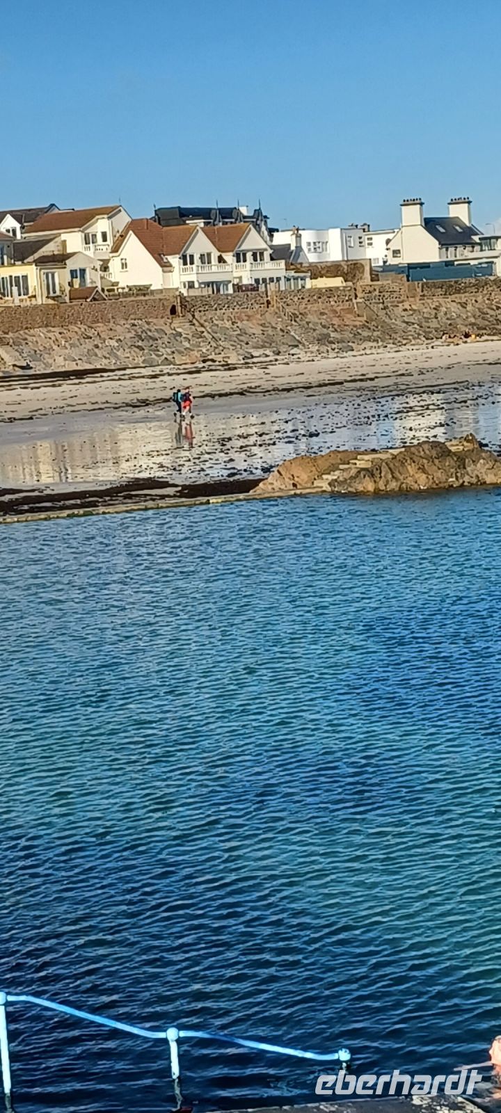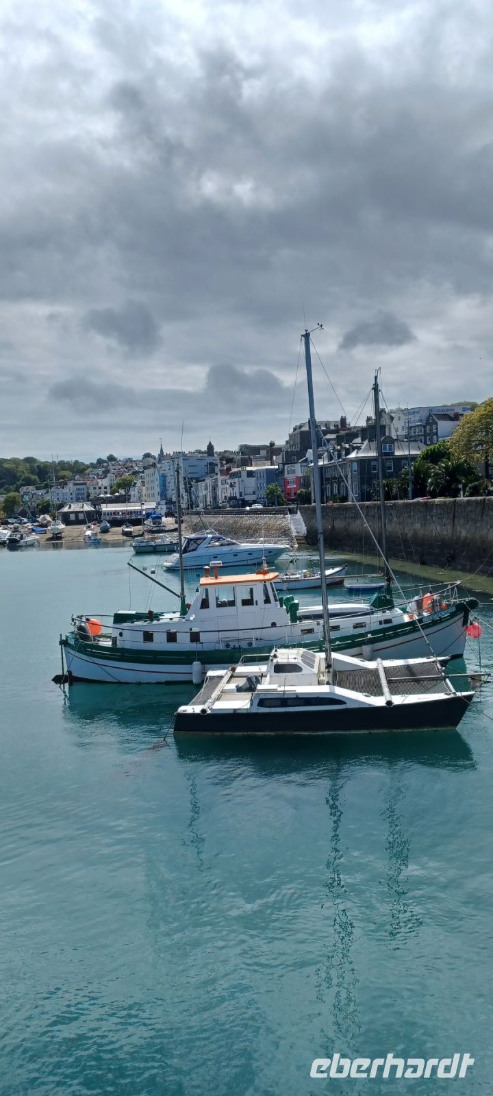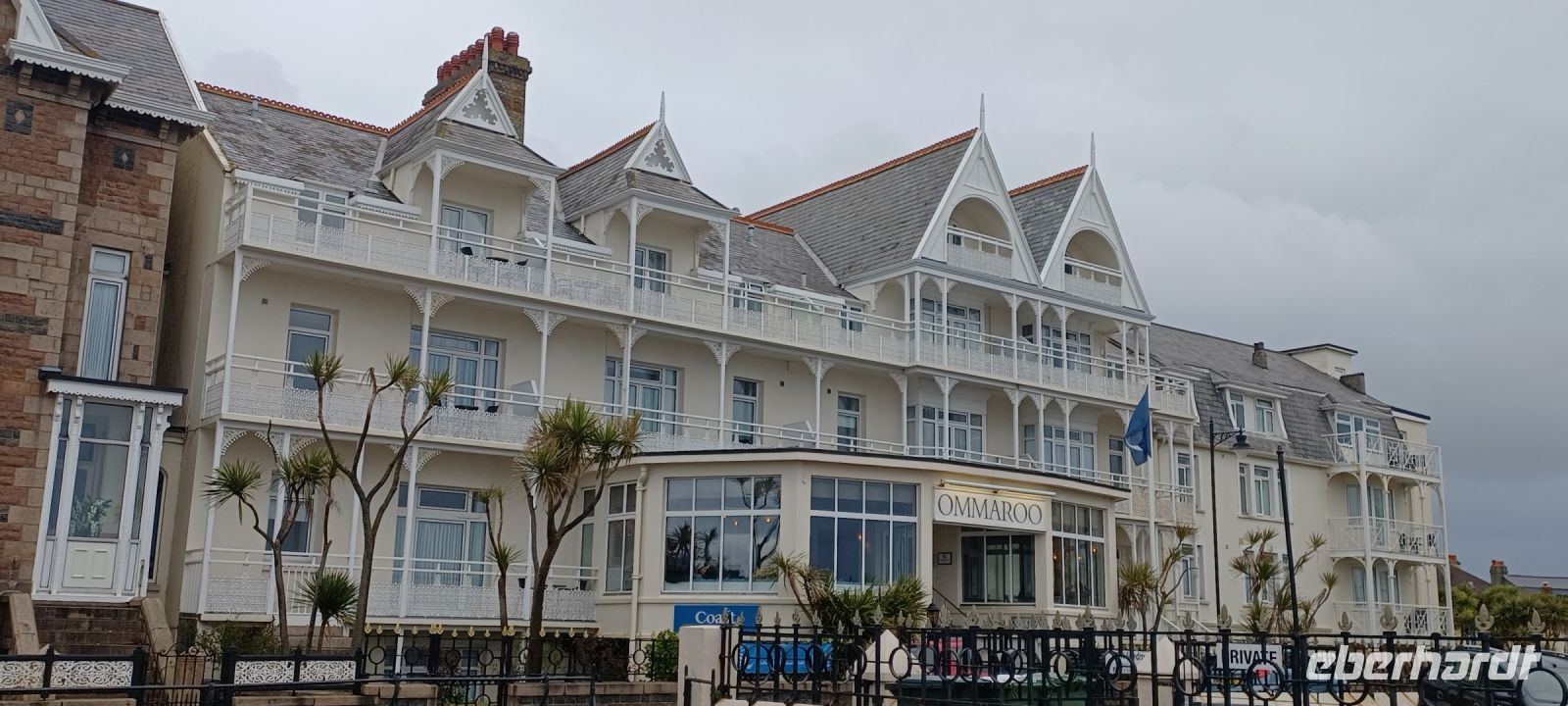 Früh am Morgen lässt sich die Sonne endlich wieder blicken, aber es ist ziemlich windig als Jane uns zum Tagesausflug nach Guernsey abholt. Gemeinsam mit uns nehmen viele Menschen die Fähre zur zweitgrößten Kanalinsel. Leichte Wellen verursachen ein Schaukeln des Schiffes, sodass manche Gäste zur Reling gehen, um frische Luft zu schnappen. In Guernsey angekommen, wartet Gaby bei strahlendem Sonnenschein auf uns. Magnus wird den Bus fahren, während Gaby die Schönheiten der Insel zeigt und erklärt. Fotostopps ermöglichen wiederum zahlreiche Fotoaufnahmen. Die Insel erscheint uns ganz anders als Jersey. Jedoch können wir nicht sagen, welche uns besser gefällt. Jede hat ihren Reiz. Wir besuchen Little Chapel und bestaunen das kleine Kunstwerk, das ein Mann aus vielen kleinen bunten Ton-und Glasscherben erbaut hat. Die kleine Kirche finden alle Gäste beeindruckend. Viele kurze Fotostopps bieten tolle Ausblicke auf das Meer und die wunderschöne Küste. Wir machen einen kleinen Spaziergang durch den Park, der nach Victor Hugo benannt ist. Der Schriftsteller lebte auf Jersey und Guernsey im Exil. Die geführte Tour endet im Stadtzentrum von St. Peter Port. Hier hat jeder noch Zeit für einen kleinen Einkaufsbummel oder eine Rast in einem der hübschen Restaurants. Zurück im Hafengebiet verabschieden wir uns von der örtlichen Reiseleiterin und nehmen wieder die Fähre zurück nach Jersey. Hier erwartet uns schon wieder Jane, die uns zurück zum Hotel fährt. Heute werden wir nicht im Hotel essen, sondern laufen zum nahegelegenen Pub „White Horse“. Am Vorabend haben wir bereits unsere Speisebestellung aufgegeben, sodass wir gar nicht lange auf diese warten müssen. Wir genießen das schmackhafte Essen, trinken dazu Bier oder Wein und lachen sehr viel. Ein wunderschöner Tag liegt hinter uns.