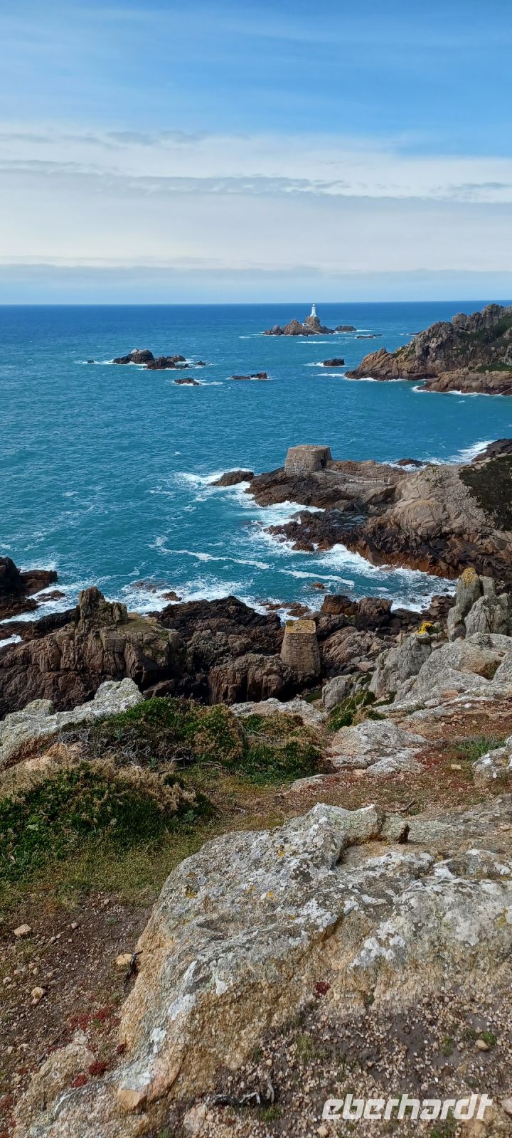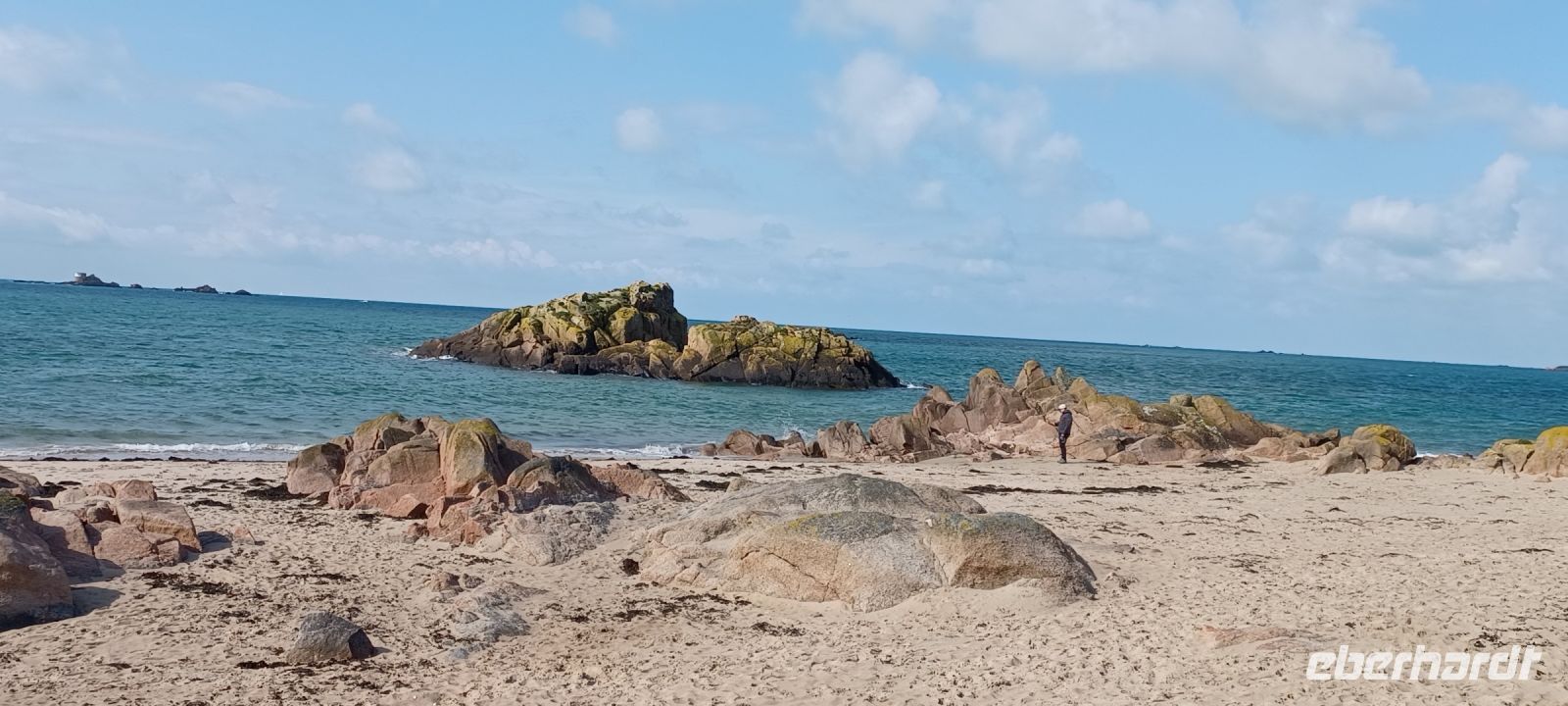 Voller Erwartungen treffen wir uns nach dem Frühstück mit Heidi, der Reiseleiterin auf Jersey, zur Inselrundfahrt. Wir lernen auch Vince kennen, der den Bus durch die engen Straßen sicher steuert. Wir sind in guter Stimmung, die Sonne lacht, der Himmel zeigt sich in den schönsten Blautönen, die er bieten kann. Es geht los. Viele Fotostopps ermöglichen es uns, die Schönheit der Insel im Bild festzuhalten. Wir laufen zum Strand bei La Rocque, wo wir die ersten eigenartig geformten Muscheln sammeln. Später sehen wir das wunderhübsche mit Blumen geschmückte Ortszentrum am Gorey Castle. Entlang geht es an der St. Catherine`s Bay und der Rozel Bay bis hin zur Boule Bay. Tolle Aussichten verlocken zu zahlreichen Fotostopps. Das Mittagessen nehmen wir im hübschen Restaurant „Le Fontaines Taverne“ ein. Gestärkt setzen wir unsere Fahrt durch die 12 Gemeinden der Insel fort. Schließlich geht es im Westen entlang der St. Queen`s Bay zum Cobiere Leuchtturm, der auch das Ziel der Wandergruppe an den folgenden Tagen sein wird. Nach einem kurzen Halt an der Brelades Bay fahren wir durch St. Aubin zurück zu unserem Hotel, wo wir uns dann zum täglichen Treffen versammeln. Wir tauschen die Erlebnisse des Tages aus und sprechen über den folgenden Urlaubstag. Danach essen wir gemeinsam im Restaurant. Das 3-Gänge-Menü haben wir am Tag zuvor aussuchen und bestellen können. Allen schmeckt es immer hervorragend. Der Tag neigt sich dem Ende zu. Einige Gäste wollen noch einen Abendspaziergang machen oder ein Glas Wein in der Lobby trinken.