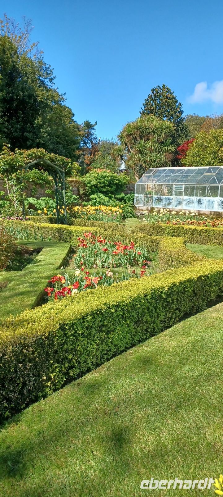 Wieder begrüßt uns die Sonne bereits nach dem Frühstück und bleibt unsere Begleiterin den ganzen Tag. Jane und Ernst begrüßen uns zur Gartentour auf Jersey. Zuerst geht es zur Gemeinde St. Lawrence. Hier gehen wir im ersten Privatgarten spazieren, bestaunen das prächtige Herrschaftshaus, den Blumen- und Gemüsegarten, die großen alten Bäume, den weichen, grünen, englischen Rasen. Zum Schluss zeigt uns der Besitzer ein Becken mit vielen, großen und unterschiedlich farbigen Kois. Einige Gäste staunen, weil sie diese Fische zum ersten Mal sehen. Ein bisschen neidisch blicken wir nochmal auf das schöne Anwesen und setzen unsere Gartentour fort. Der zweite Garten ist ganz anders. Wir können die beiden Gärten nicht vergleichen. Die Besitzerin zeigt uns ihr Anwesen, das alte Haus bedeckt mit Blauregen sieht wunderschön aus. Wir laufen durch die Gartenanlage mit viel Buchsbaumhecken und großen alten Bäumen. Ein Hahn und viele Hühner erinnern an einen kleinen Bauernhof. Das nahegelegene Feld ist verpachtet und dient als Weide für die hübschen Jersey Cows und ein Feld wird zum Anbau der Jersey Royal Kartoffeln genutzt. Stolz zeigt uns die Besitzerin des Anwesens ihre selbstgemalten Bilder, die sie auch zum Verkauf anbietet. Wir bedanken uns und fahren „Portelet Inn“, wo wir unsere Mittagspause machen. Danach besuchen wir die Eric Young Orchid Foundation. Es ist ein einzigartiges Zentrum, das sich der Vielzahl der Orchideenarten widmet. Wir staunen, riechen, suchen Fotomotive mit und ohne uns und den wundschönen Orchideen. Nach so vielen tollen Eindrücken werden wir noch zur Teatime mit dem typischen Cream Tea und Scones in einem schönen Gartenzentrum überrascht. Die Scones und die frische Cream sind phantastisch. Danach geht es zurück zum Hotel, wo wir jeder die Freizeit individuell gestaltet bevor es das letzte Mal zum gemeinsamen Dinner ins Hotelrestaurant geht. Viele machen noch einen kleinen Abendspaziergang und lassen den letzten Urlaubstag bei einem Glas Wein ausklingen.