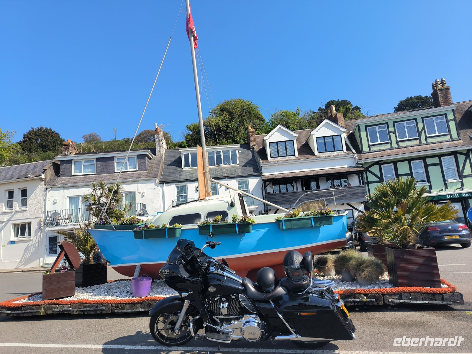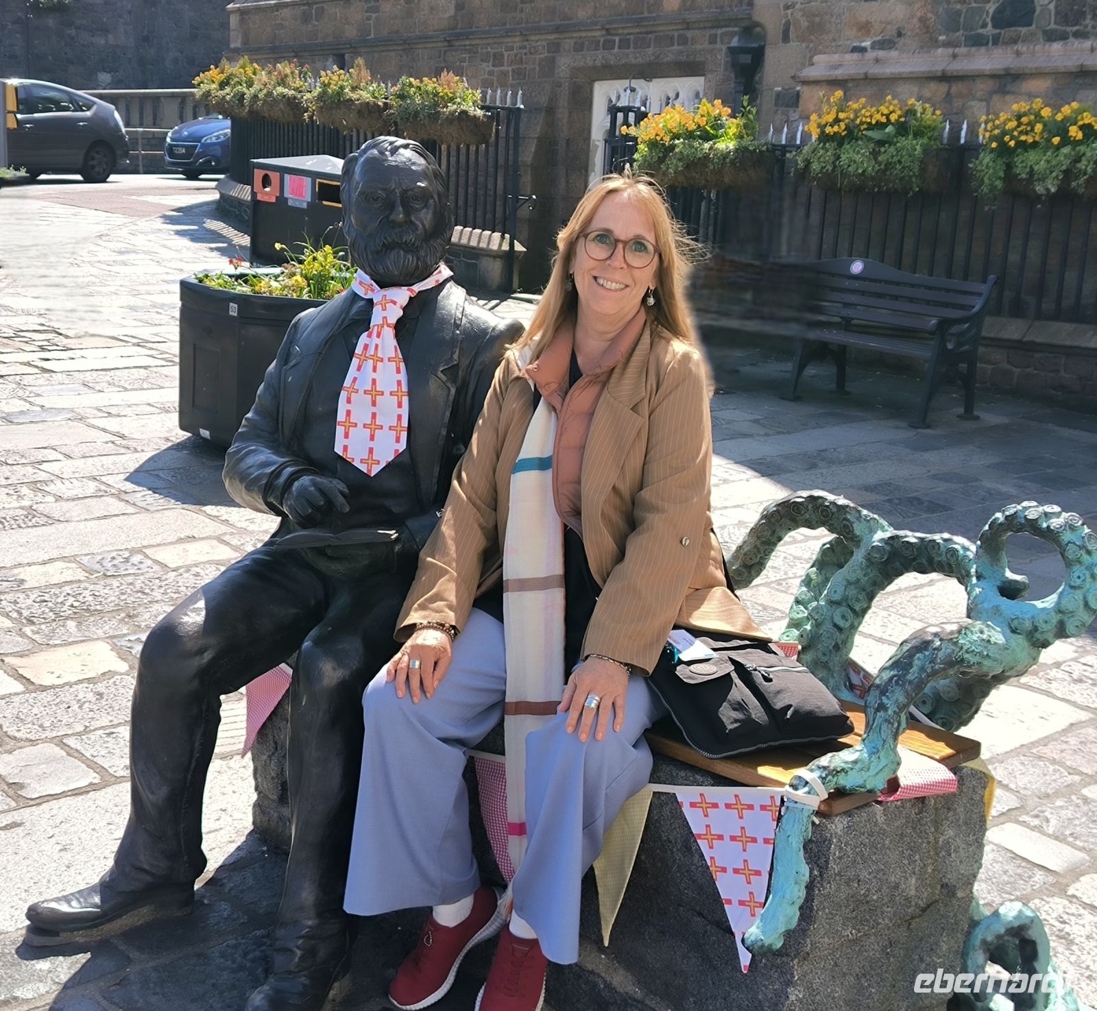 Danach müssen wir nur noch begab gehen. Durch die Candie Gardens, wo wir die Statuen von Queen Victoria und Victor Hugo sehen, spazieren wir in die hübsche Hafenstadt St. Peter Port. Am Pier verabschiedet sich Ken und der Bus bringt uns den kurzen Weg zurück zum Flughafen.