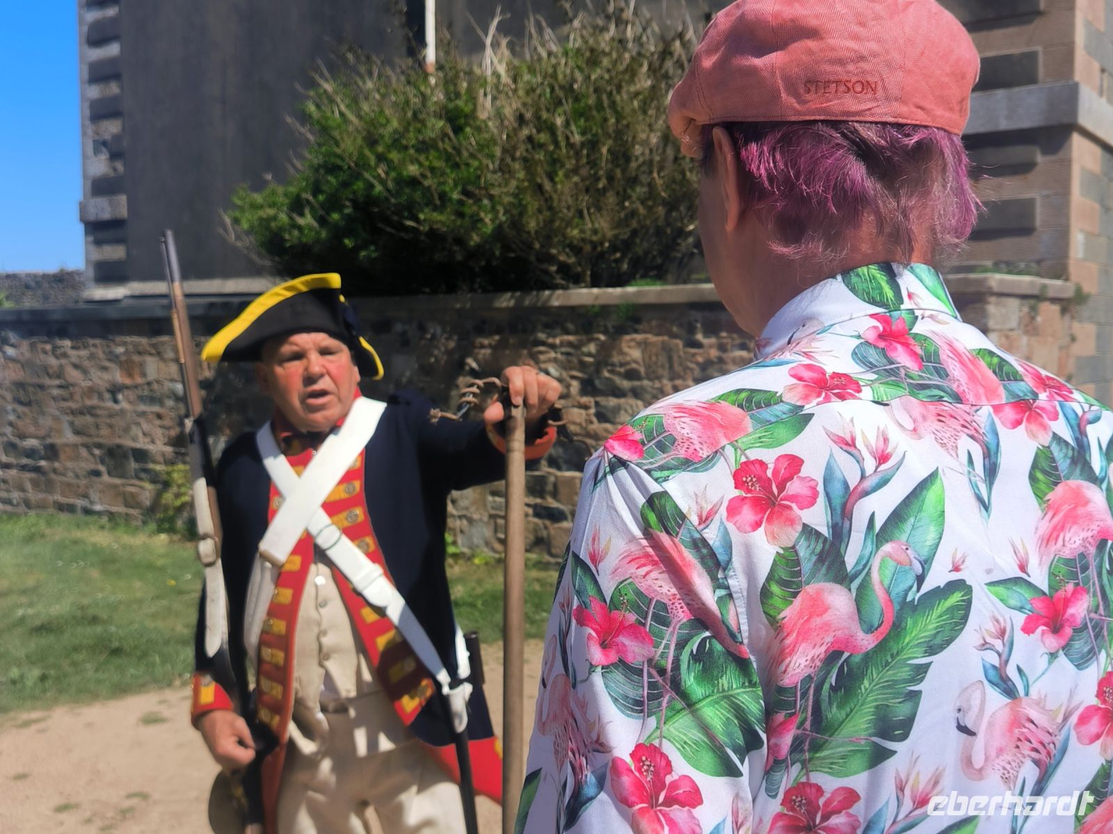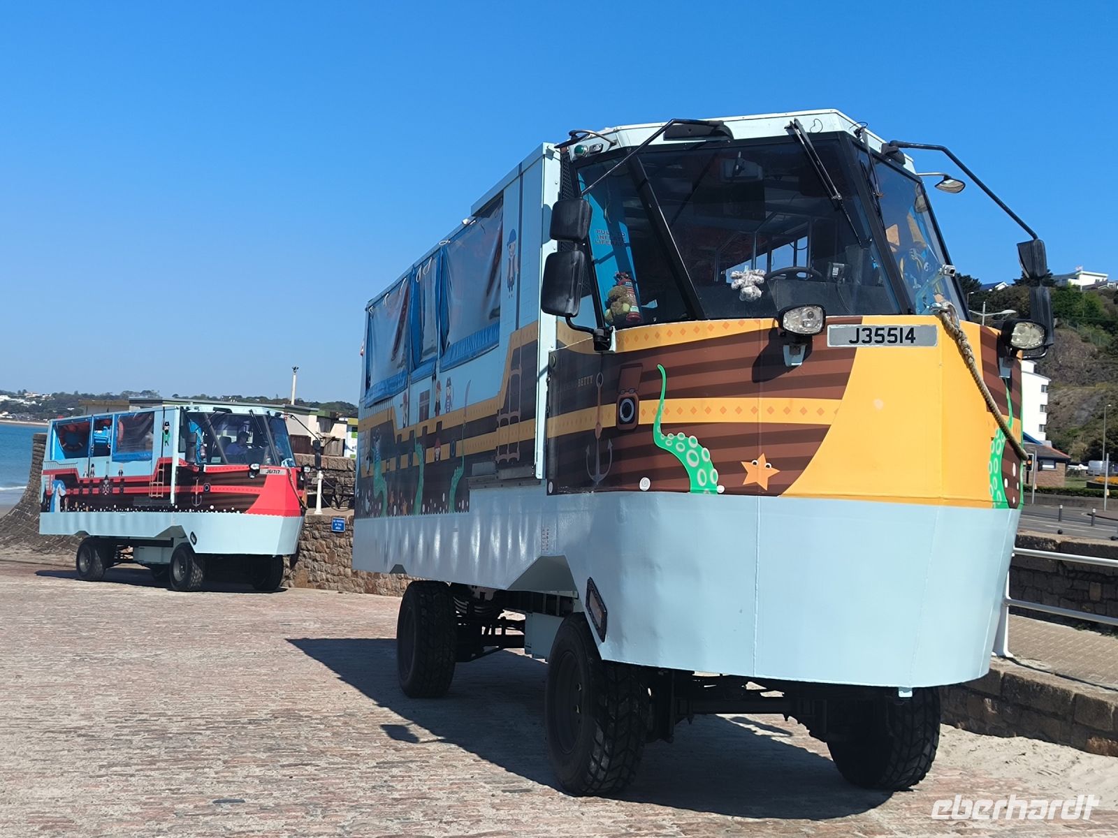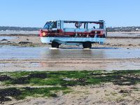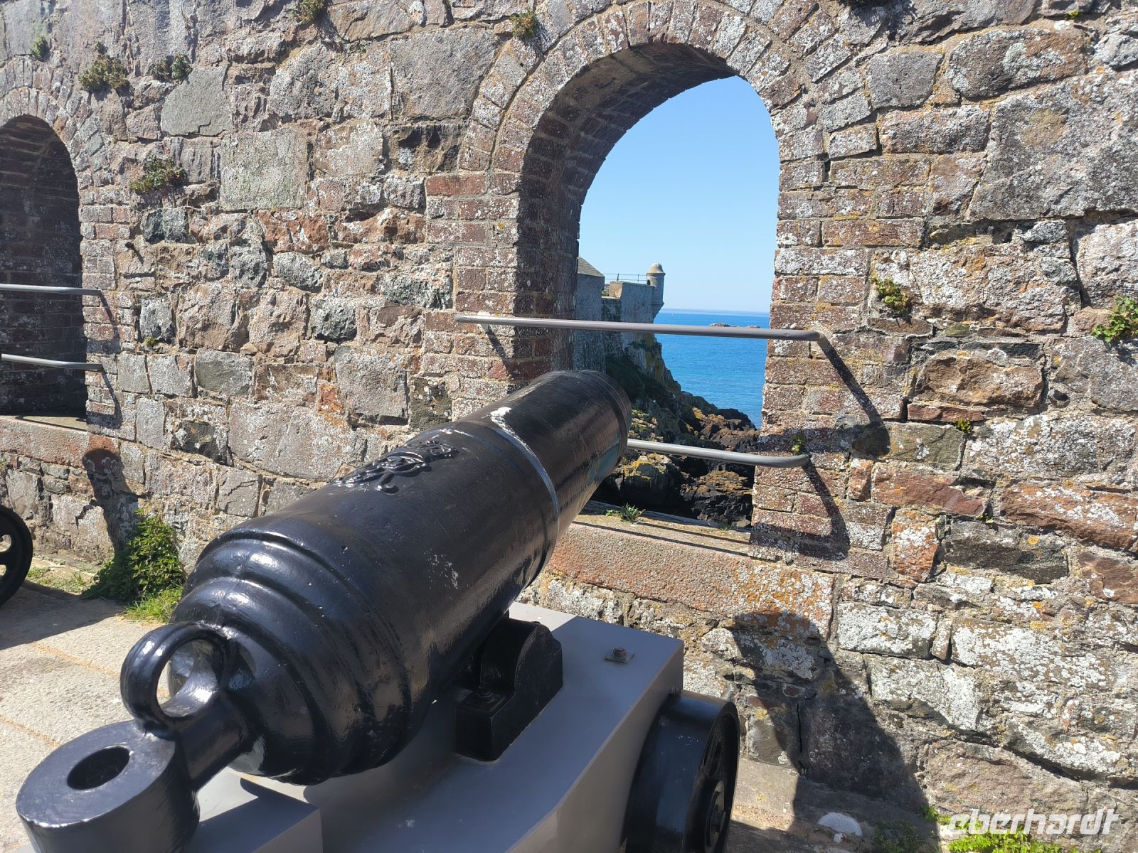 Der Tag heute steht zur freien Verfügung, aber wir folgen dem Vorschlag, die Festung zu besuchen, die seit dem 16. Jahrhundert den Ort beschützt und einen sicheren Ankerplatz für Handelsschiffe bot. Bei Flut erreichen wir die Burg etwas abenteuerlich mit dem Amphibienfahrzeug, einem schwimmenden Bus sozusagen. Wir erkunden das weitläufige Gelände mit Kanonen, Kasernen, Gräben, Türmen und Grünanlagen. Von oben haben wir eine phantastische Aussicht über die Bucht und zur Stadt. 12 Uhr mittags bekommen wir eine unterhaltsame Unterweisung in die Handhabung der Musketen und Kanonen und dürfen auch selbst das Regiment spielen. Nun haben wir uns eine Tasse Kaffee im Burggarten wirklich verdient. Inzwischen hat sich das Wasser wieder verzogen und bei Ebbe können wir gemütlich und mit trockenen Füßen durch das Watt zurück zur Stadt spazieren. Hier warten die Markthalle, nette Geschäfte und Lokale sowie das Jersey-Museum auf unseren Besuch. Die Wege trennen sich und wir erobern individuell den schönen Ort. Einige sind sogar so mutig, dass sie trotz frischer 10 Grad Wassertemperatur den Meerespool vor unserem Hotel ausprobieren.