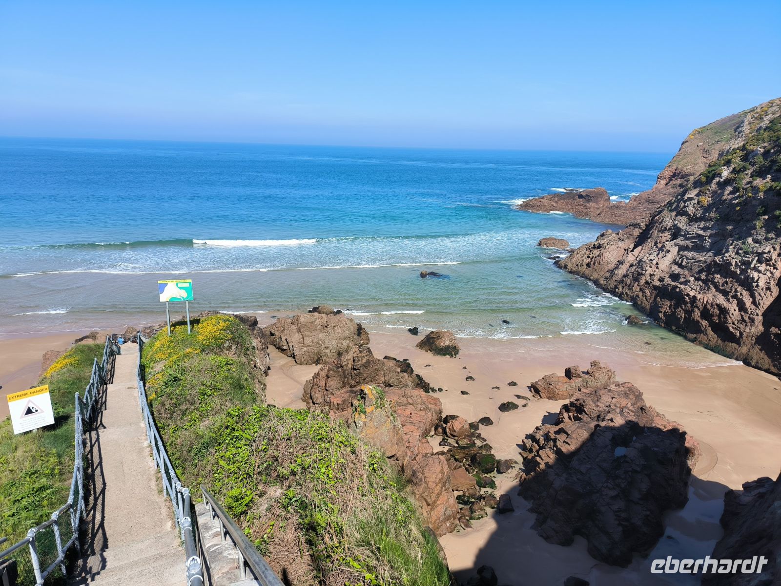 Die Westküste ist ein Surferparadies und es ist deutlich windiger, als wir am Corbiere Leuchtturm unser erstes, leckeres Jersey Eis probieren. Auch hier sind die deutschen Bausünden aus der Zeit der Besatzung im 2. Weltkrieg sehr präsent.
