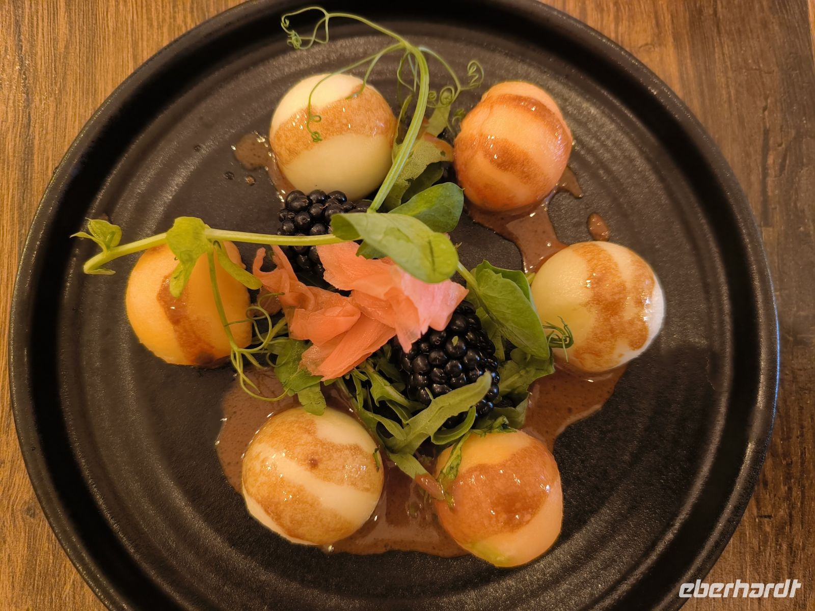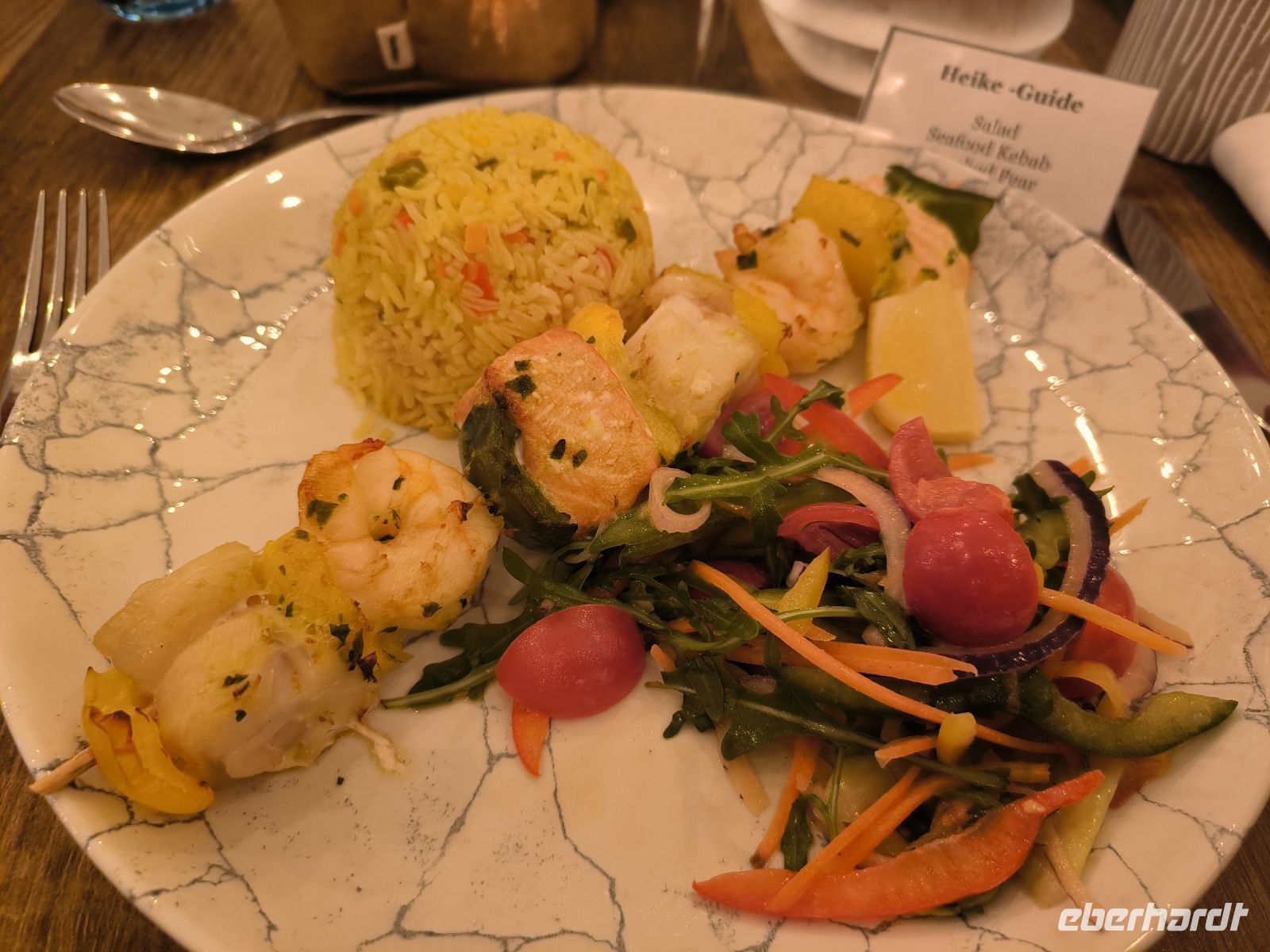 Der Abend endet wieder mit einem hervorragenden Dinner, dessen einziger "Makel" ist, dass wir die drei Gänge kaum schaffen.