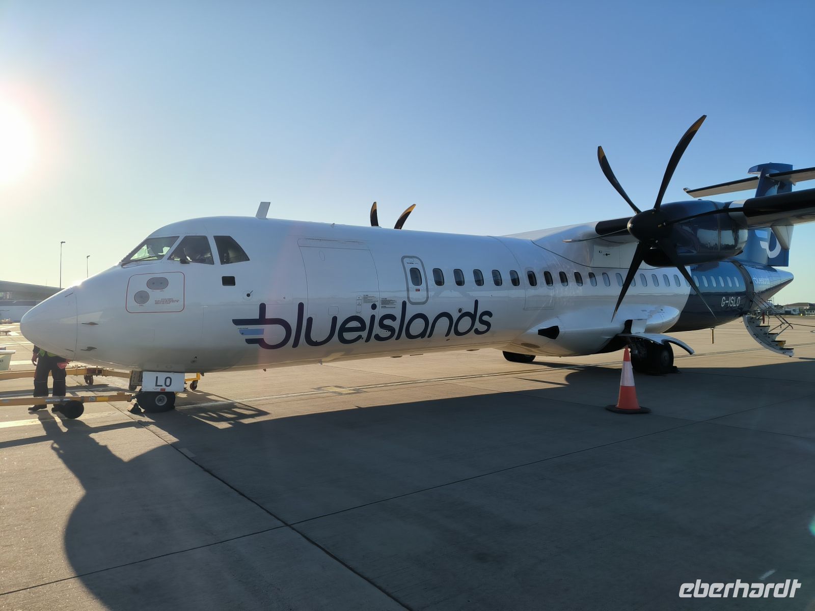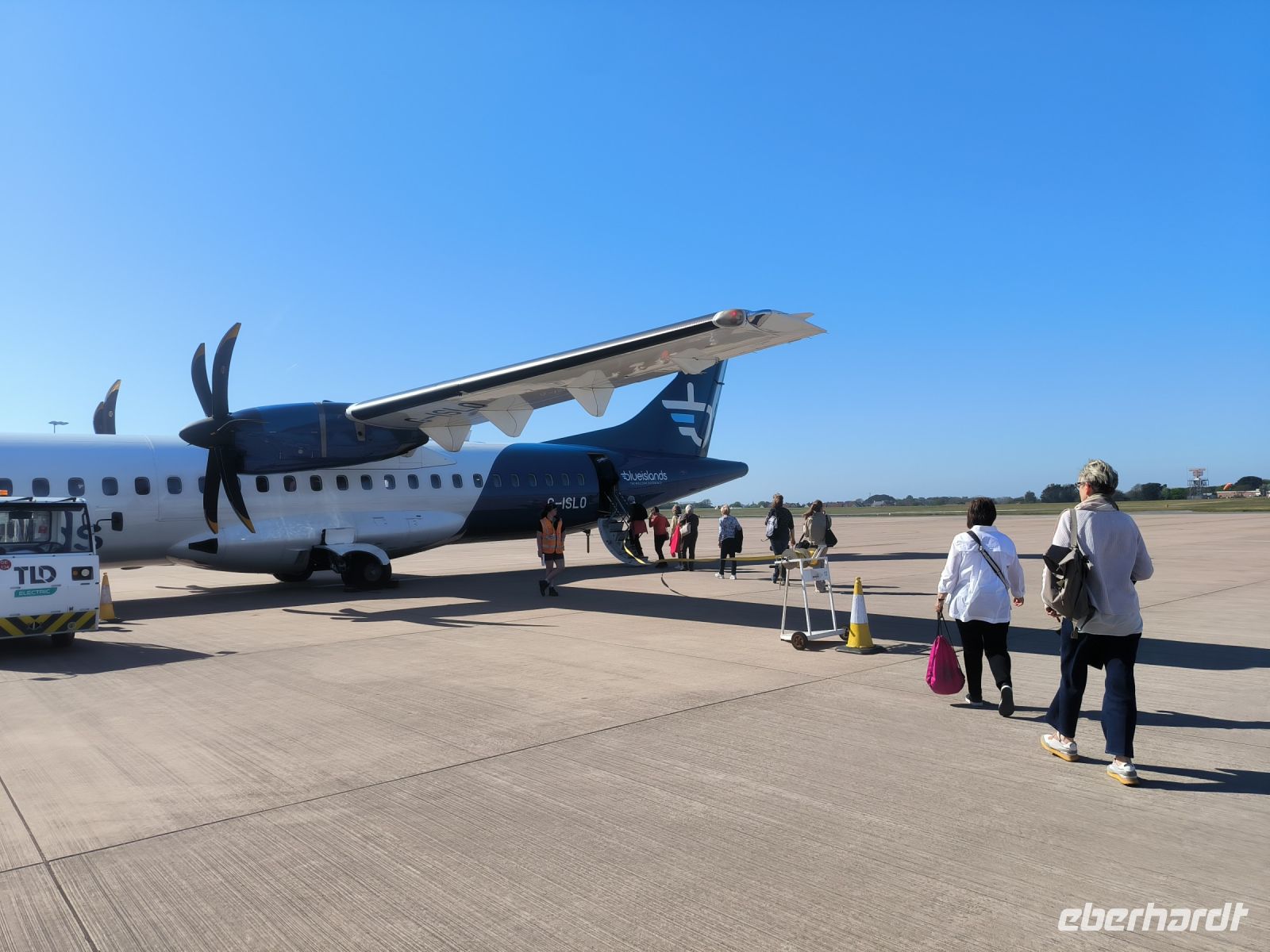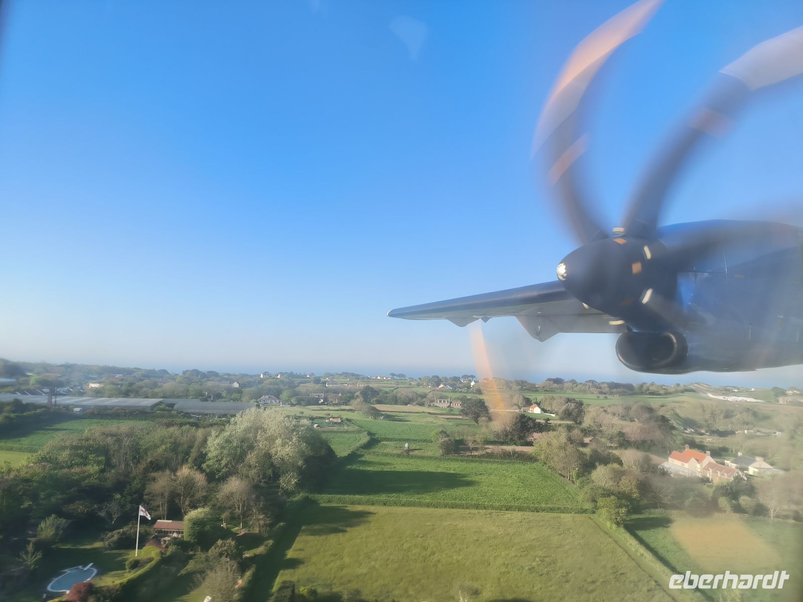 Es sind besondere Umstände, die uns nicht wie geplant per Schiff auf die Nachbarinsel reisen lassen. Wir werden in aller Frühe zum Flughafen gebracht, wo wir bei Blue Island einchecken für den wohl kürzesten Flug unseres Lebens. Die kleine Propellermaschine bringt uns in nur zwölf Minuten nach Guernsey. Pilot Patrick aus Köln wünscht uns einen schönen Tag.