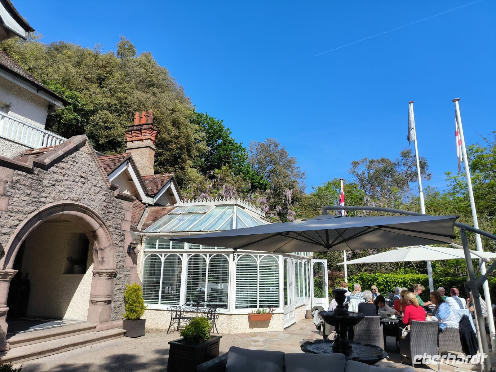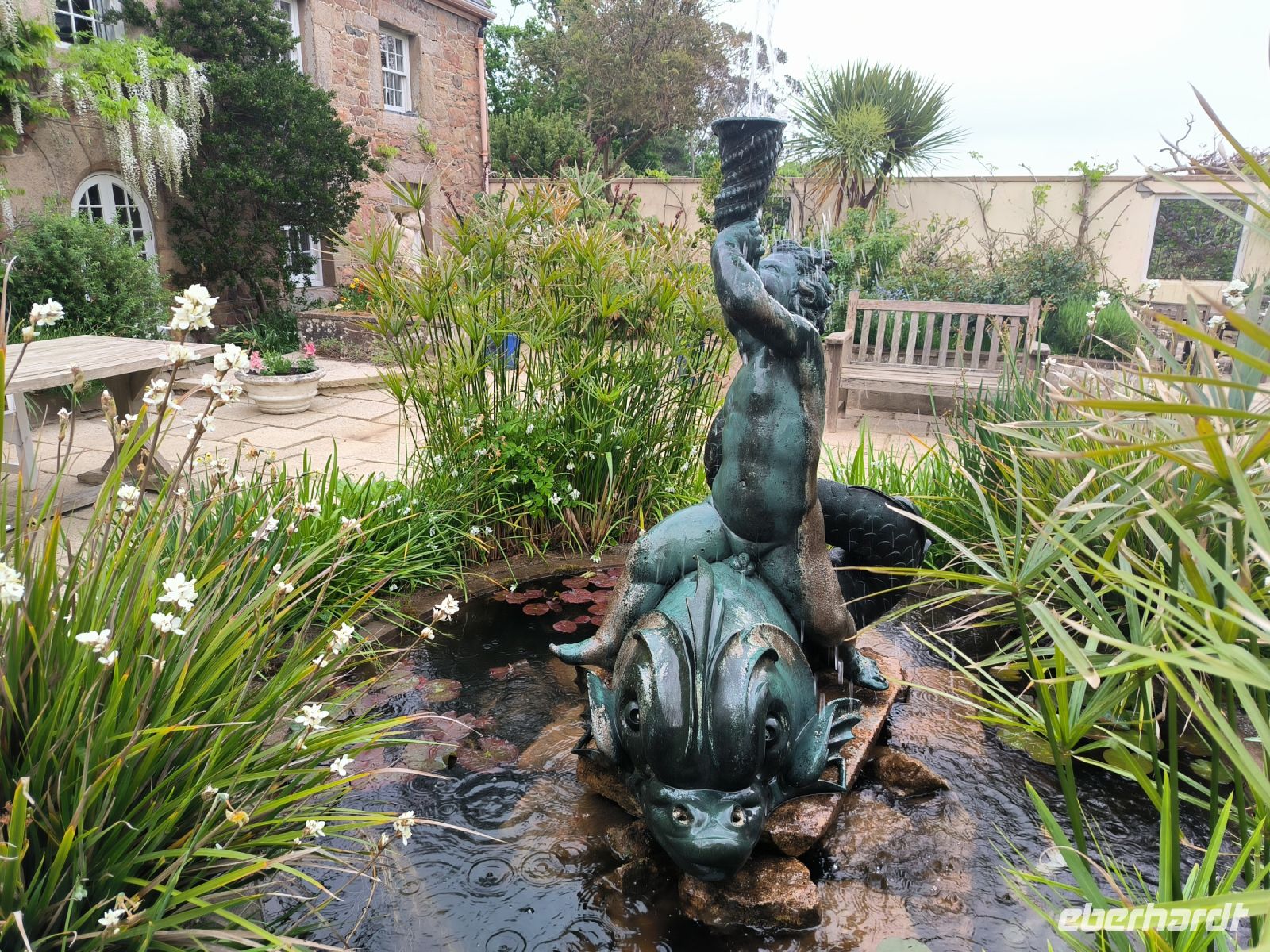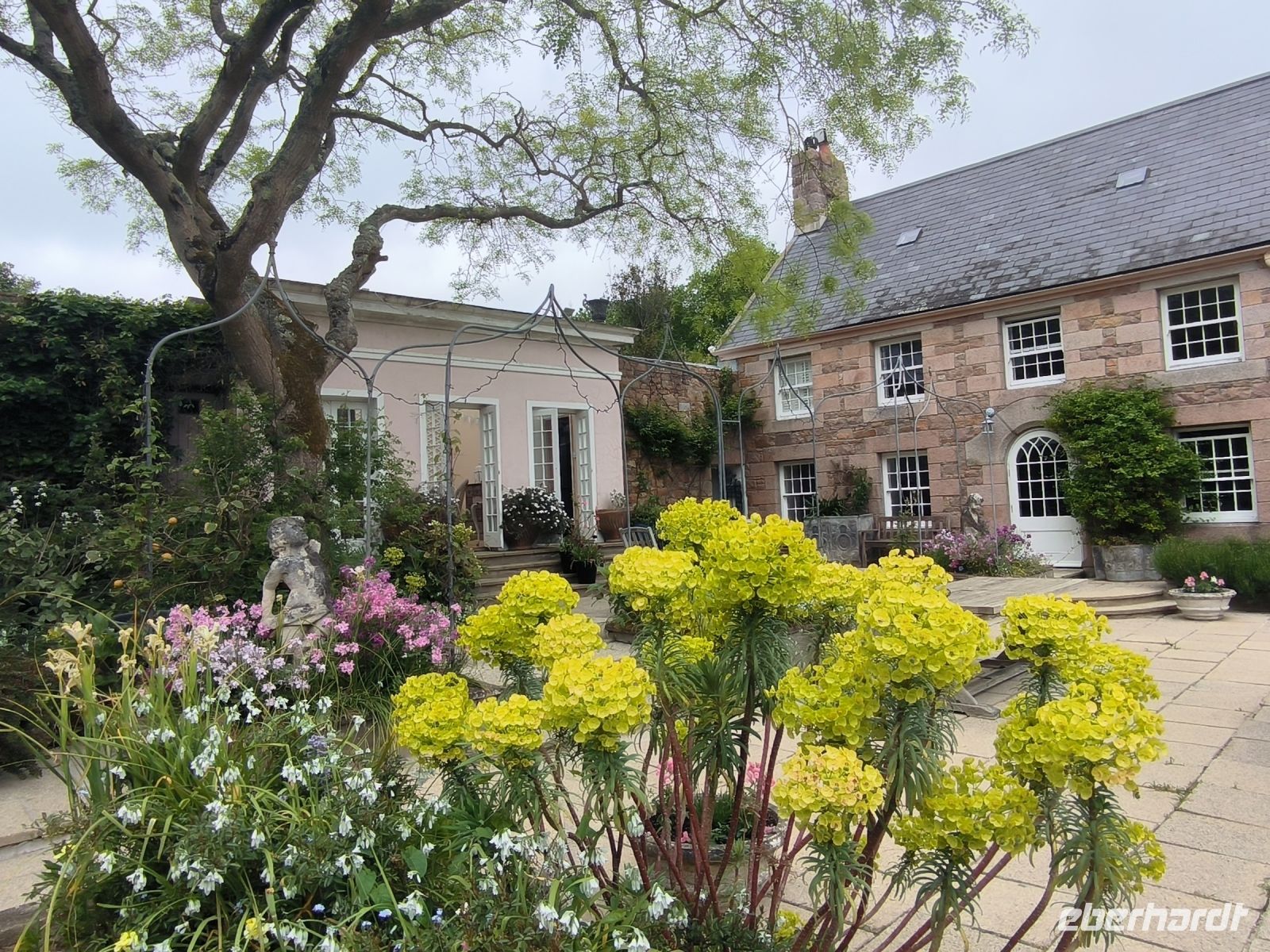 Doch damit nicht genug. Als Überraschung wartet der Cream Tea in einem traumhaft schönen Hotelgarten auf uns. Das Chateau la Chaire in Rozel lässt fast eine romantische Stimmung aufkommen. So ist es ganz passend, dass der Taschentuchbaum direkt daneben steht, als wir uns bei Vanessa und Jane bedanken.