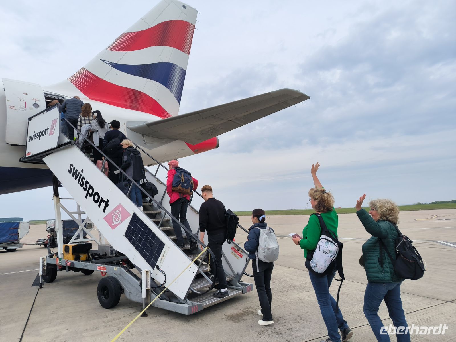 Beim Umstieg in London werden wir zeitweise unfreiwillig getrennt, finden uns aber dann nach den intensiven Sicherheitskontrollen wieder. Einige überbrücken die lange Wartezeit mit einem Kurzausflug in die City of London.