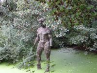 Eine große Skulptur aus Weidenrohr geflochten, zeigen zwei schnäbelnde Papageientaucher. Die lustig anzuschauenden Vögel kommen nur zum Brüten auf die Insel, um dann wieder zurück in ihre Heimat rund um Island zu fliegen. Die Kanalinseln als wärmender Brutkasten für die Aufzucht.