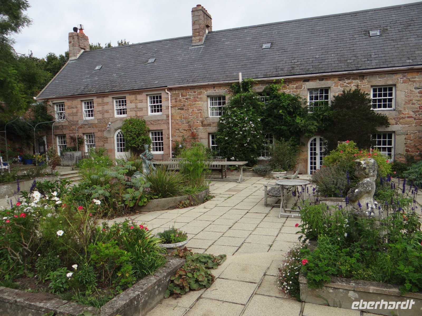 Phil fährt uns zurück nach St. Peter Port, wo er uns vor dem Candie Garten herauslässt. Das Grundstück wr früher ein Privatgrundstück und wurde von seinem Besitzer der Stadt vermacht. Die Anlage ist wunderbar gepflegt und führt uns zum Stadtzentrum. In der Fußgängerzone lässt es sich schön flanieren. Nach der Mittagspause verbleibt freie Zeit zur eigenen Erkundung der kleinen Stadt, die über und über mit Blumenkästen und Blumenampeln geschmückt ist.
