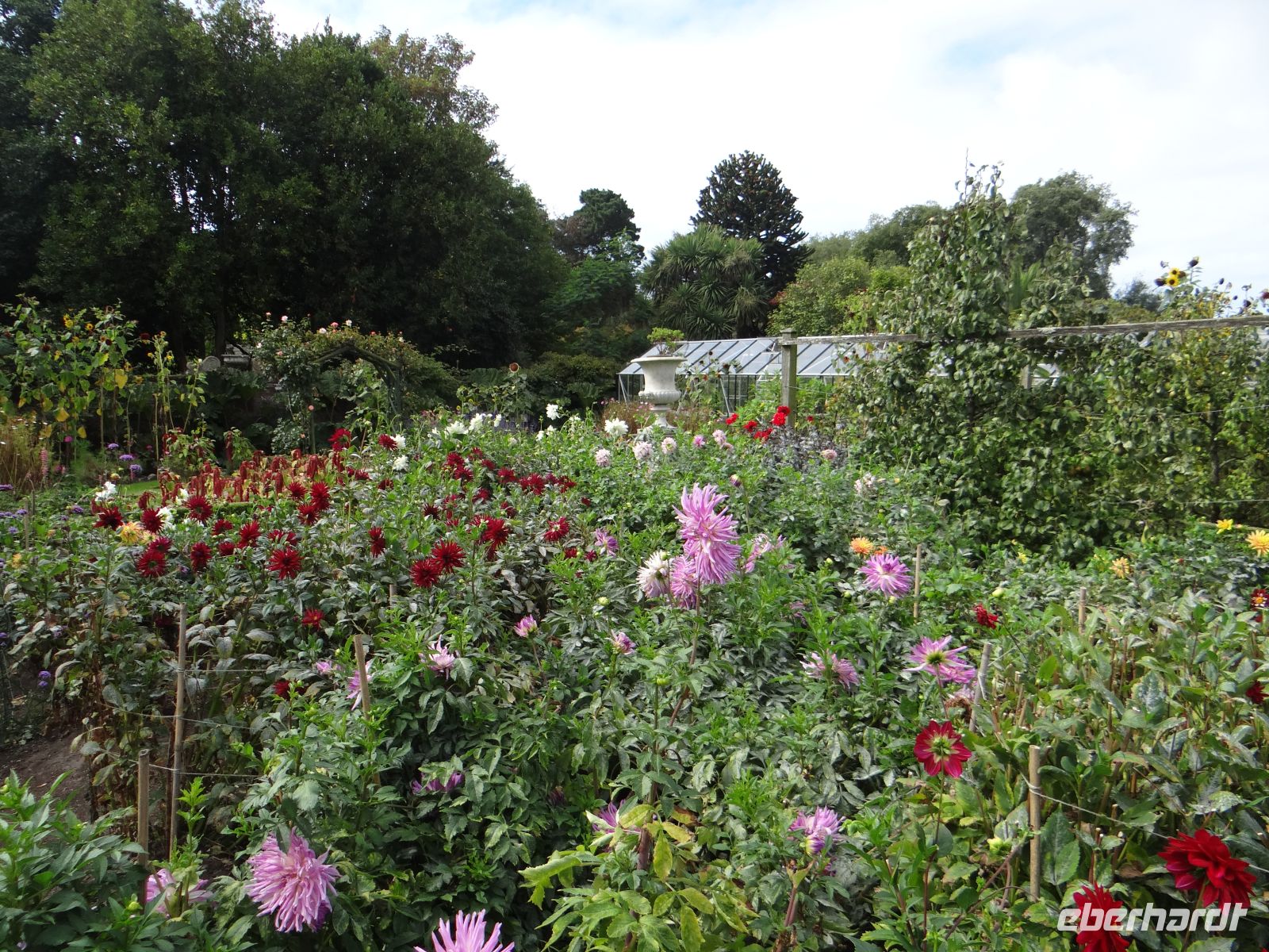 Eine kurze Fahrt, dann sind wir in der Einfahrt des Privatbesitzes von Richard Miles und seiner Familie. Der Landlord führt uns durch sein grünes Reich, zunächst durch den Gemüse- und Blumengarten, entlang des Swimmingpools zum sehr schönen Baumbestand des Grundstücks. Wie auf Inseln wachsen die eindrucksvollen Gehölze aus dem Rasenbett. Überhaupt der Rasen, man tritt auf, sinkt tief ein und fühlt sich auf einem Hochflorteppich, den man noch nie im Leben weder gesehen noch betreten hat. Es ist ein Gefühl, als wenn der Rasen einem die Füße küsst – und das bei jedem Schritt.