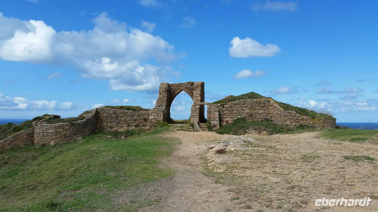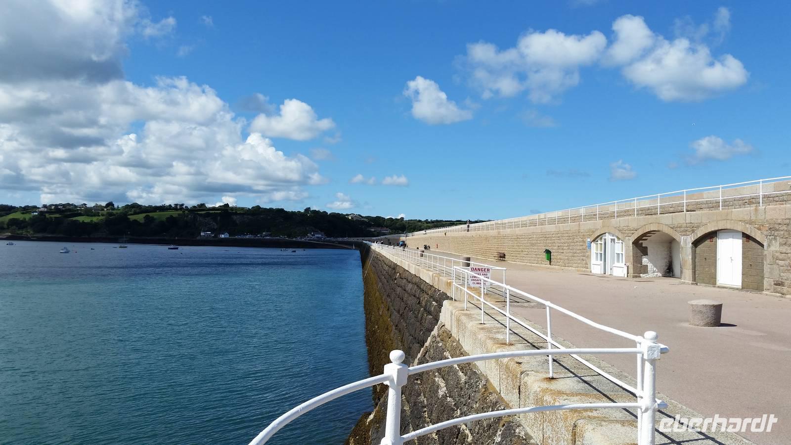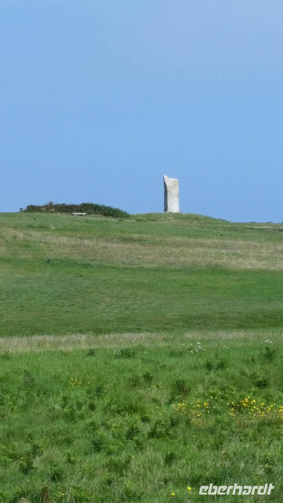 „La Pouquelaye de Faldouët". Es wurde in der Zeit 4.000 bis 3.250 v. Chr. errichtet. Anschließend geht es wieder bergab in Richtung Insel-Ostspitze. Die lange Mole bildet den nächsten Punkt aller Kanalinseln zum französischen Festland (Normandie).