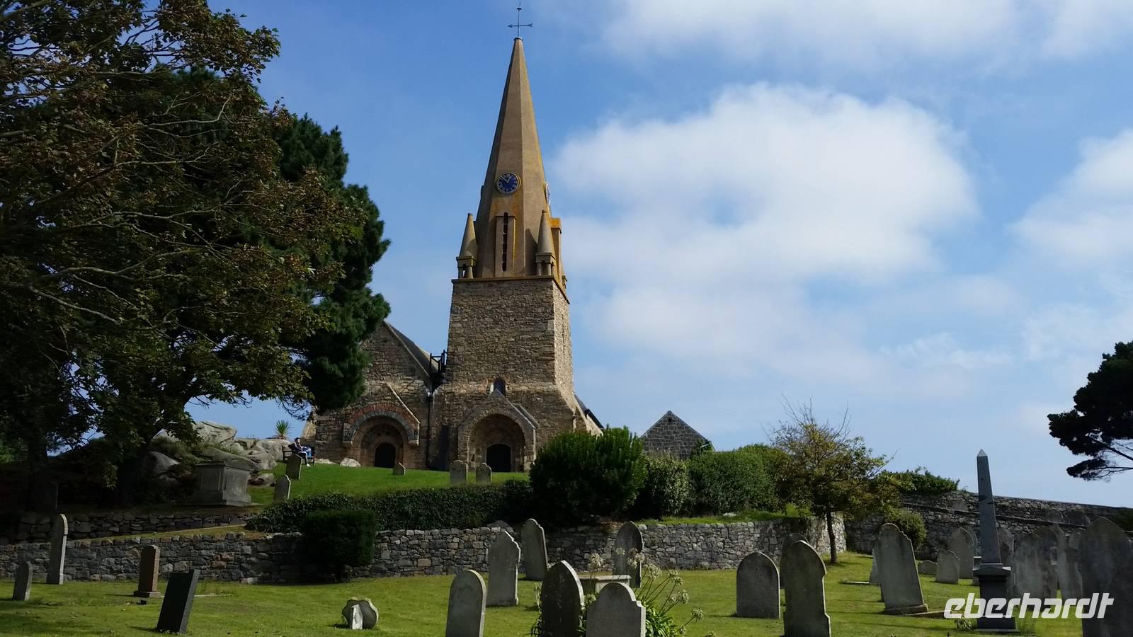 Wir erreichen den westlichsten Punkt den Corbiere Leuchtturm. Er befindet sich auf einer sturmumtosten Felsenklippe. Bei Ebbe ist sie zu Fuß zugänglich. Unseren Mittagsstopp legen wir heute in einem kleinen aber feinen Strandlokal an der St. Ouen's Bay ein. Wir sind aktiv und nehmen draußen Platz, zugegeben die einzigen Gäste des Restaurants, die das tun. Nach unserer Pause wechseln wir in das schöne Landesinnere, leider mit der üblichen Begleiterscheinung, es geht stramm bergauf. Über das Waterworks Valley gelangen wir wieder an die Südküste. Bevor wir in unser Hotel zurückkehren statten wir dem Coronation Park samt der Glaskirche einen Besuch ab. Die Glaskirche wirkt sehr modern, ein typisches Kind der ersten Hälfte des 20. Jh. könnte man meinen, tatsächlich wurde sie bereits im Jahr 1840 errichtet. Nach unserem Besuch geht es zurück in unser Hotel. Hier erwartet uns nach kurzer Zeit „Heidi", die gute Seele Jersey's, um uns einiges über die schöne Insel Jersey zu erzählen.