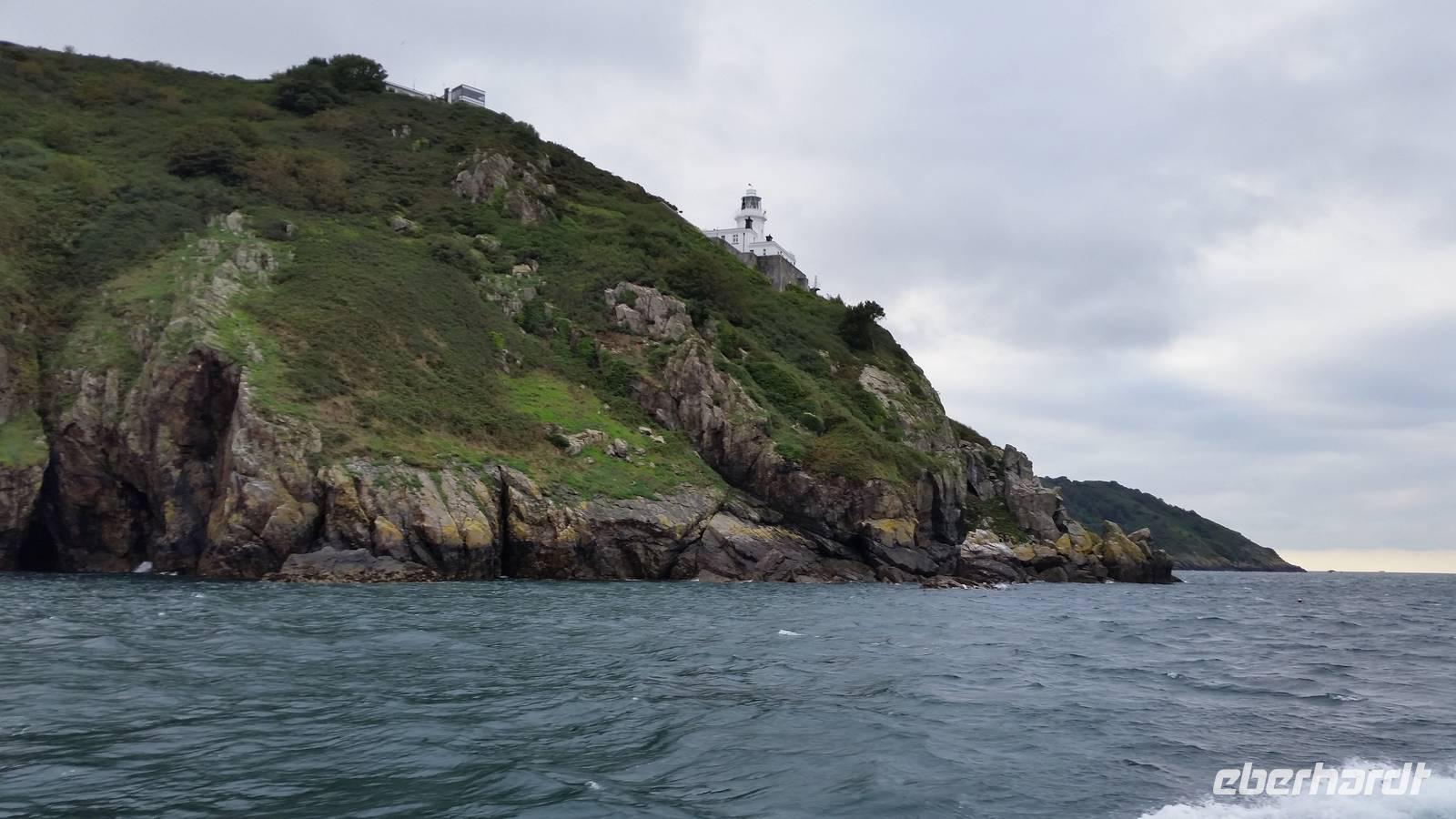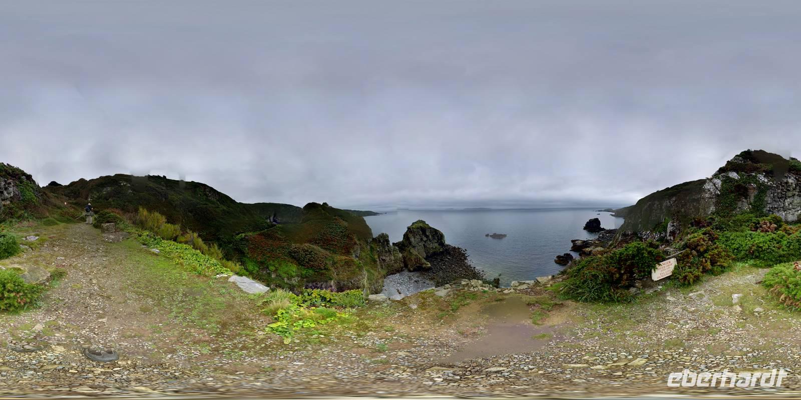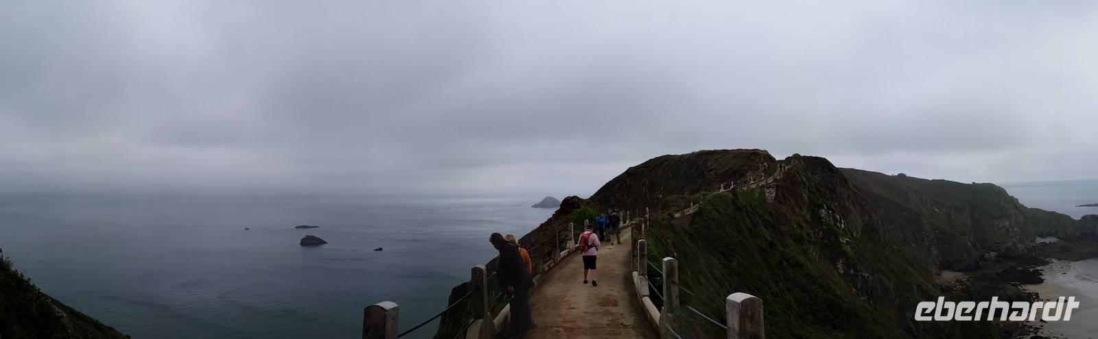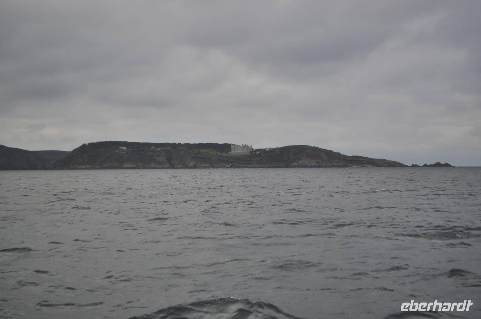 Aufgrund einsetzender Flut verzichten wir auf einen Spaziergang zur Insel Lihou. Sie ist nur bei Ebbe zu erreichen. Bis zum Fort Grey verlief unsere Etappe sanft entlang der vielen Buchten. Die Topographie sollte sich von nun an ändern. Der Radweg führt steil bergauf, so dass wir unser Rad lieben und schieben. Belohnt werden wir mit einer Aussicht über die Nordküste Guernseys. Einsetzender Nebel erlaubt uns jedoch keine Fernsicht. Überrascht sind wir von den riesigen Ausmaßen der Batterie General Oberst Dollmann. Zunächst völlig unscheinbar erschließt sich uns das Ausmaß dieser Anlage. Eine scheinbar kleine Kanone entpuppt sich als riesiges Geschütz samt weitläufiger unterirdischer Bunkeranlagen.