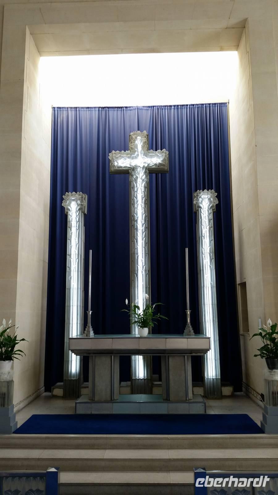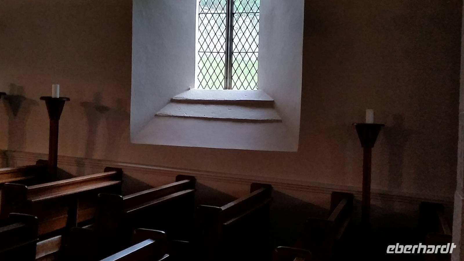 Da auch hier der Untergrund extrem hart ist hat man bei dem Bau der Kirche das Fundament nur auf ein Mindestmaß begradigt. Das führt dazu, dass die Kirche vom Eingangsportal in Richtung Altar unübersehbar und spürbar ansteigt. Das getraute Paar hat nur eine Chance, abwärts.
