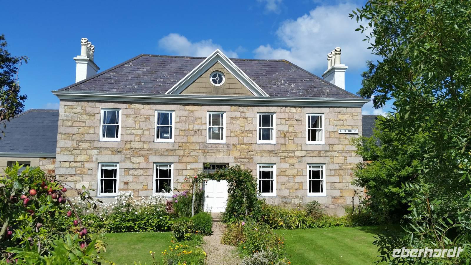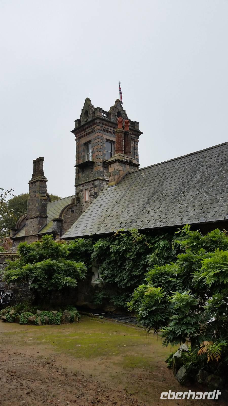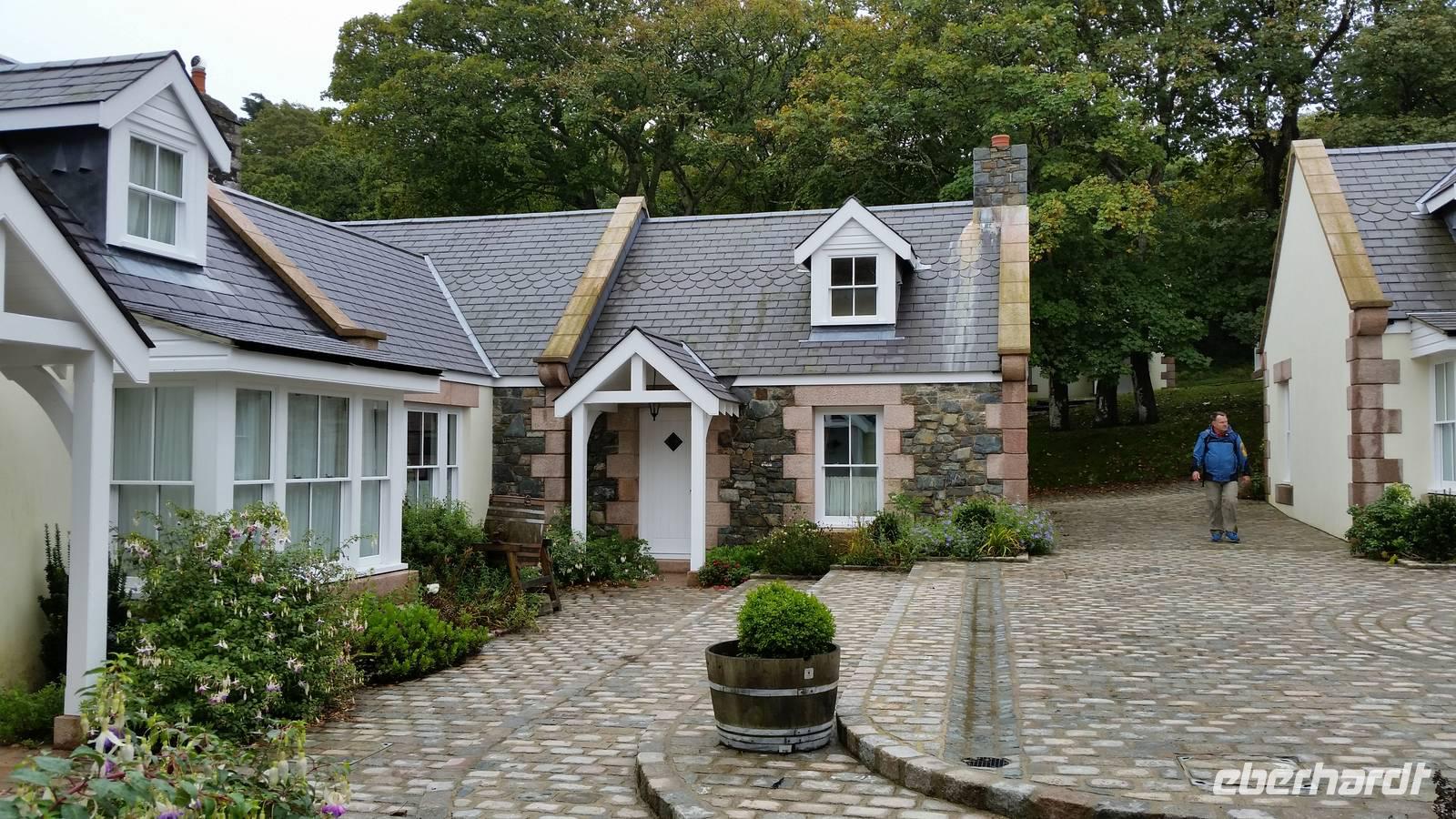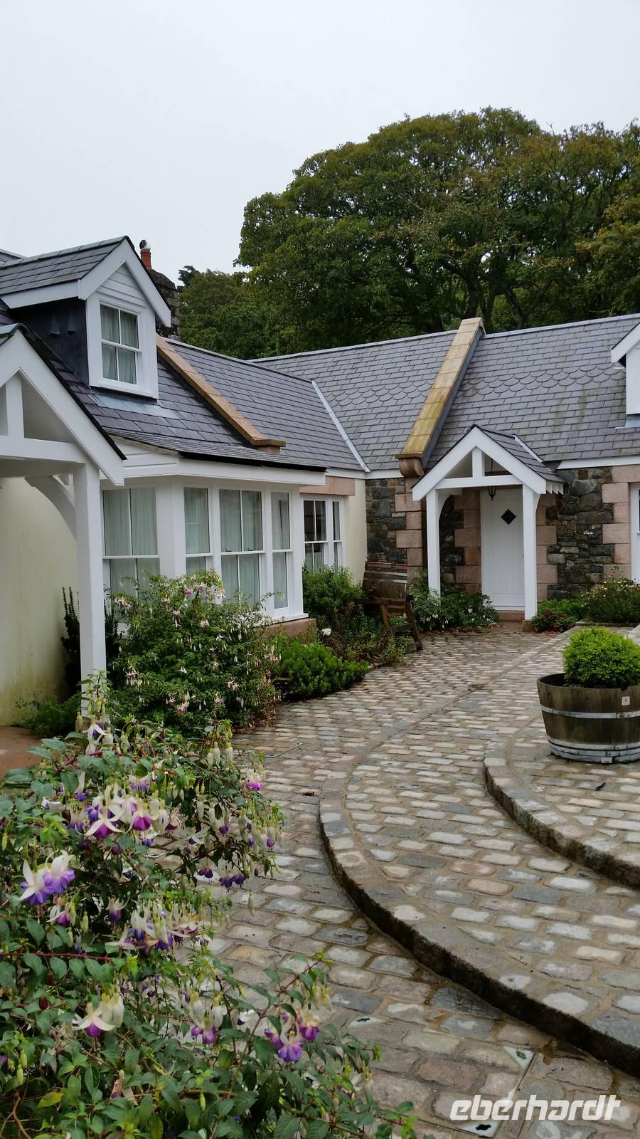 Anschließend wandern wir zur nahegelegenen La Seigneurie, dem Herrenhaus der Insel. Das Gebäude selbst ist nicht zugänglich, dafür die wunderschönen Gärten. Ein Muss für jeden Sark Besucher. Das Gelände erreichen wir über einen Nebeneingang. Dort befindet sich eine historische grüne Telefonzelle samt historischen hölzernen Telefon. Direkt daneben liegt der Taubenturm. Nur dem Seigneur war es traditionell gestattet Tauben zu züchten. Der gut gepflegte Garten entspricht allen Regeln der englischen Gartenkunst und steht auch im September noch in Blüte. Spannend ist der angelegte Irrgarten. Wer den richtigen Weg findet, findet vielleicht den Schatz.