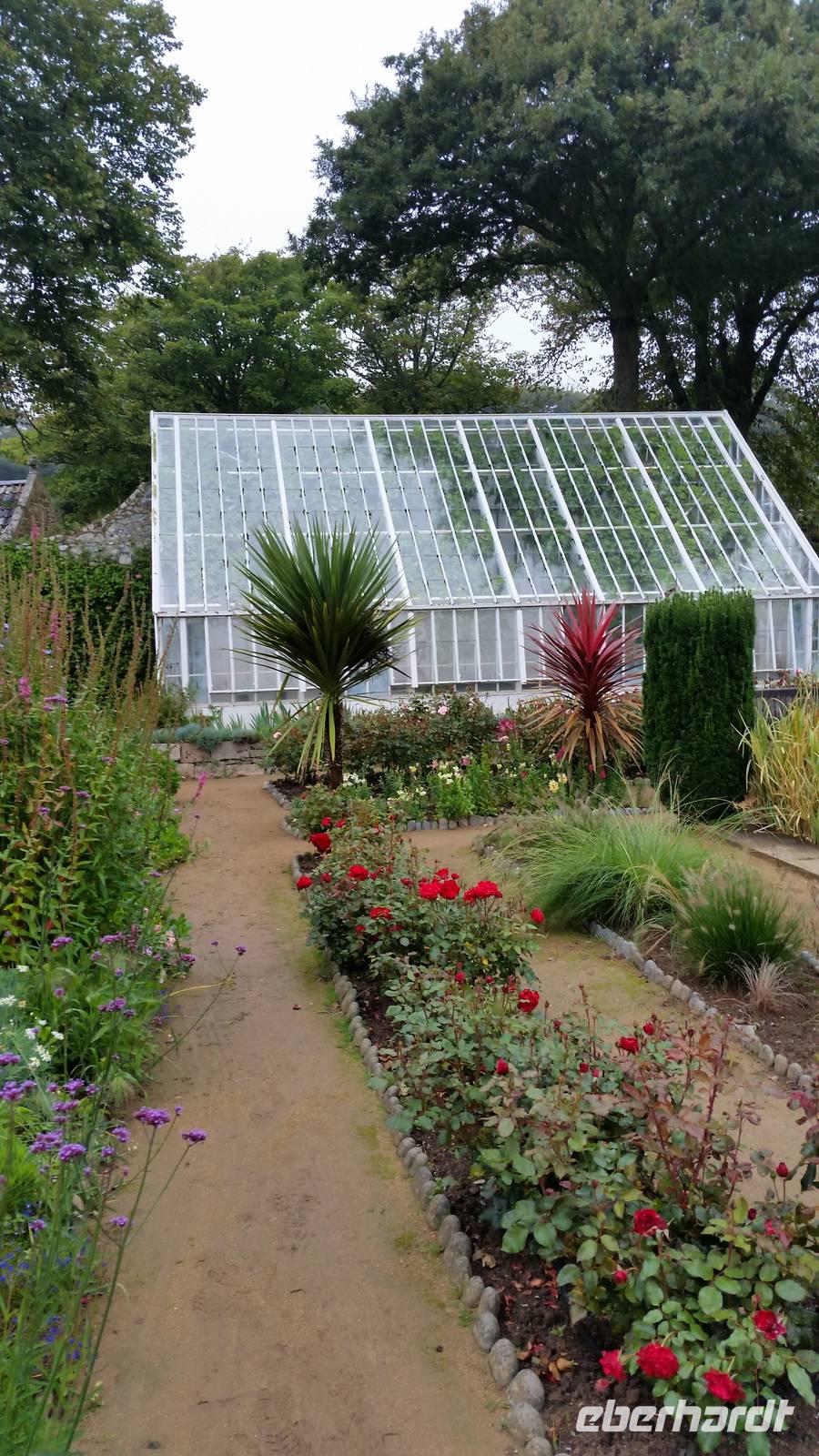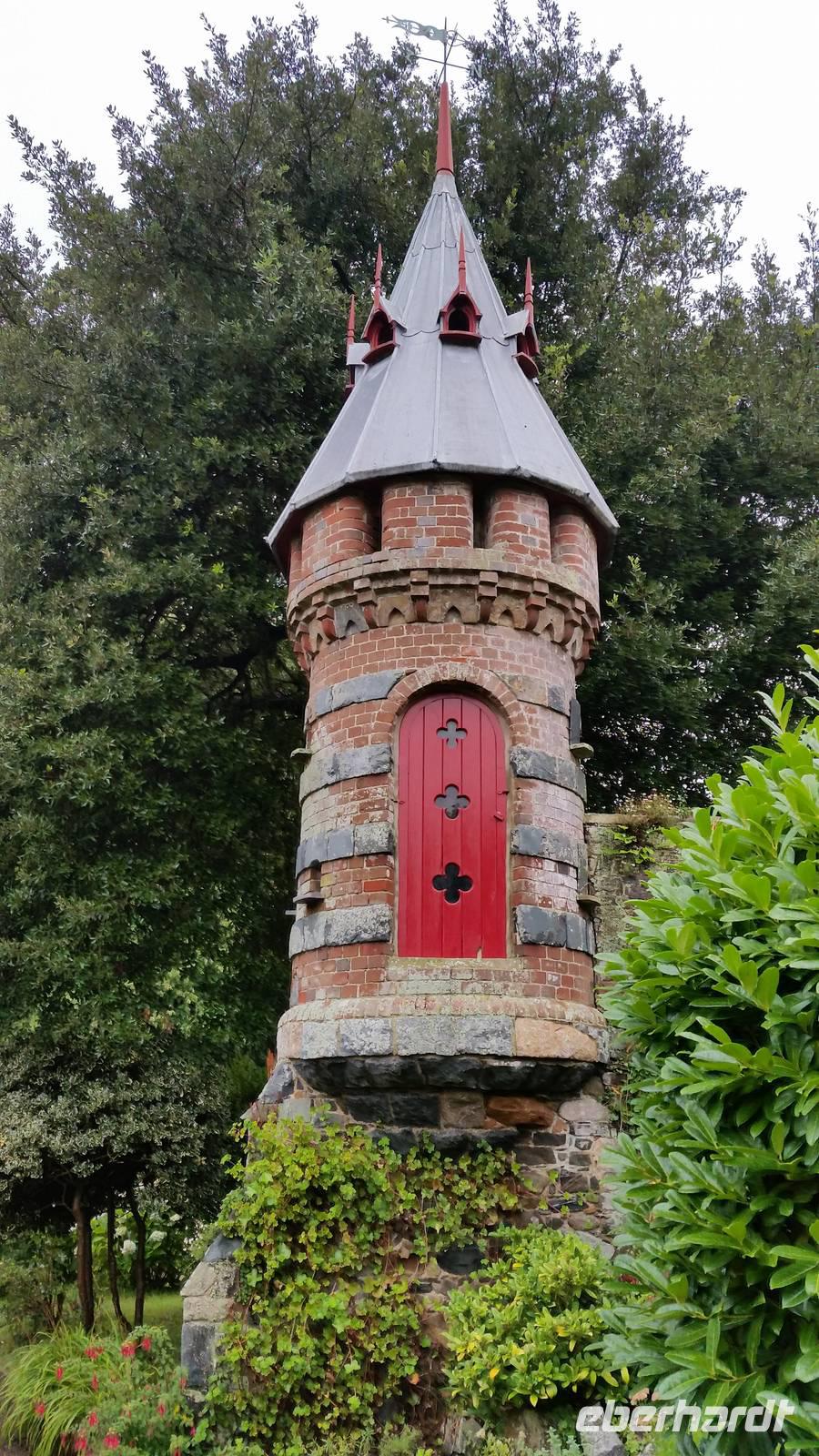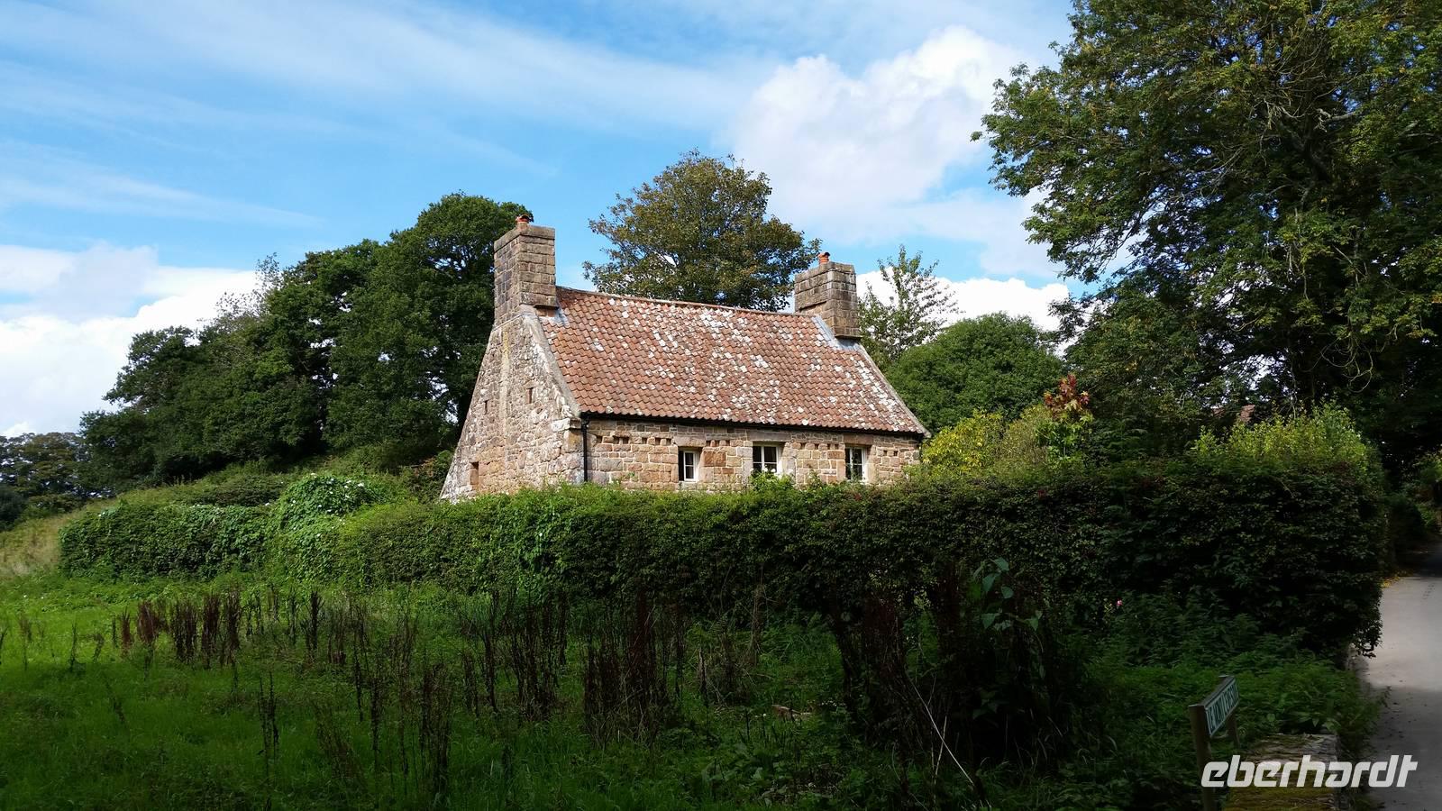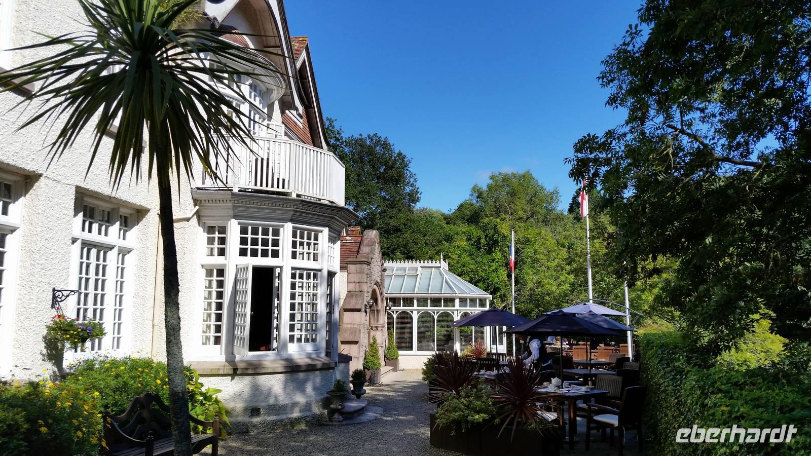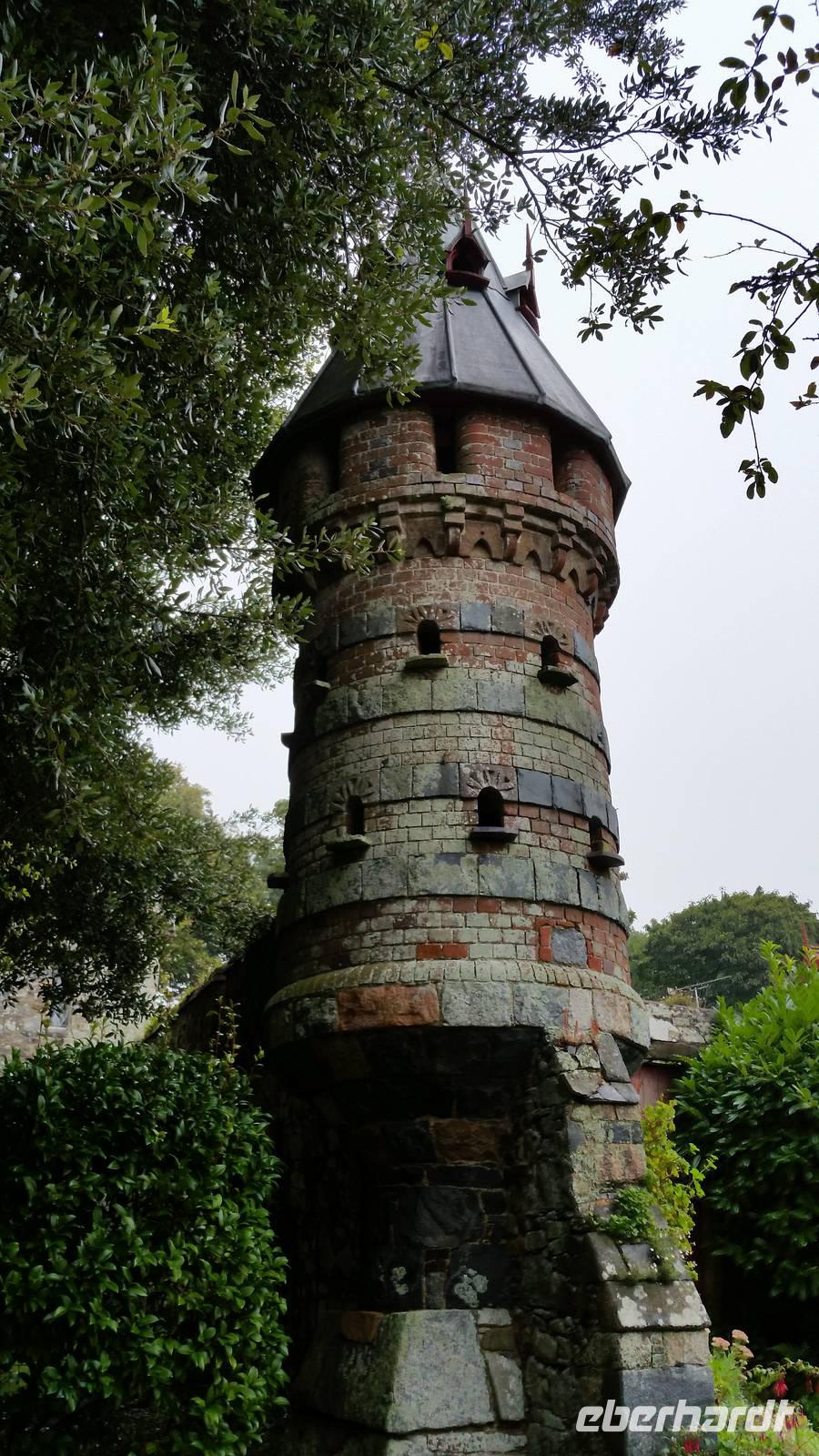 Anschließend wandern wir zur nahegelegenen La Seigneurie, dem Herrenhaus der Insel. Das Gebäude selbst ist nicht zugänglich, dafür die wunderschönen Gärten. Ein Muss für jeden Sark Besucher. Das Gelände erreichen wir über einen Nebeneingang. Dort befindet sich eine historische grüne Telefonzelle samt historischen hölzernen Telefon. Direkt daneben liegt der Taubenturm. Nur dem Seigneur war es traditionell gestattet Tauben zu züchten. Der gut gepflegte Garten entspricht allen Regeln der englischen Gartenkunst und steht auch im September noch in Blüte. Spannend ist der angelegte Irrgarten. Wer den richtigen Weg findet, findet vielleicht den Schatz.