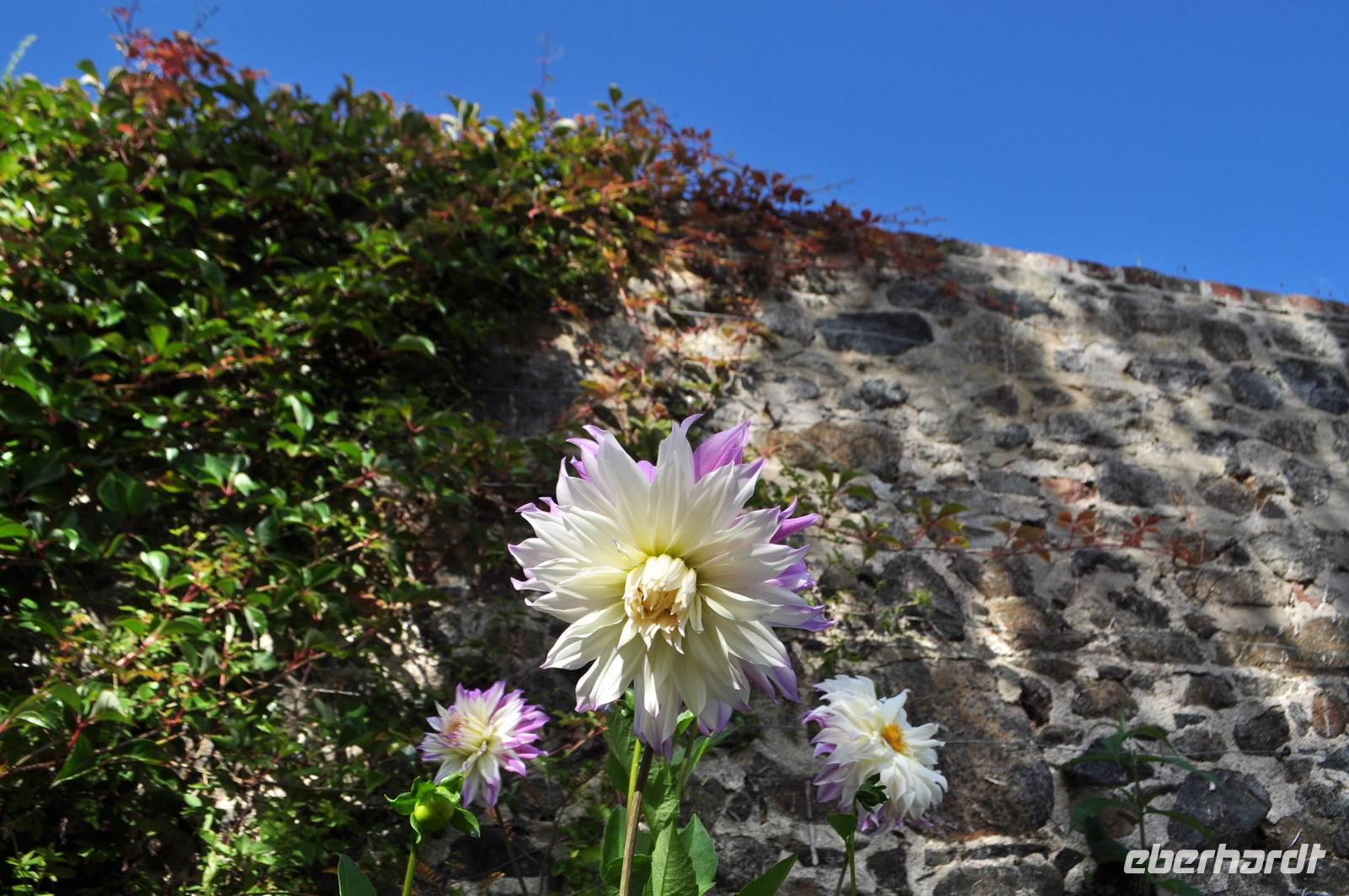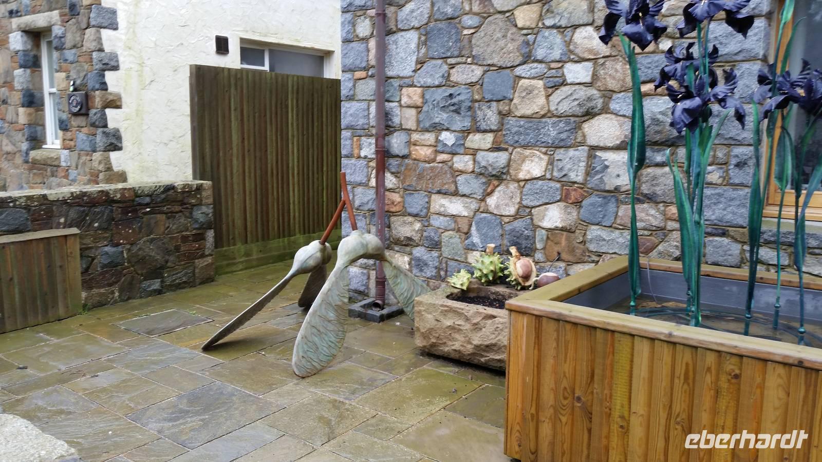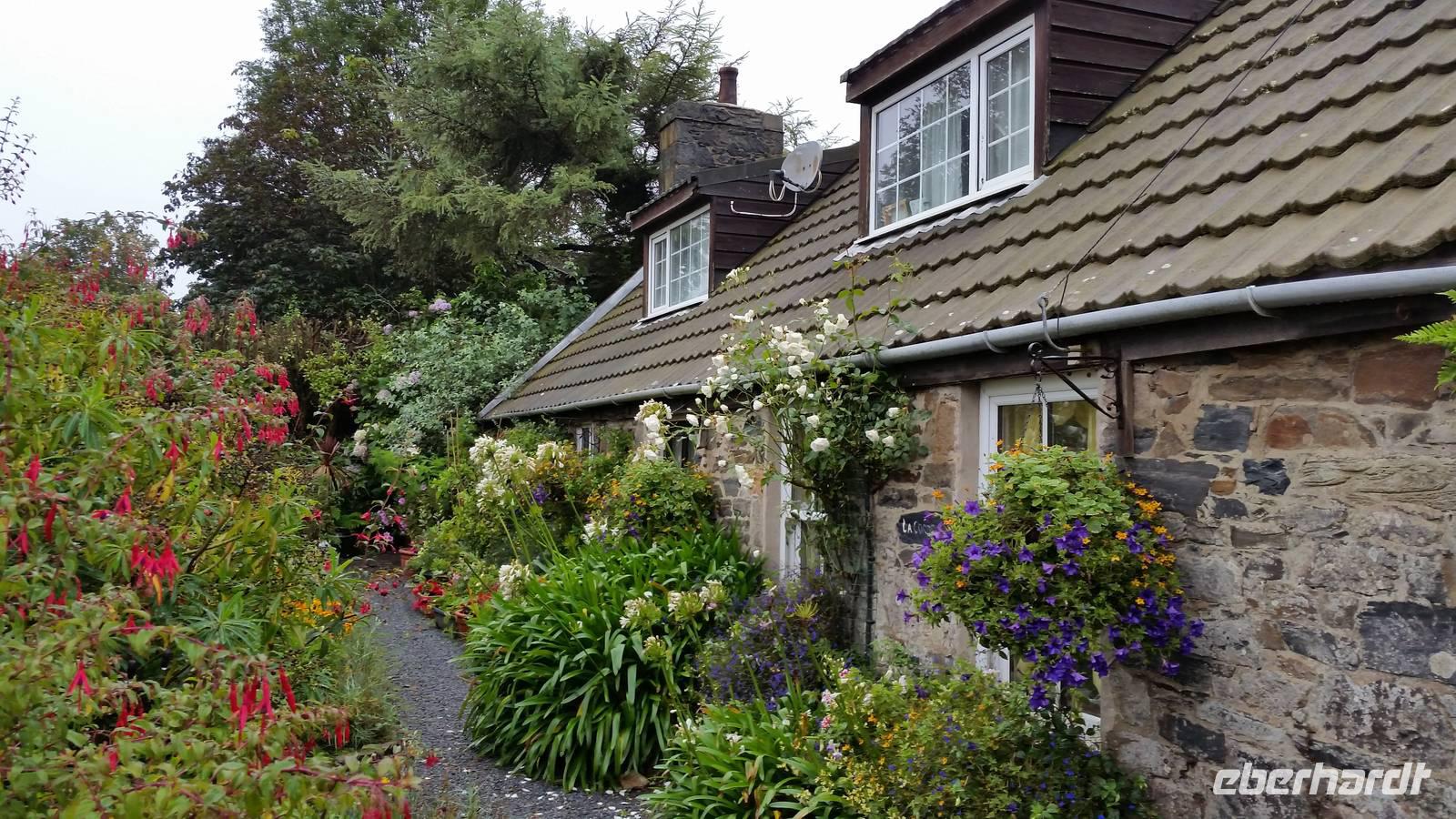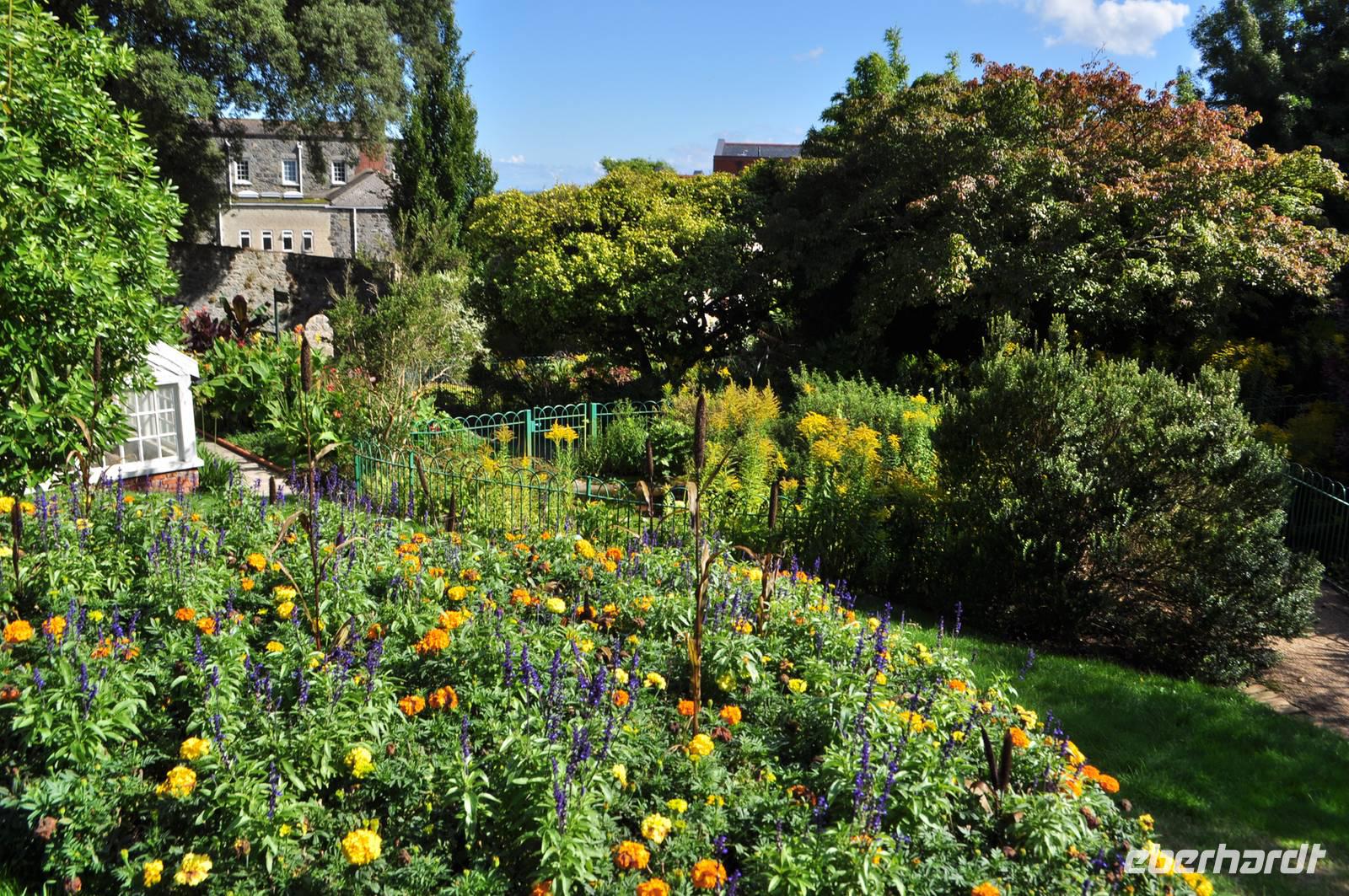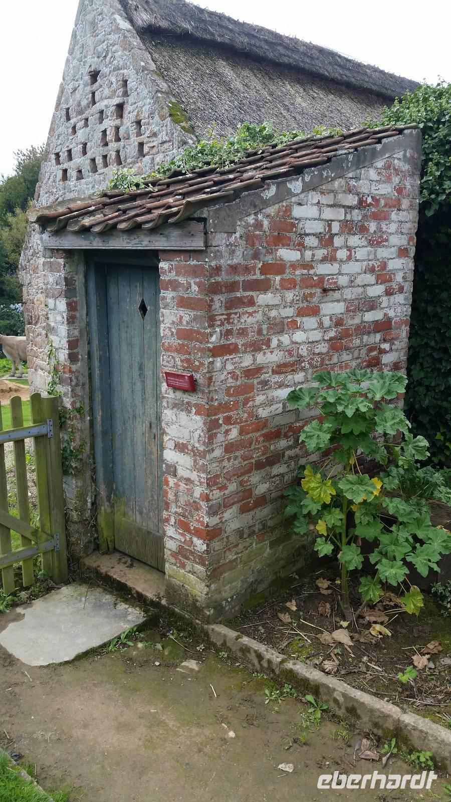 Anschließend wandern wir zur nahegelegenen La Seigneurie, dem Herrenhaus der Insel. Das Gebäude selbst ist nicht zugänglich, dafür die wunderschönen Gärten. Ein Muss für jeden Sark Besucher. Das Gelände erreichen wir über einen Nebeneingang. Dort befindet sich eine historische grüne Telefonzelle samt historischen hölzernen Telefon. Direkt daneben liegt der Taubenturm. Nur dem Seigneur war es traditionell gestattet Tauben zu züchten. Der gut gepflegte Garten entspricht allen Regeln der englischen Gartenkunst und steht auch im September noch in Blüte. Spannend ist der angelegte Irrgarten. Wer den richtigen Weg findet, findet vielleicht den Schatz.