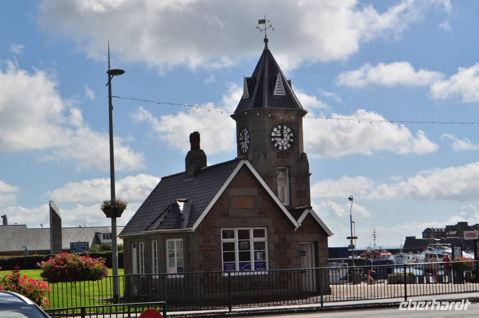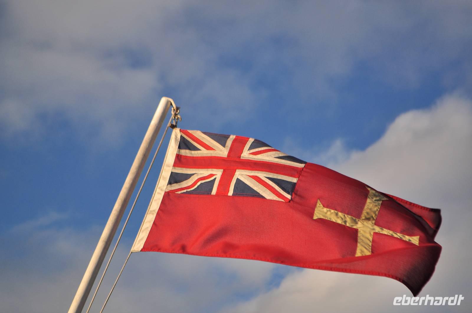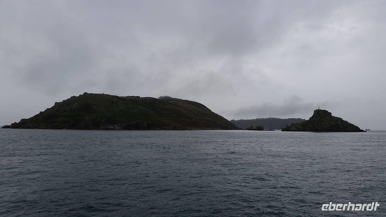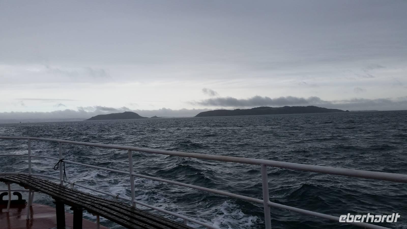Bei starkem Regen begeben wir uns zum Schiffsanleger in St Peter Port. Heute ist einer der wenigen inoffiziellen Feiertage im Vereinigten Königreich (Bank Holiday). Im Hafen haben einige Händler ihre Marktbuden aufgeschlagen mit einigen Köstlichkeiten von den Kanalinseln und aus dem nahen Frankreich. Mit einem kleinen Schiff geht es vorbei an der Insel Herm zur Insel Sark.