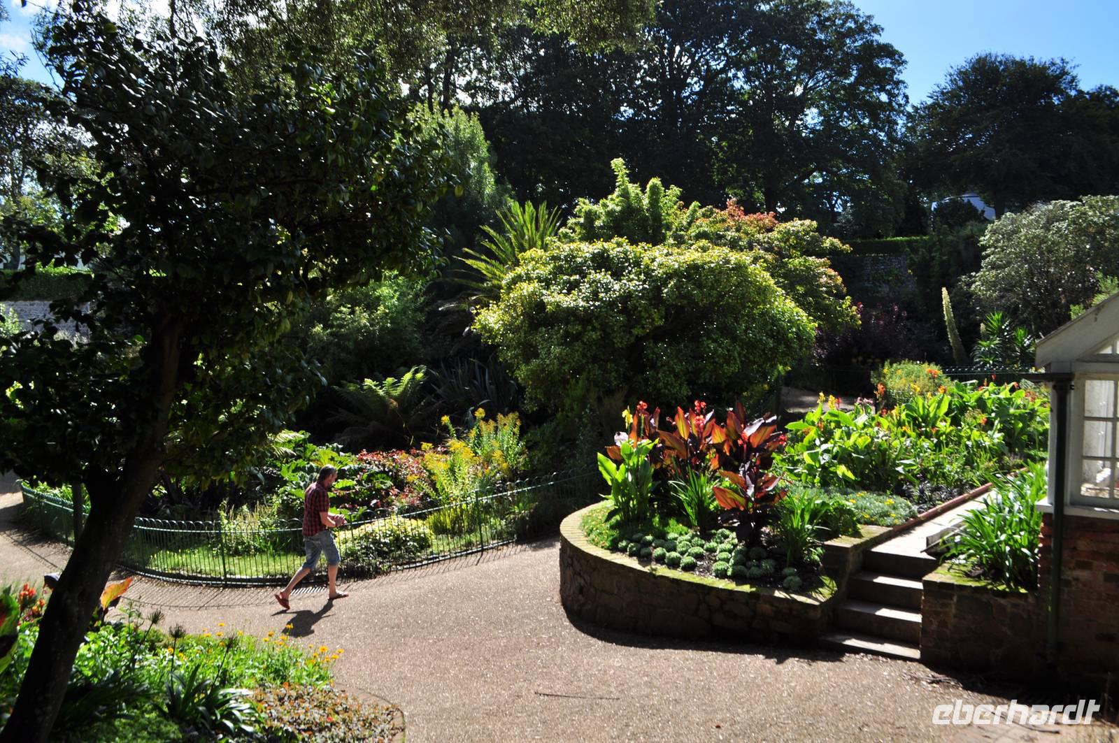 Mit Candy Gardens werden auch Garten-Fans noch einmal belohnt. Ein botanischer Garten mit tropischen Gewächsen. Wer dann den schmalen Weg oberhalb der Stadt zurück zum Hotel wählt, wird mit einem wunderschönen Blick über alle Kanalinseln (bis Alderney und Jersey) belohnt.
