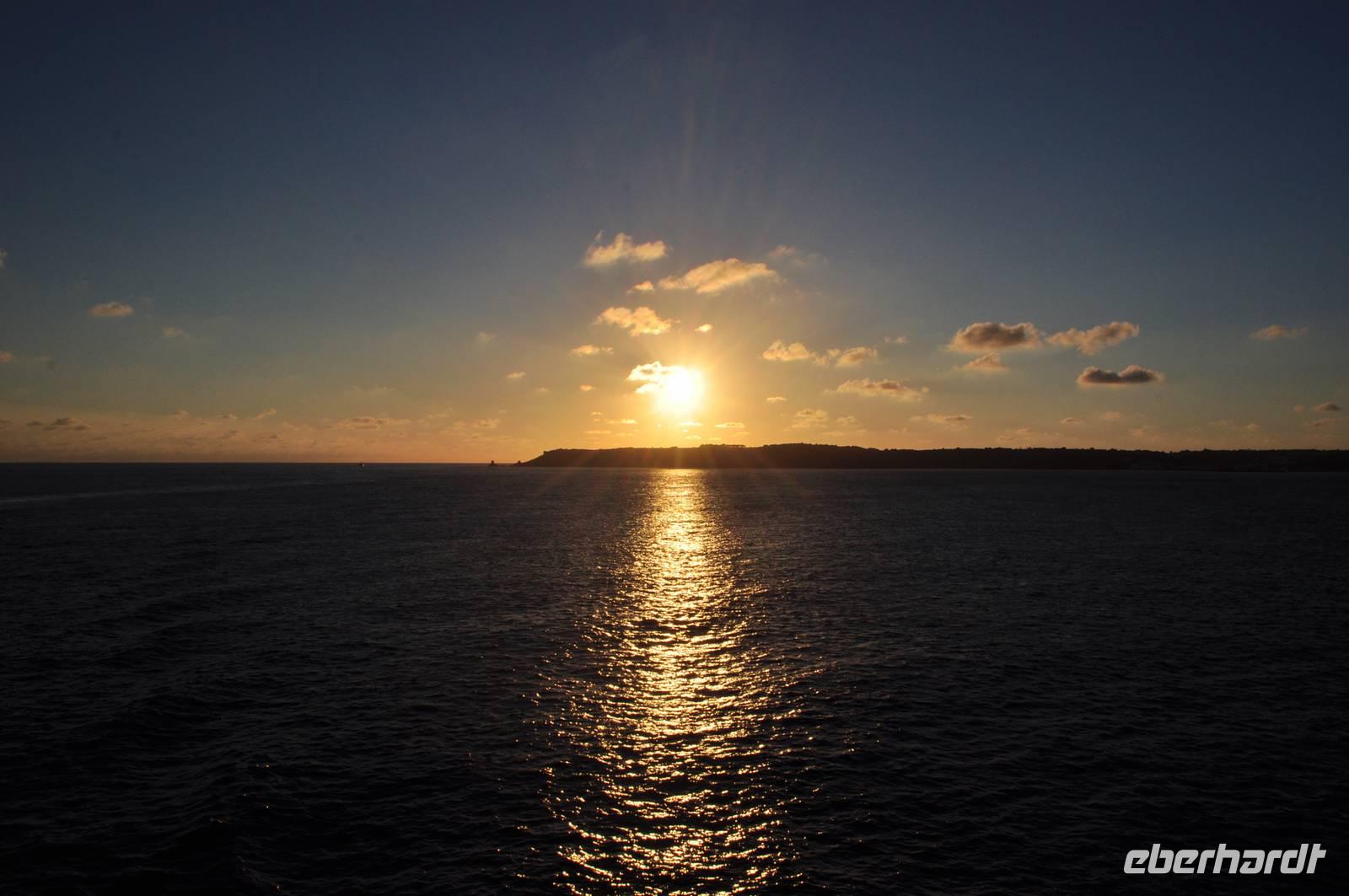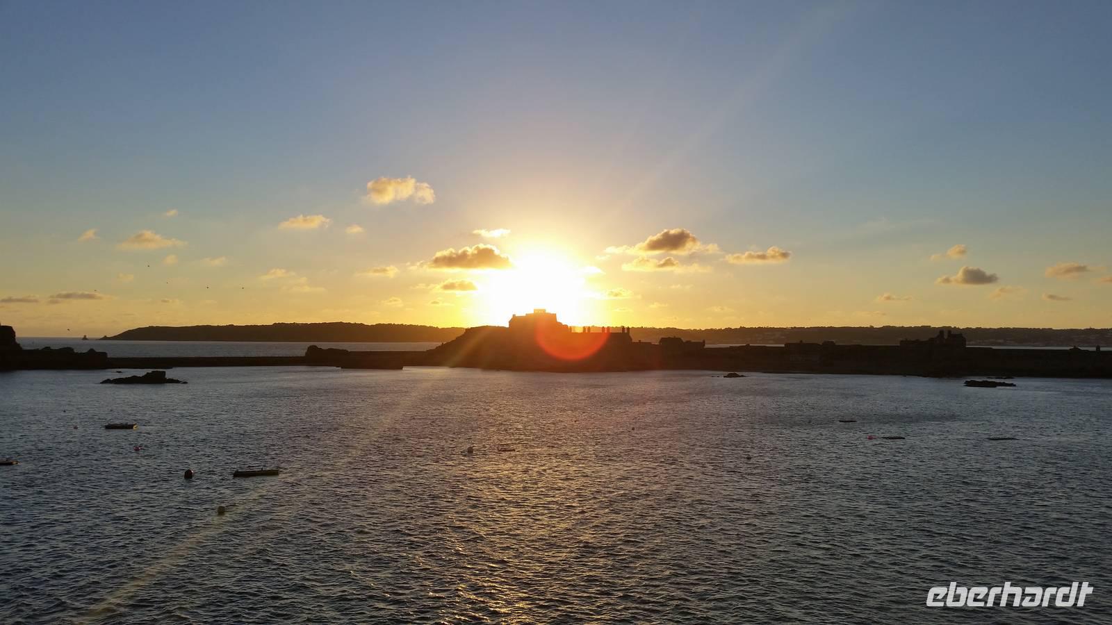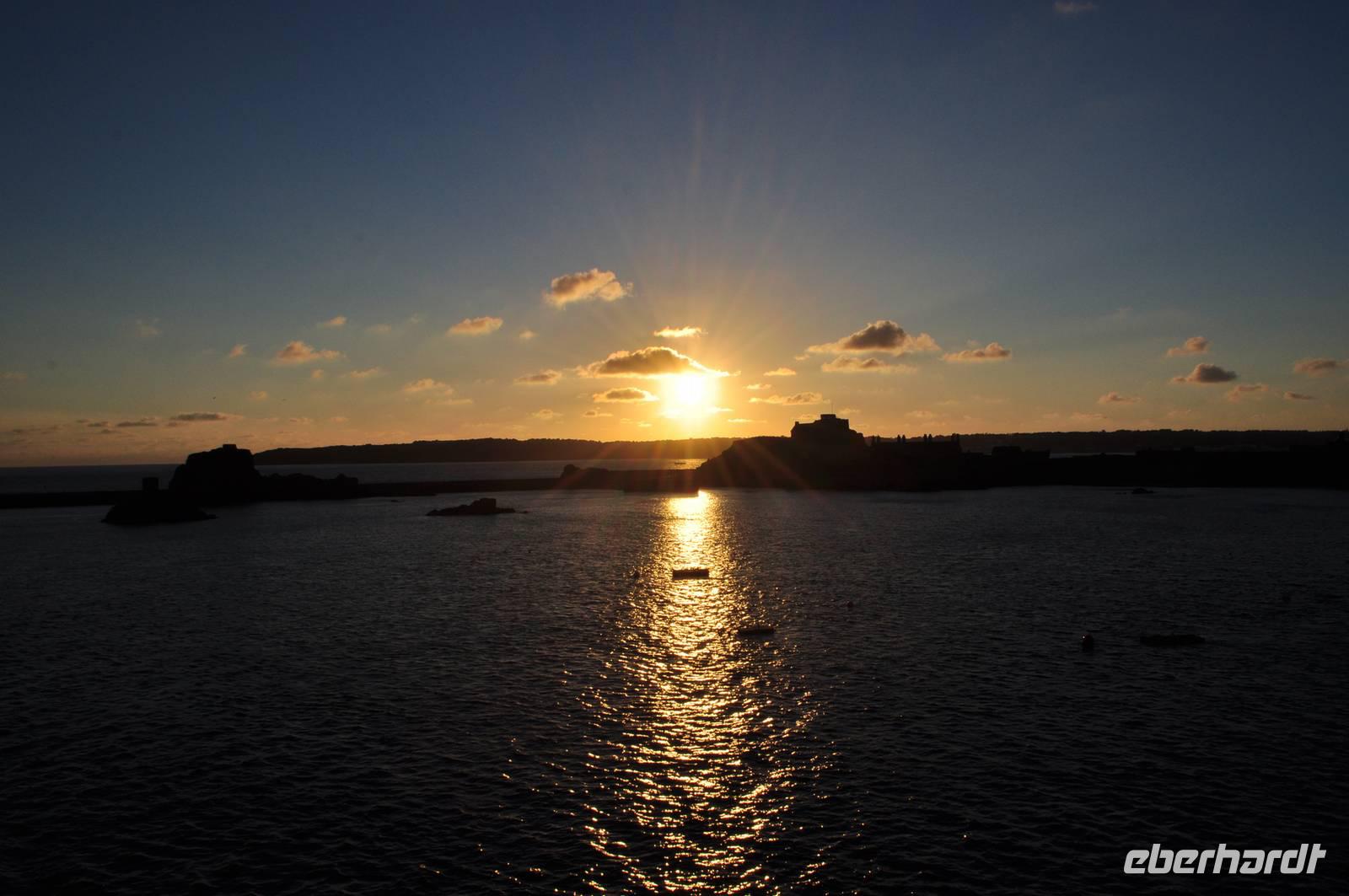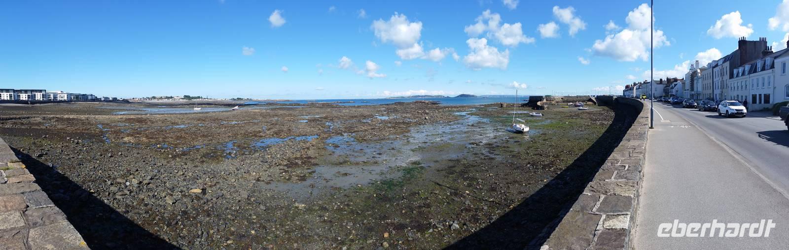 Bei herrlichem Wetter verlassen wir Guernsey, passieren Herm und Sark und erreichen Jersey im Sonnenuntergang. Heidi von Special Tours chauffiert uns zu unserem nahe gelegenen Hotel. Am Abend erleben wir die höchste Tide des Jahres 2015 mit über 12m und damit ca. 3m über der normalen Flut. Glücklicherweise ist das Wetter gut, so dass aus der Springflut keine Sturmflut wird. Das wäre heute ein echtes Problem für die Inseln. Aber das Wetter ist gut, alle haben Spaß an diesem Naturphänomen.