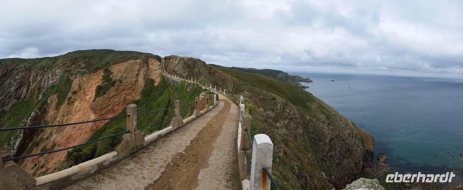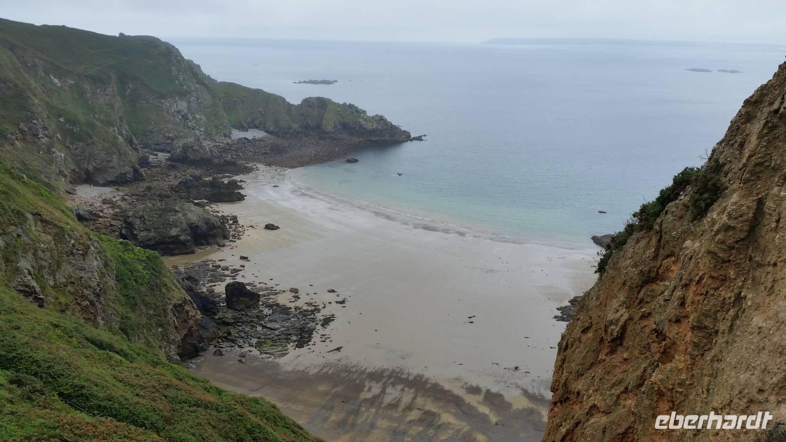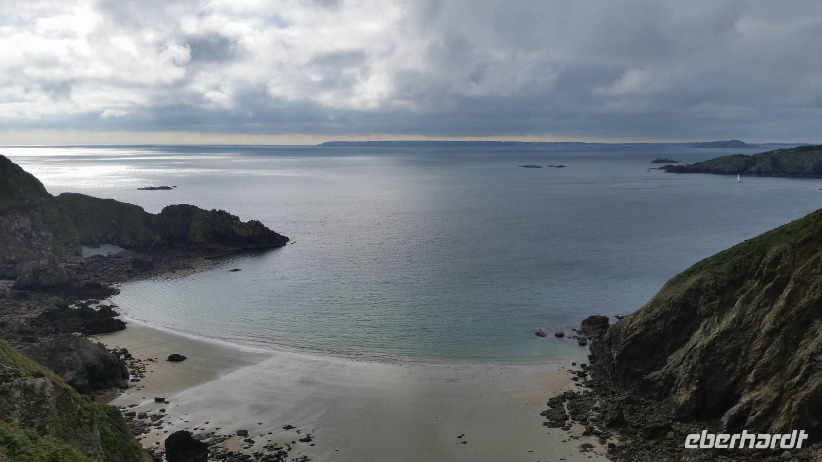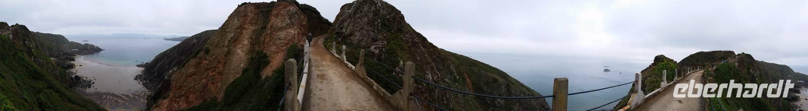 Und dann steht man an „La Coupe" dem landschaftlichen Höhepunkt der Insel, genauer gesagt ein schmaler Damm, der die Inselteile Sark und Little Sark spektakulär miteinander verbindet. Sieht man nur ein Foto von Sark, wird man mit Sicherheit diese Perspektive gezeigt bekommen.