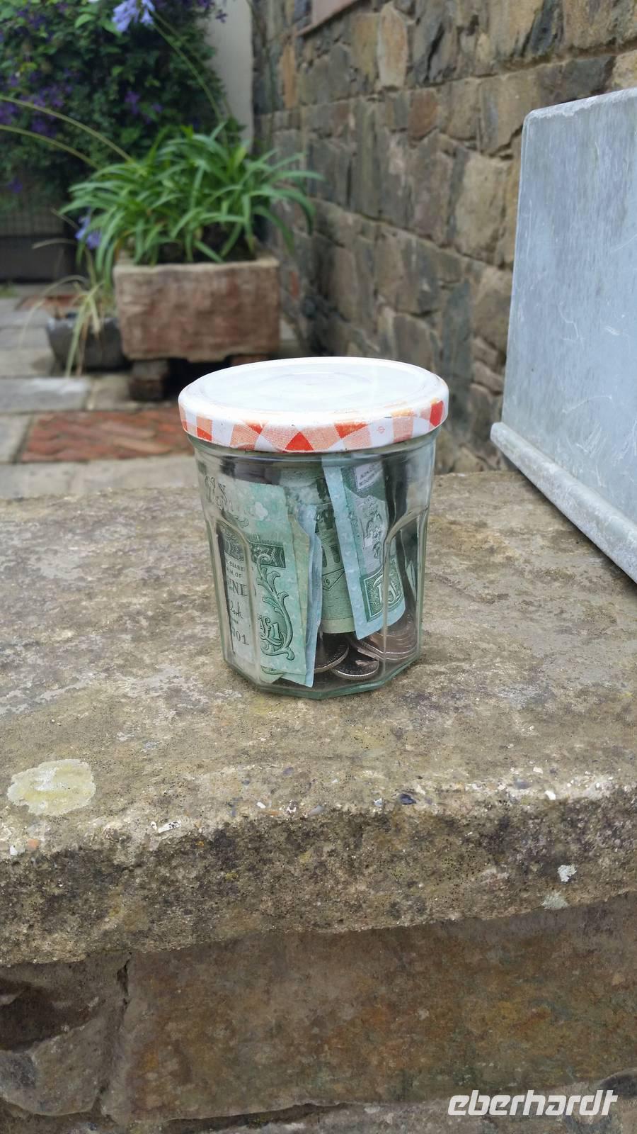 Vertrauen wird wir trotz allem noch groß geschrieben. Produkte aus dem Garten wie Obst und Gemüse, selbstgemachte Marmelade werden überall feilgeboten, kassiert wird über die Kasse des Vertrauens ein Marmeladenglas mit Deckel. Eine Sicherung des zum bärsten gefüllten Geldglases ist offensichtlich nicht notwendig. Wir wandern zunächst nach Norden zum „window in the rock" zu einem Fenster im Felsen. Dieses große Loch im Felsen und die umliegenden Aussichtspunkte bieten eine fantastische Sicht auf die bizarre Steilküste der Insel Sark.