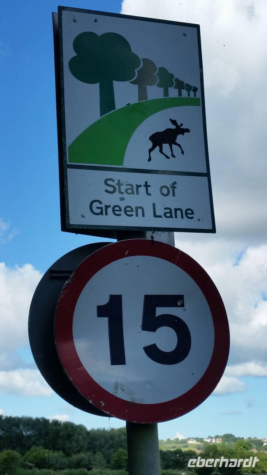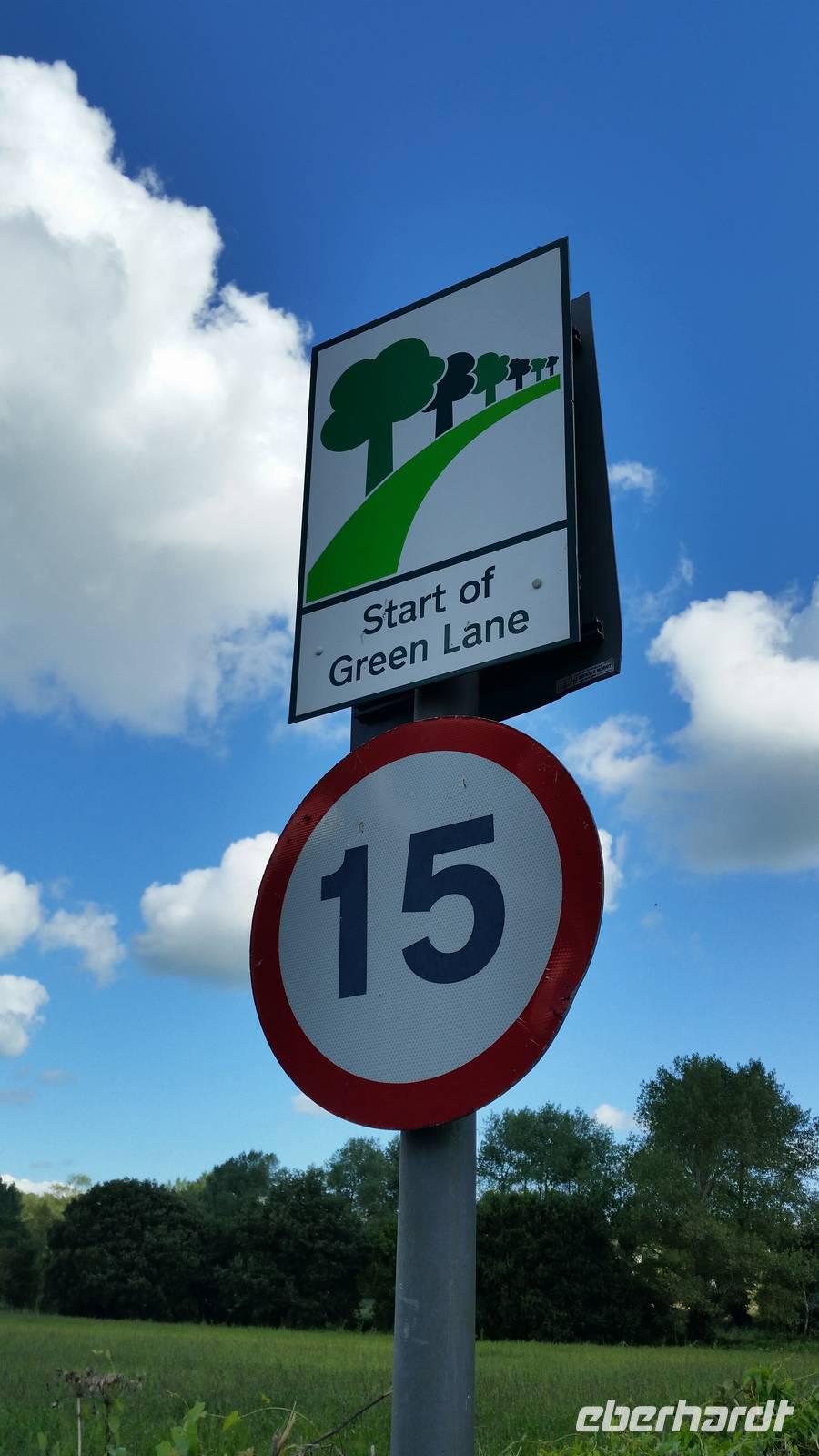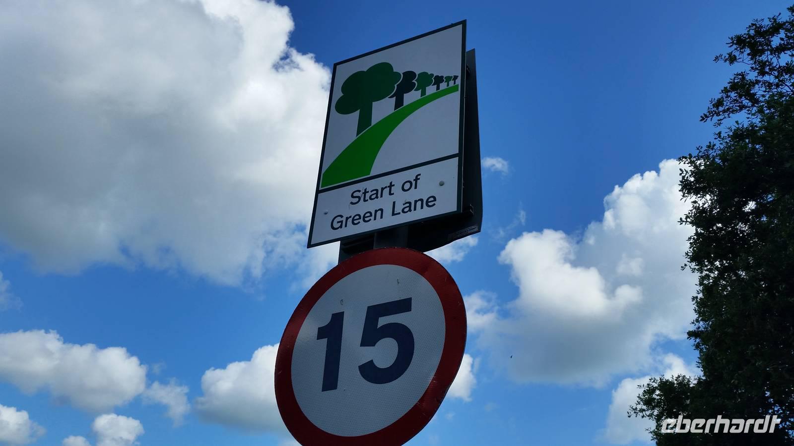 Die Green Lanes sind schmal, meistens Einbahnstraßen (One-Lane-Roads), diese sollte man nicht mit deutschen Einbahnstraßen verwechseln. Die Straßen hier sind so schmal, dass nur ein Pkw sich hindurch bewegen kann, allerdings mit Gegenverkehr! Wanderer und Radfahrer haben Vorrang. Entgegen deutscher Mentalität versuchte auch kein Autofahrer sich an uns vorbei zu drängeln. Geduldig fuhr man hinter uns her und bedankte sich freundlich, wenn wir eine Überholmöglichkeit einräumten.